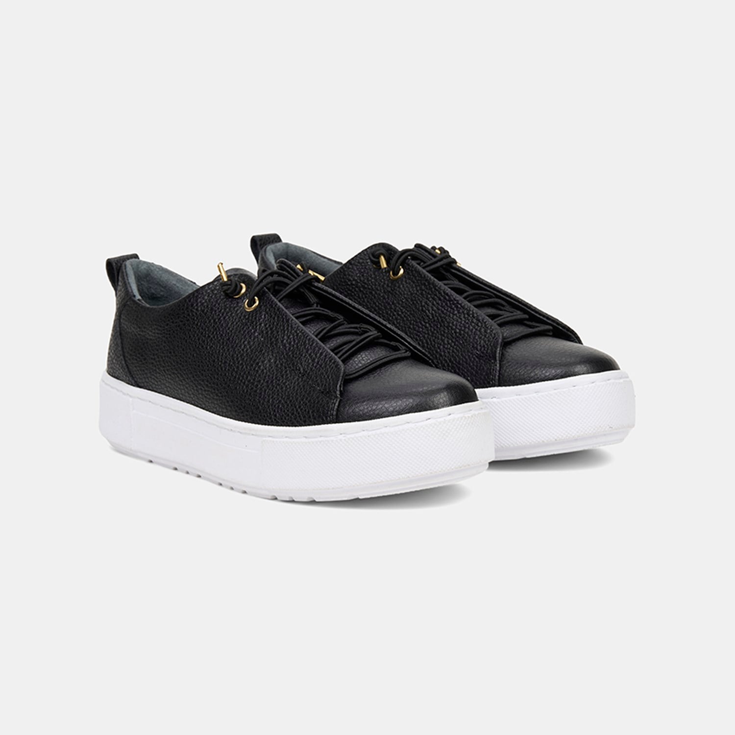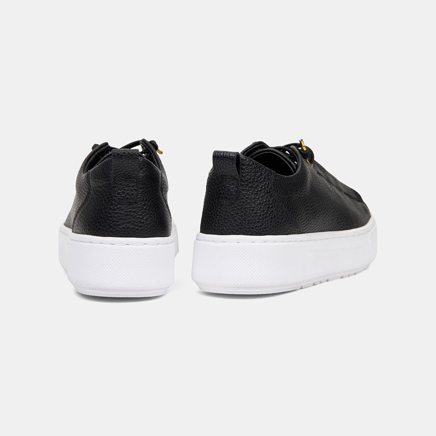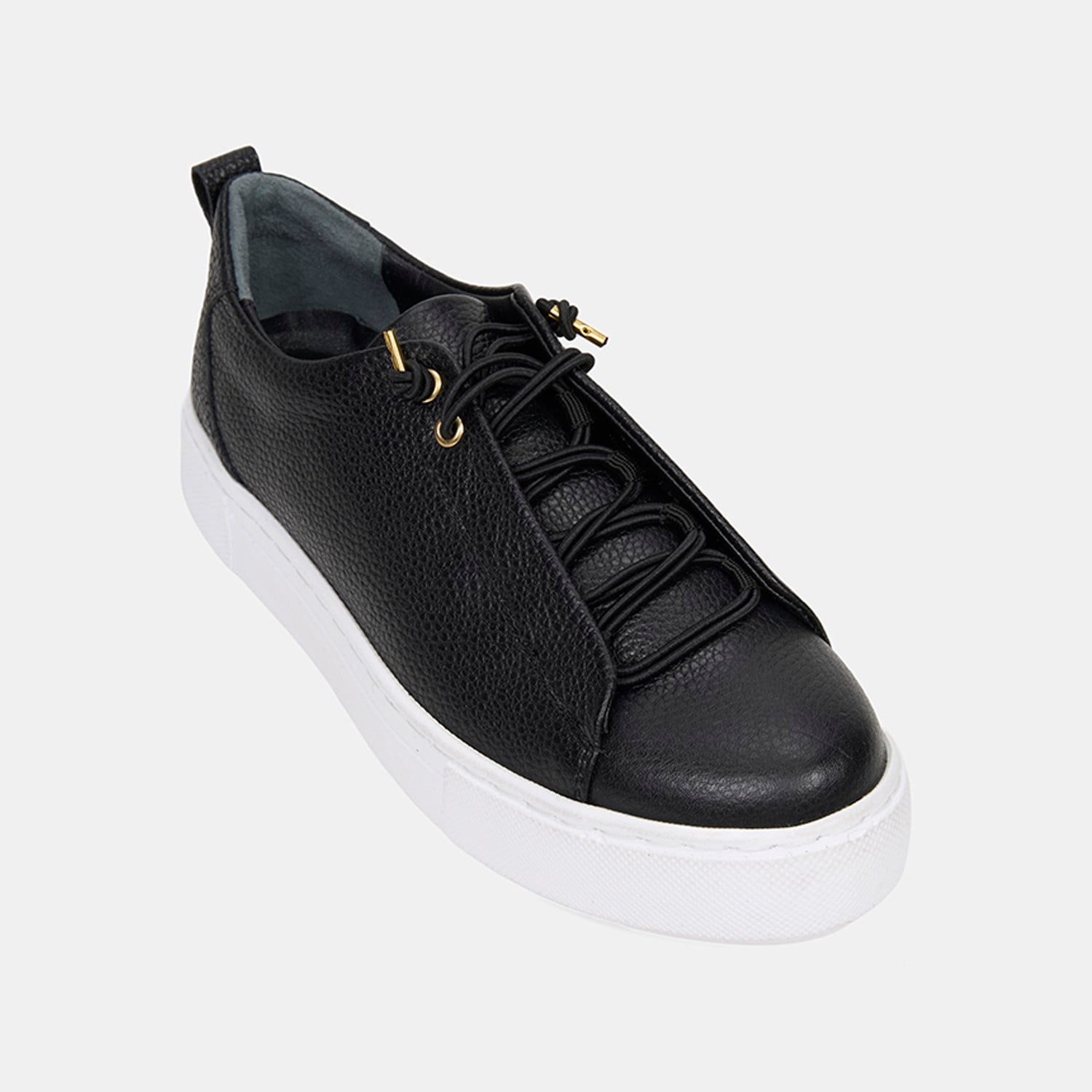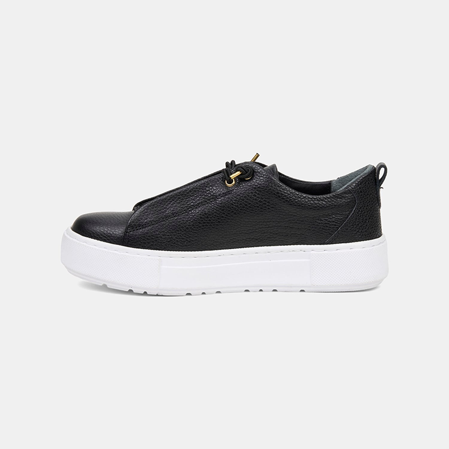 Kadın Siyah Lastik Bağcıklı Kalın Tabanlı Deri Spor Ayakkabı