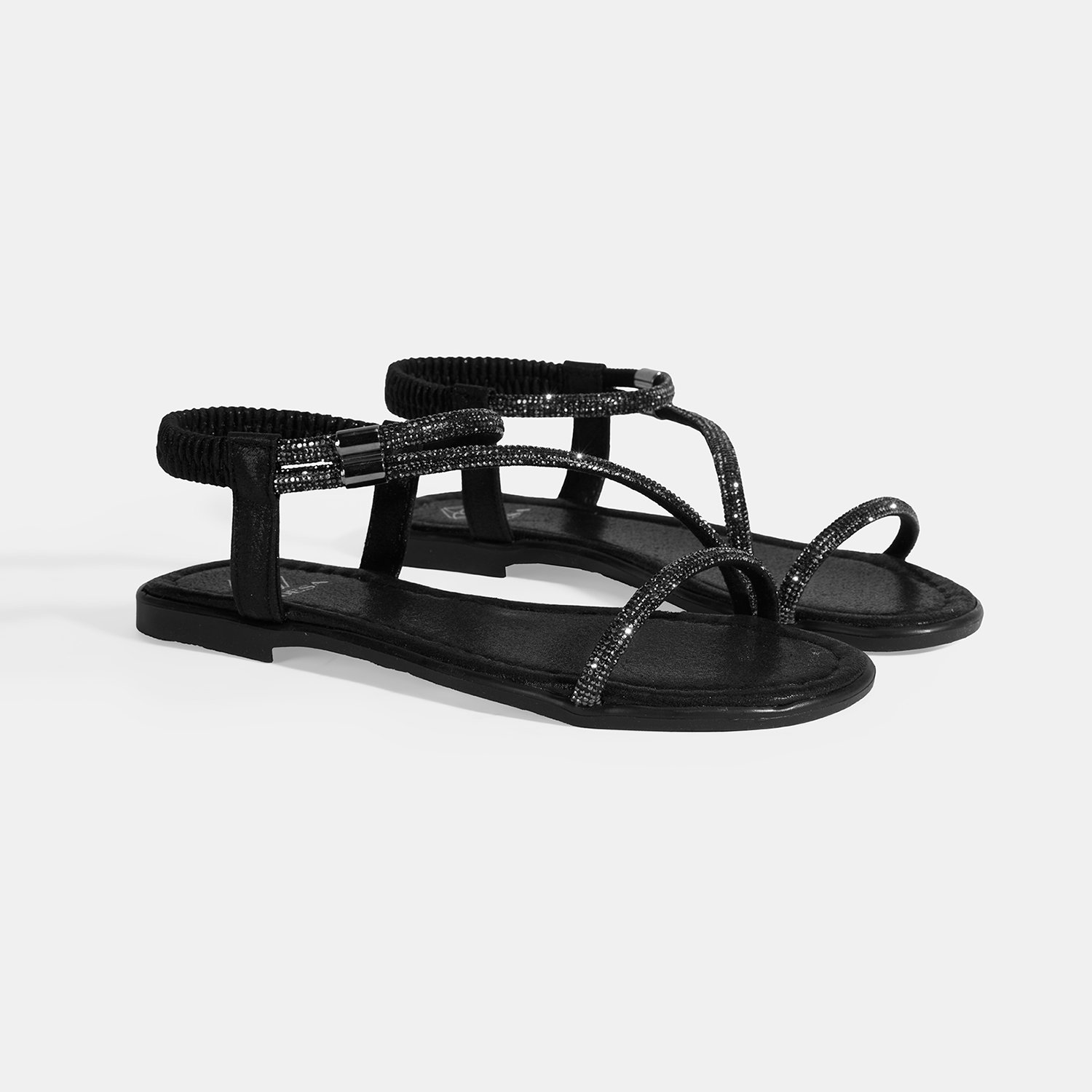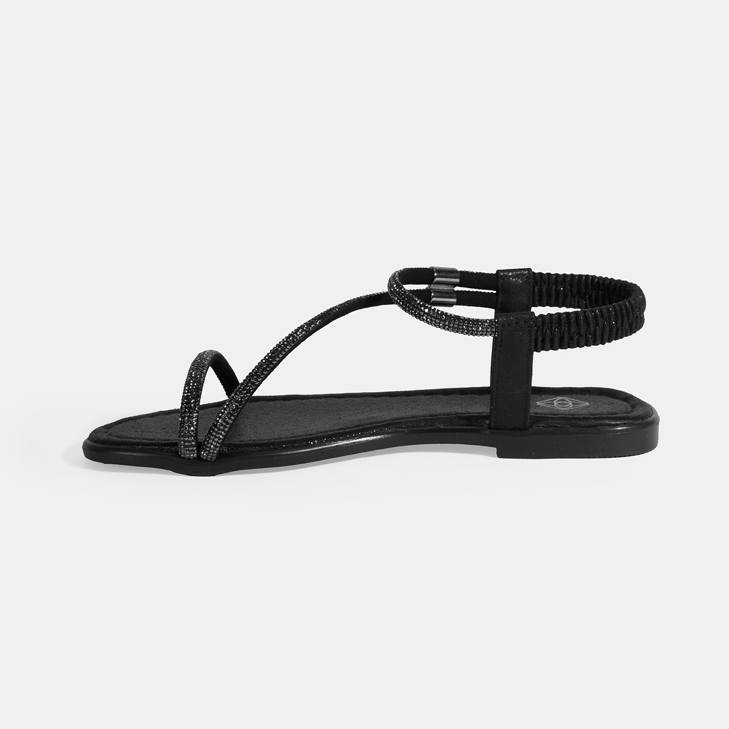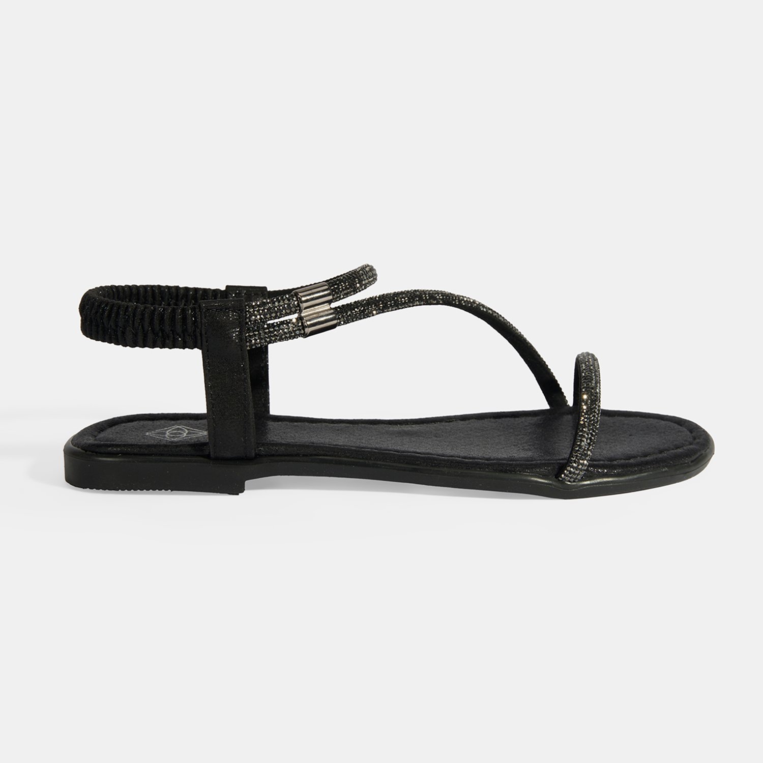 Kadın Siyah Lastik Bantlı Taşlı Sandalet