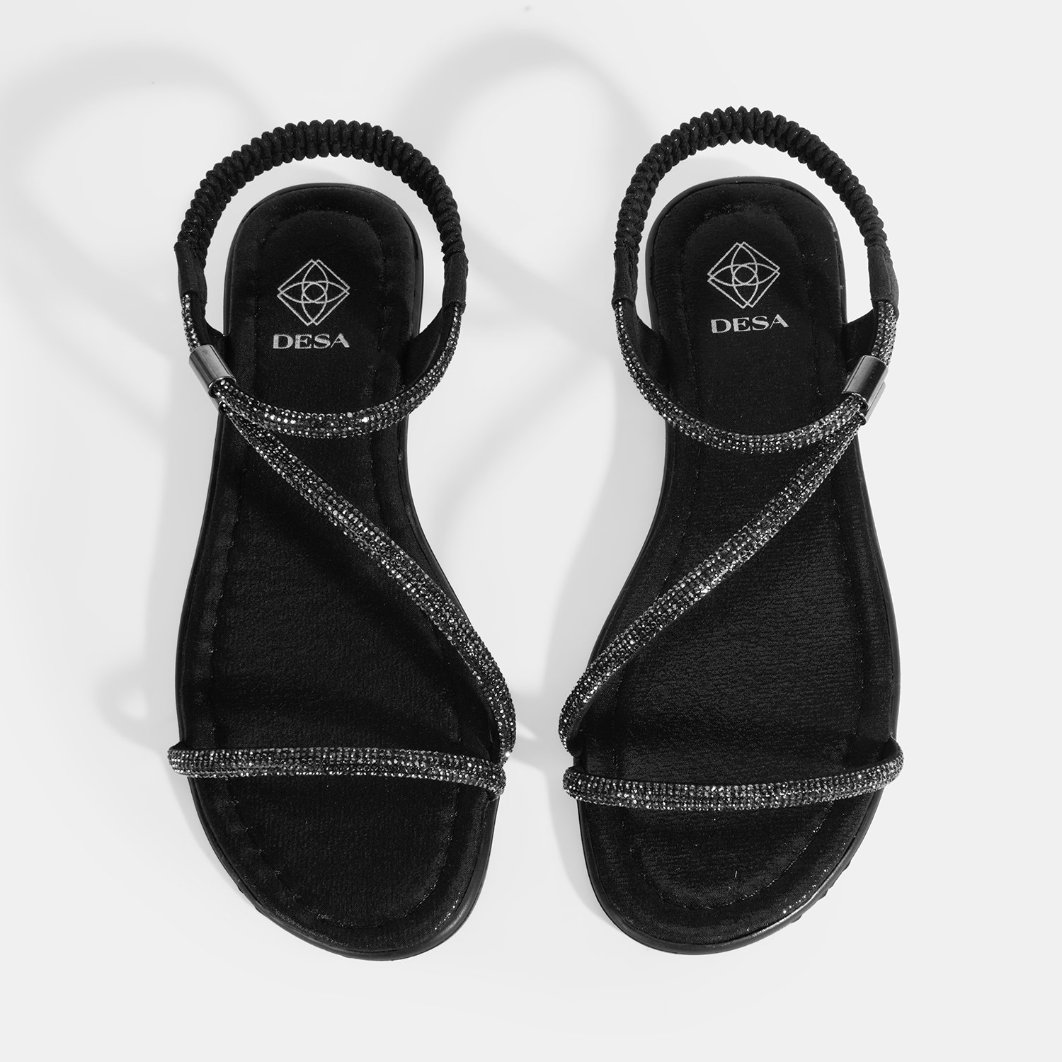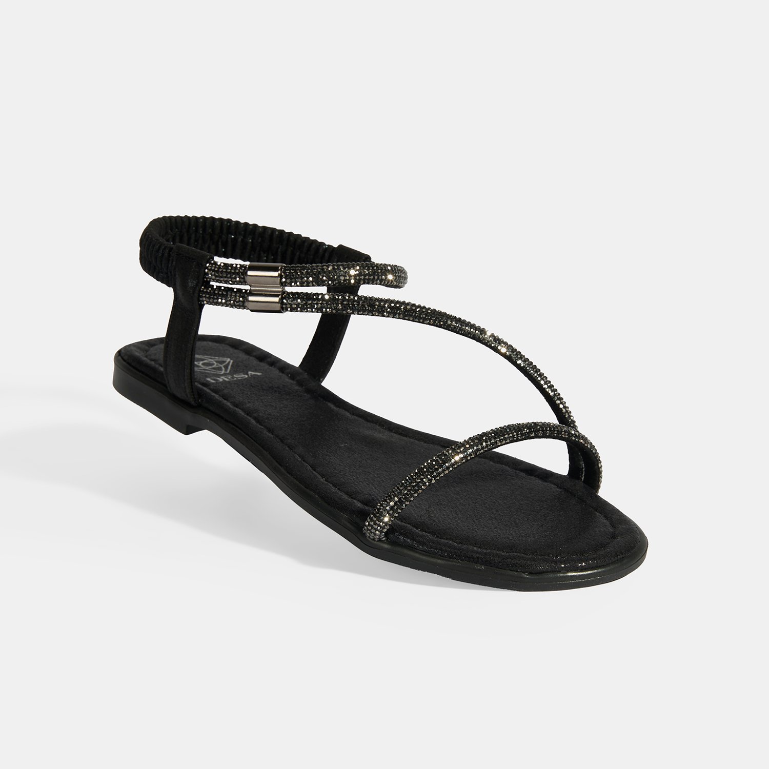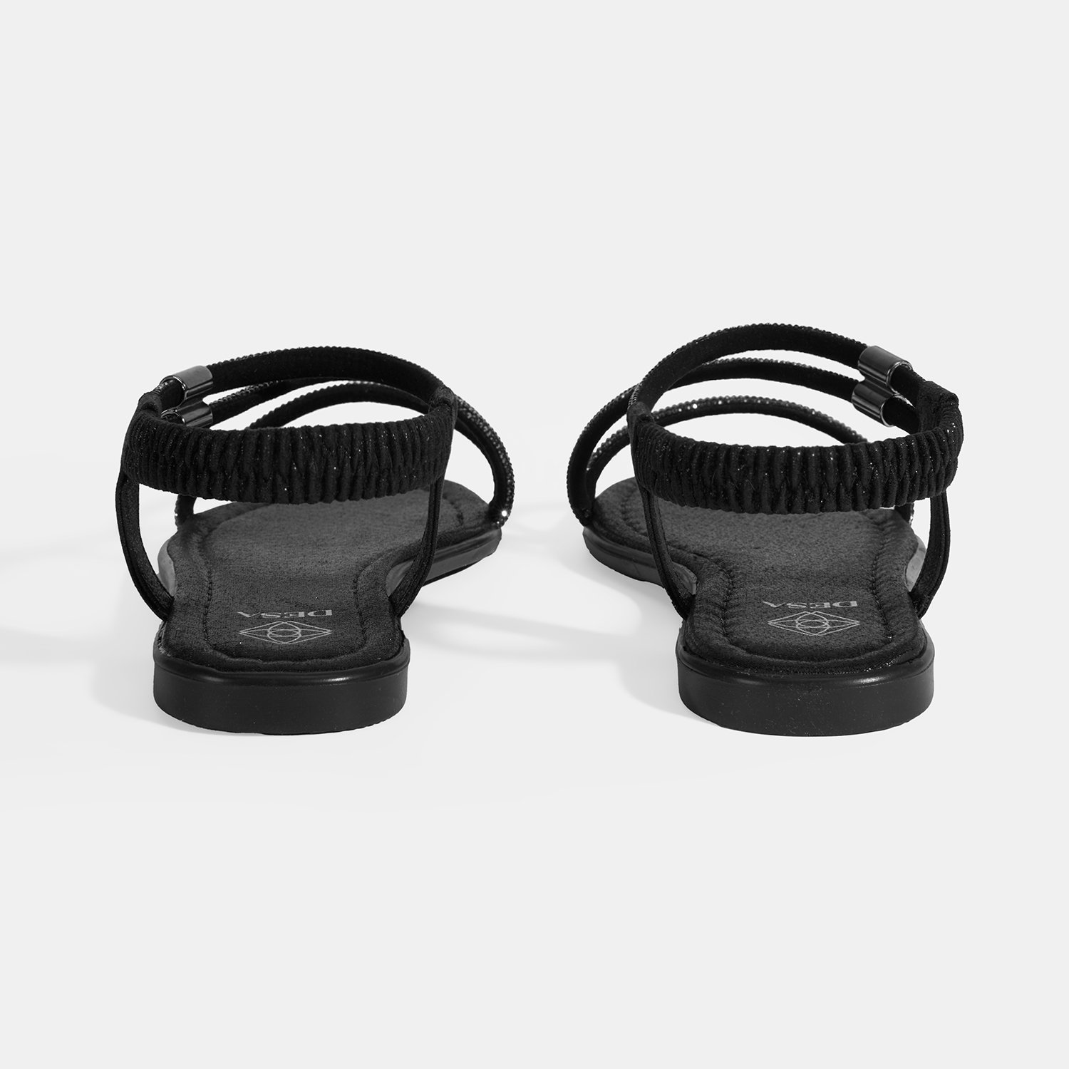 Kadın Siyah Lastik Bantlı Taşlı Sandalet
