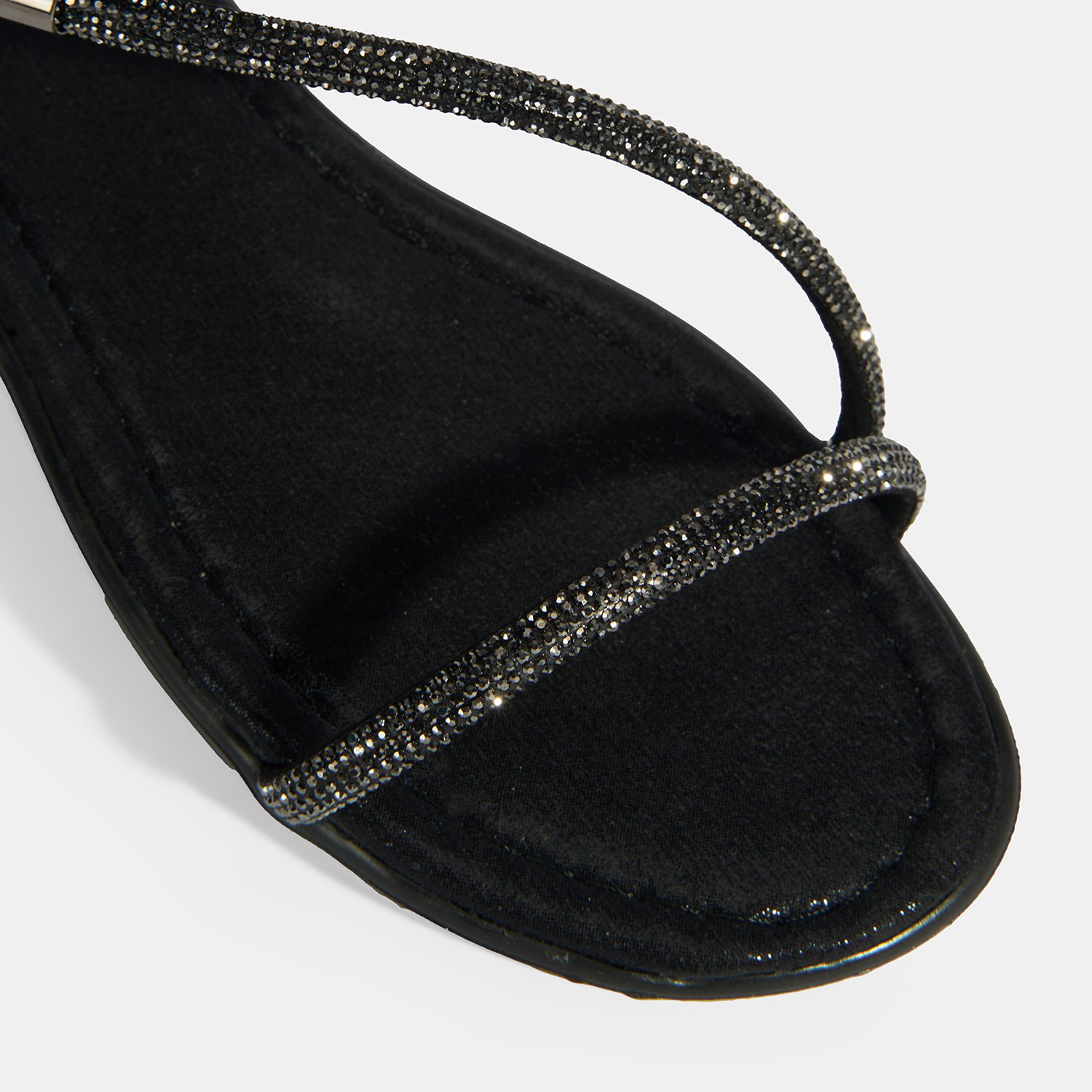 Pu iç tabanlı, pu astarlı, parlak taş detaylı, pu tabanlı, lastik detaylı kadın sandalet.