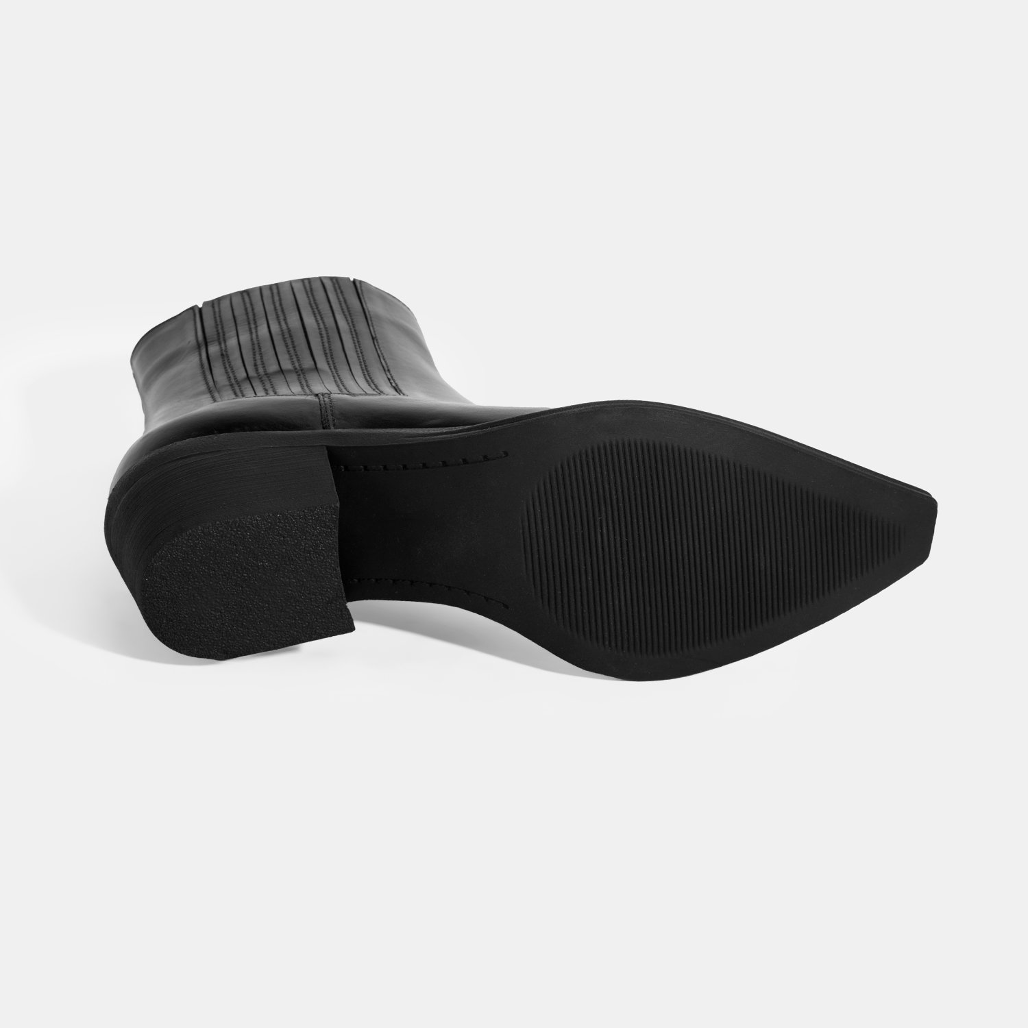 Kadın Siyah Lastik Detaylı Deri Topuklu Bot