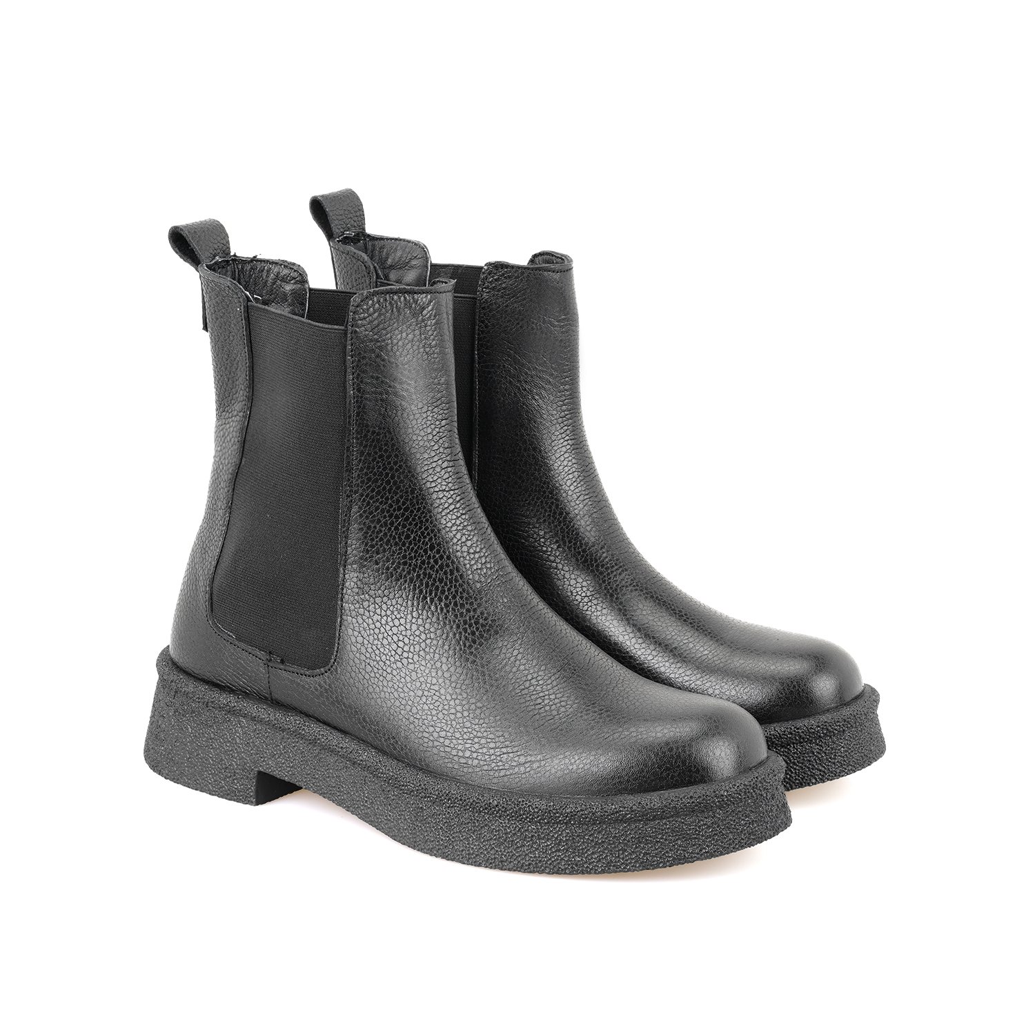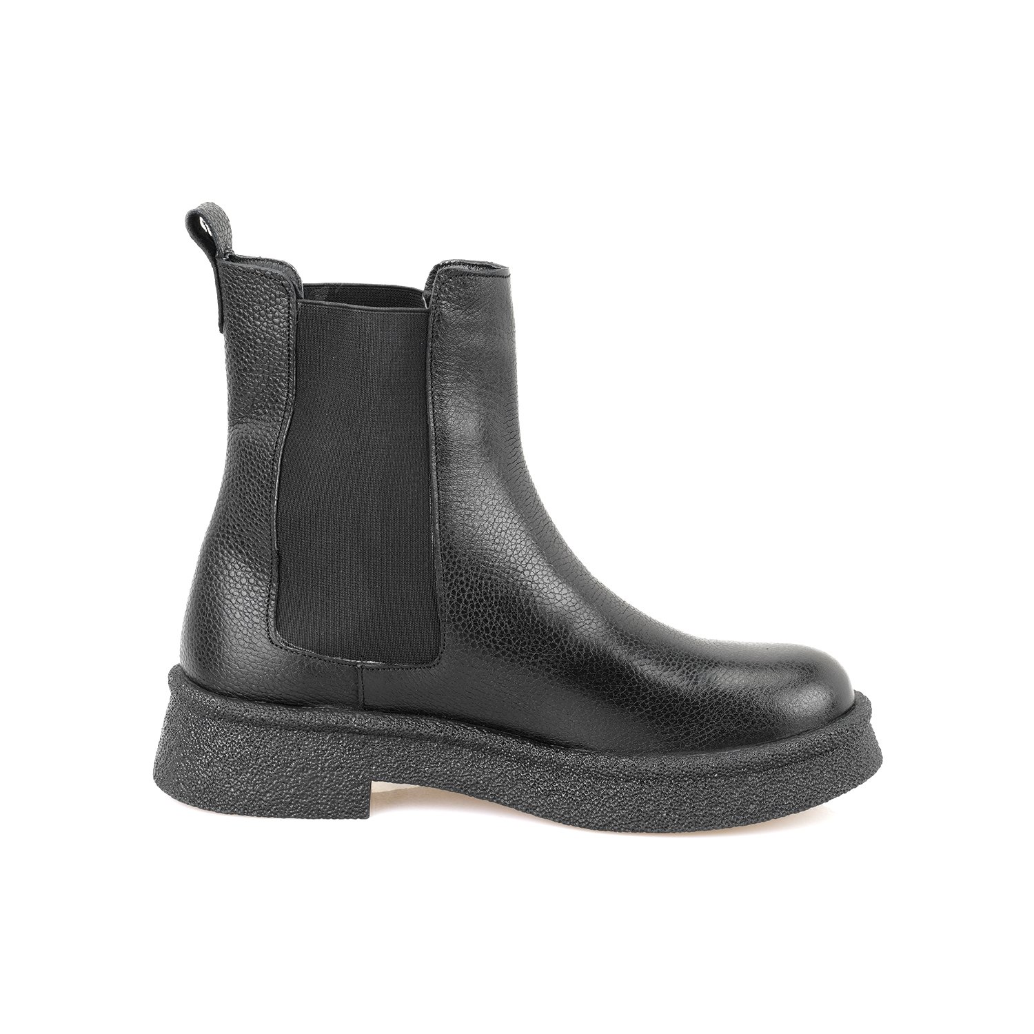 Kadın Siyah Lastikli Deri Chelsea Bot