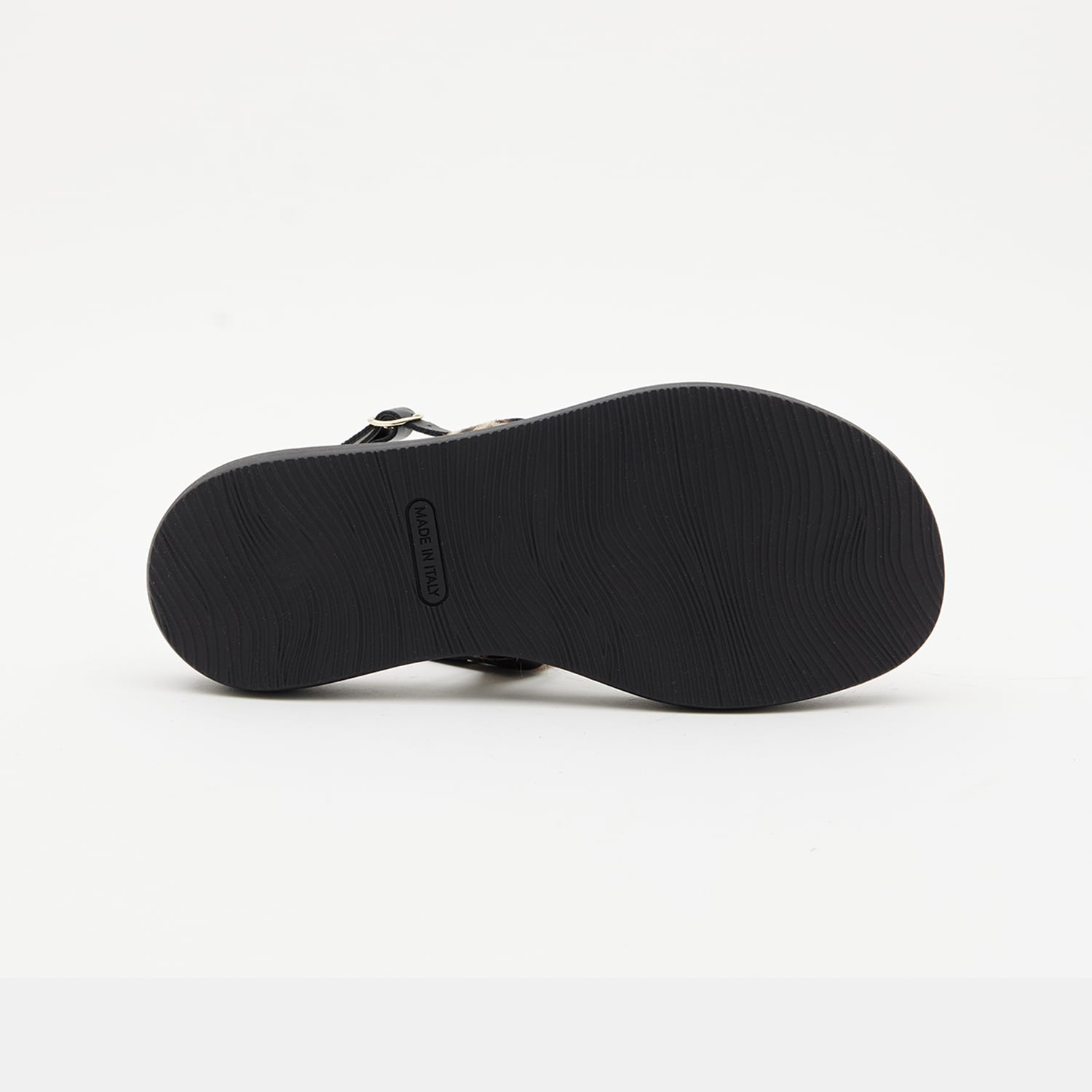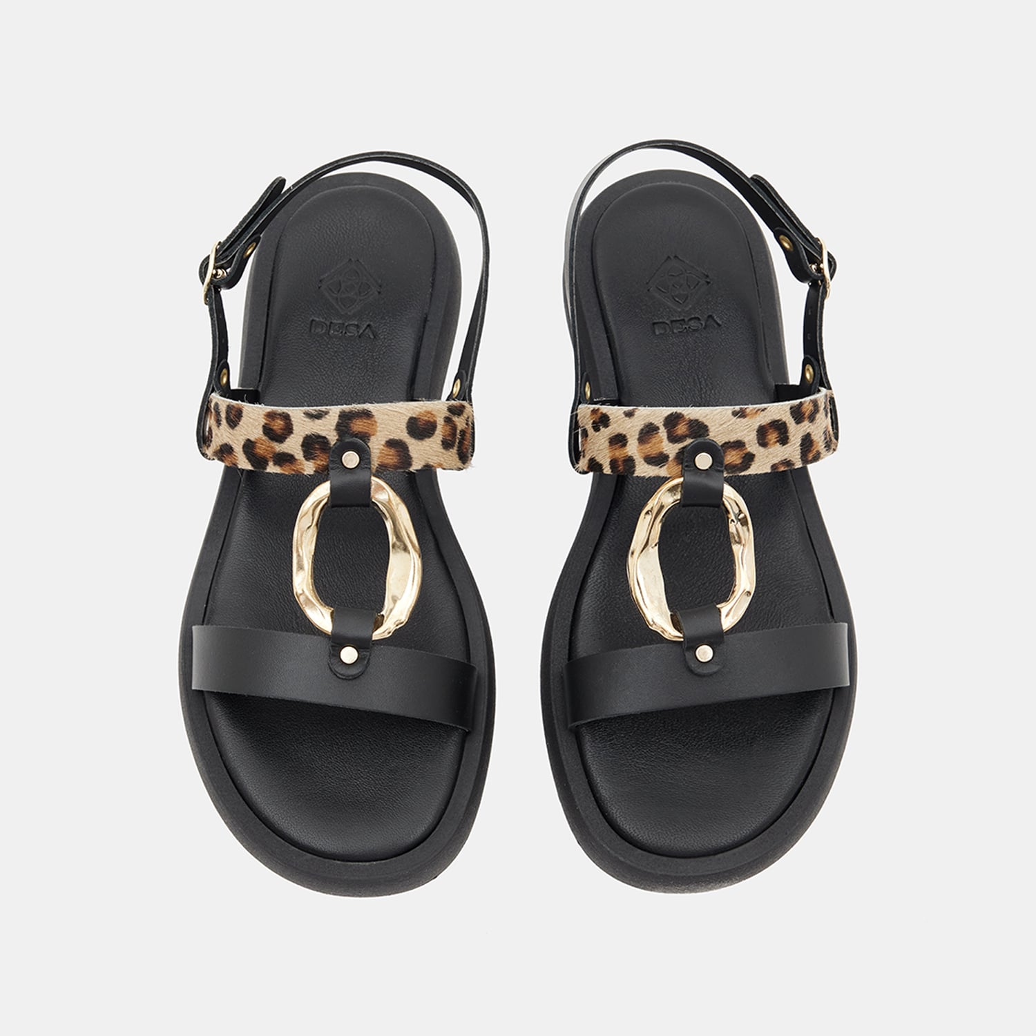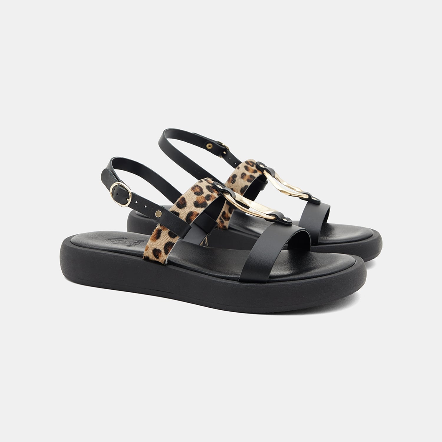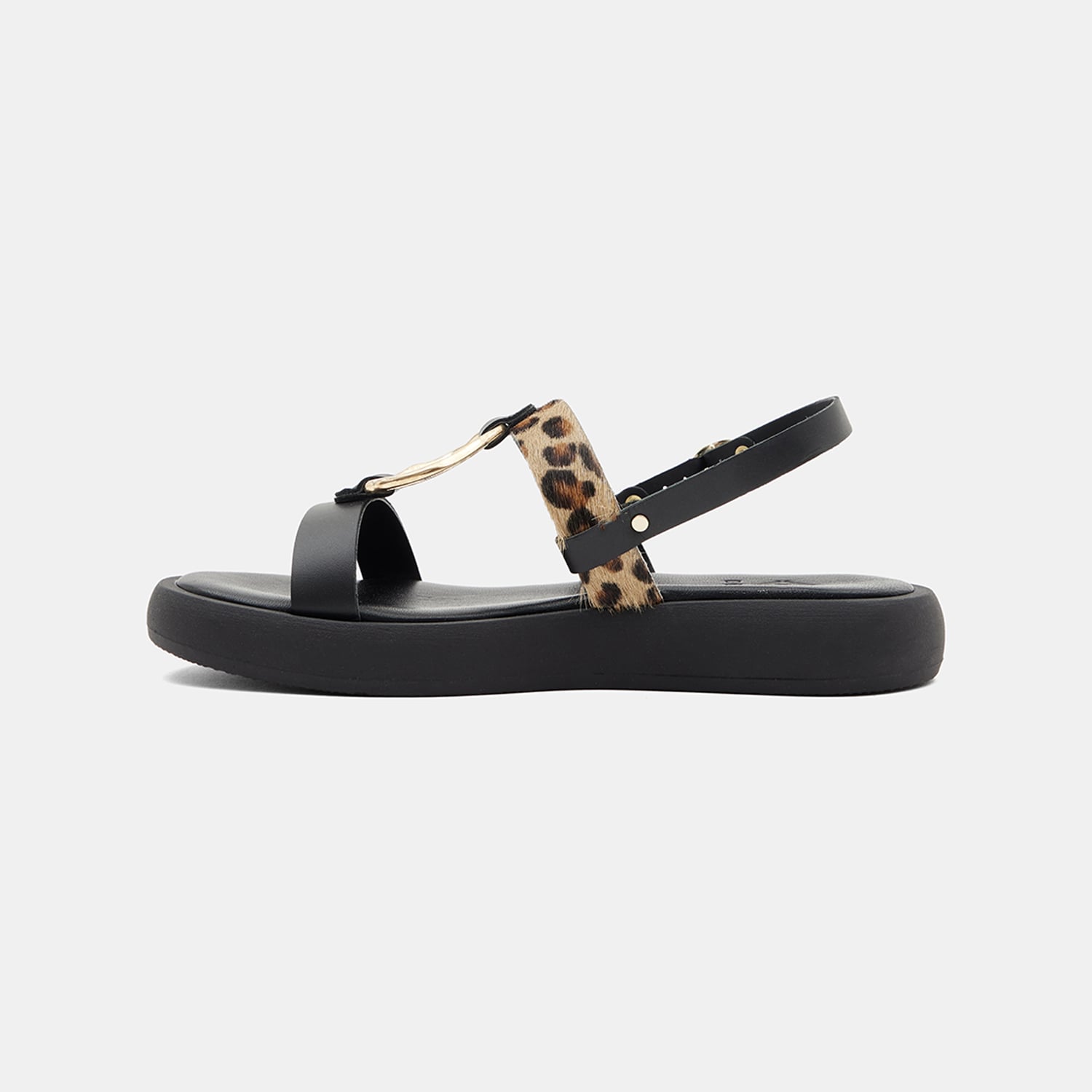 Kadın Siyah Leopar Desenli Tokalı Deri Sandalet
