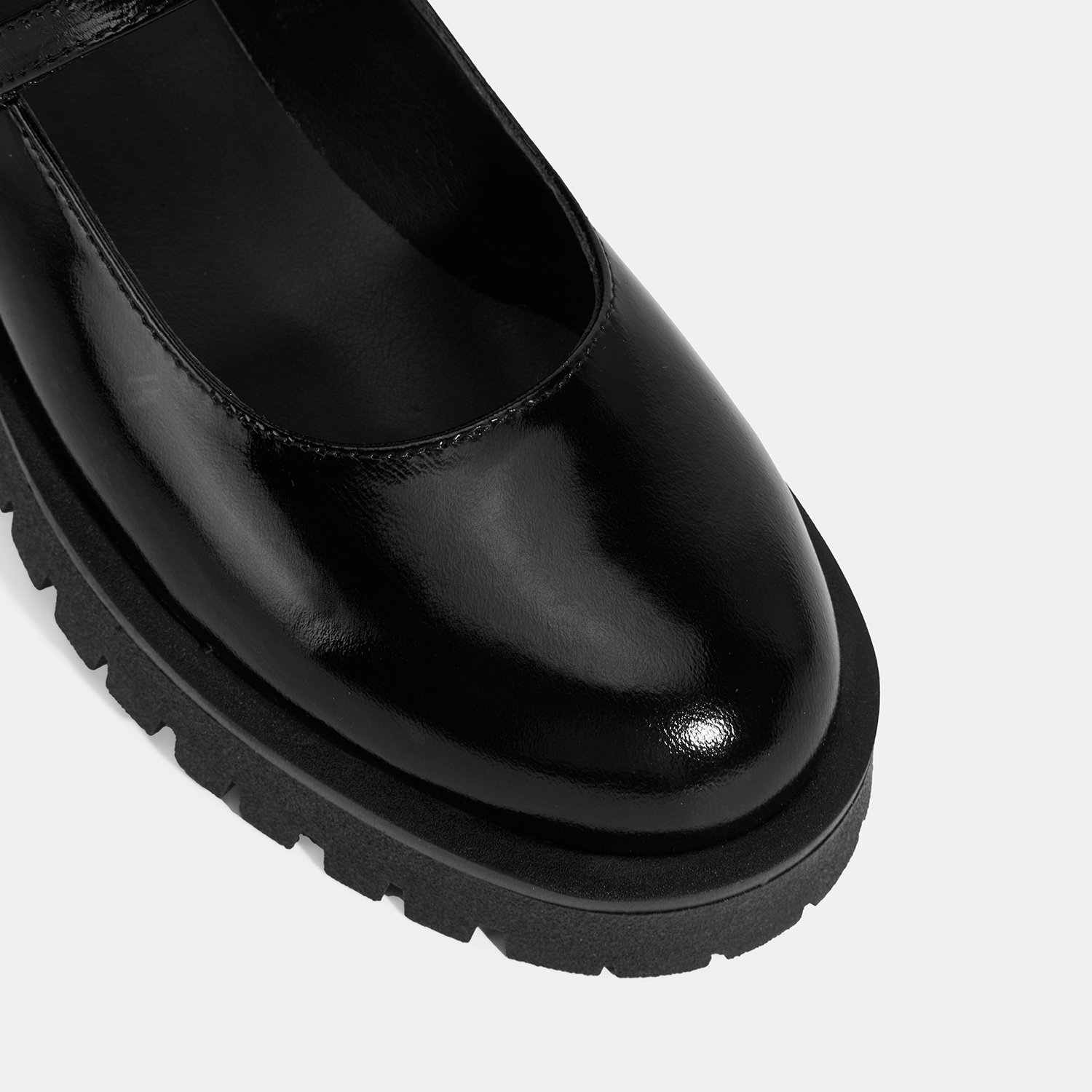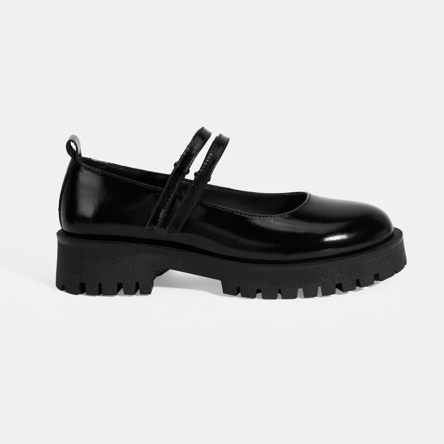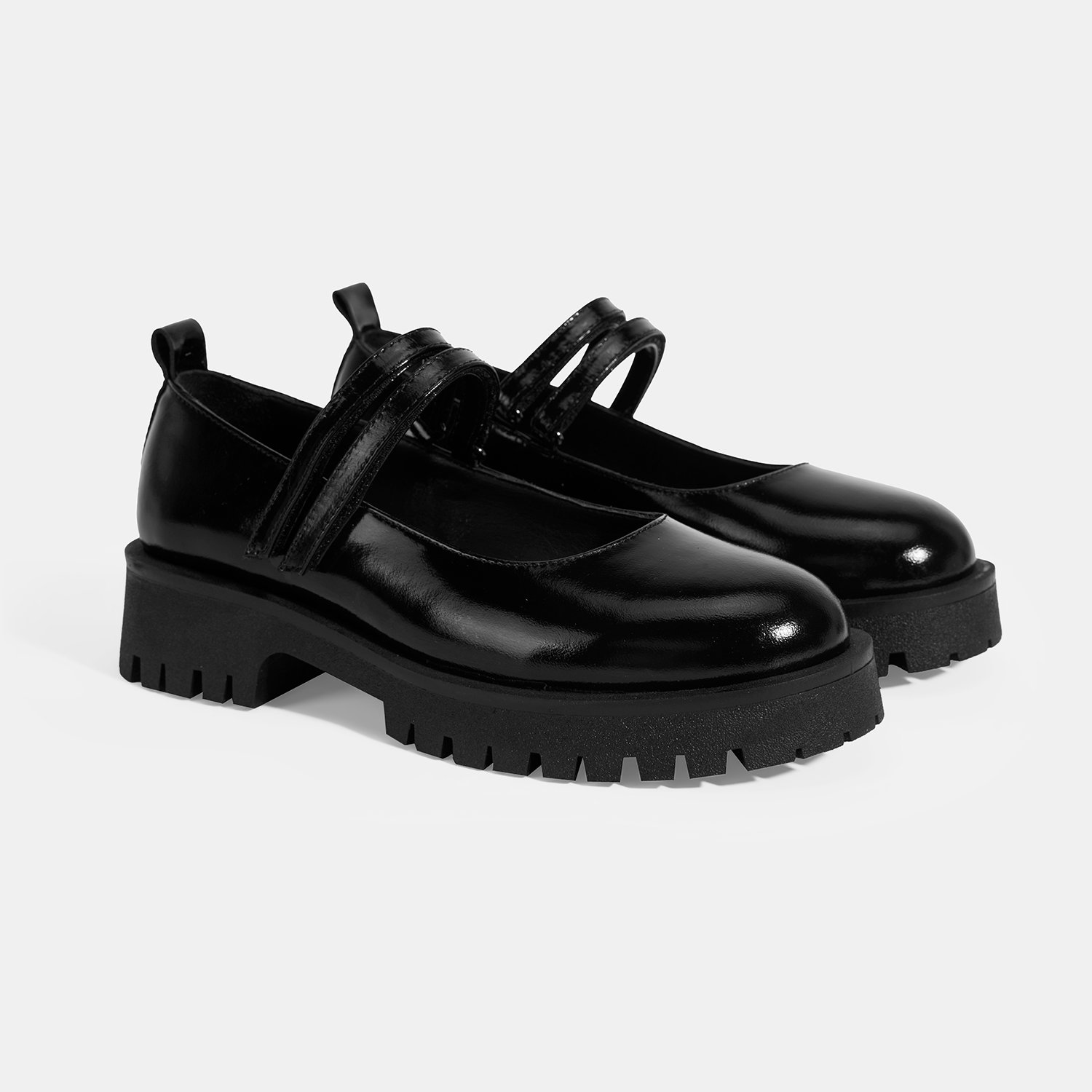 Kadın Siyah Mary Jane Cırt Detaylı Deri Babet