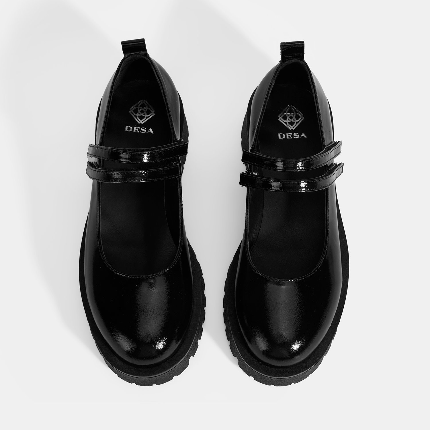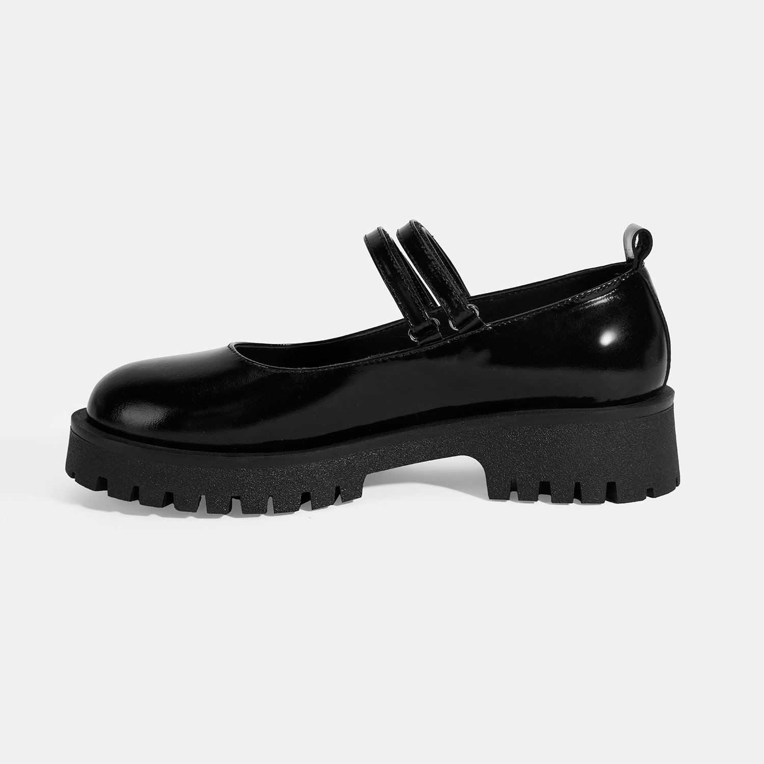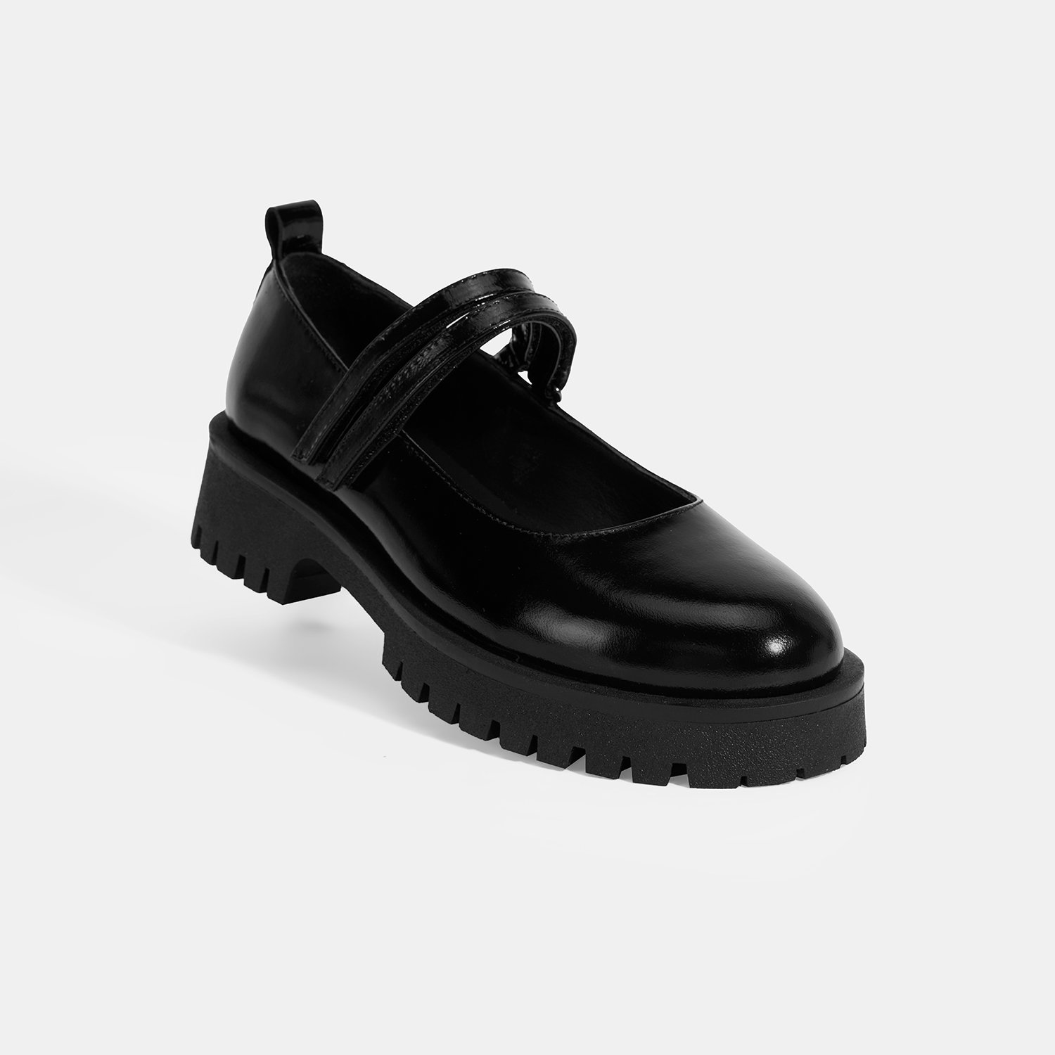 Kadın Siyah Mary Jane Cırt Detaylı Deri Babet
