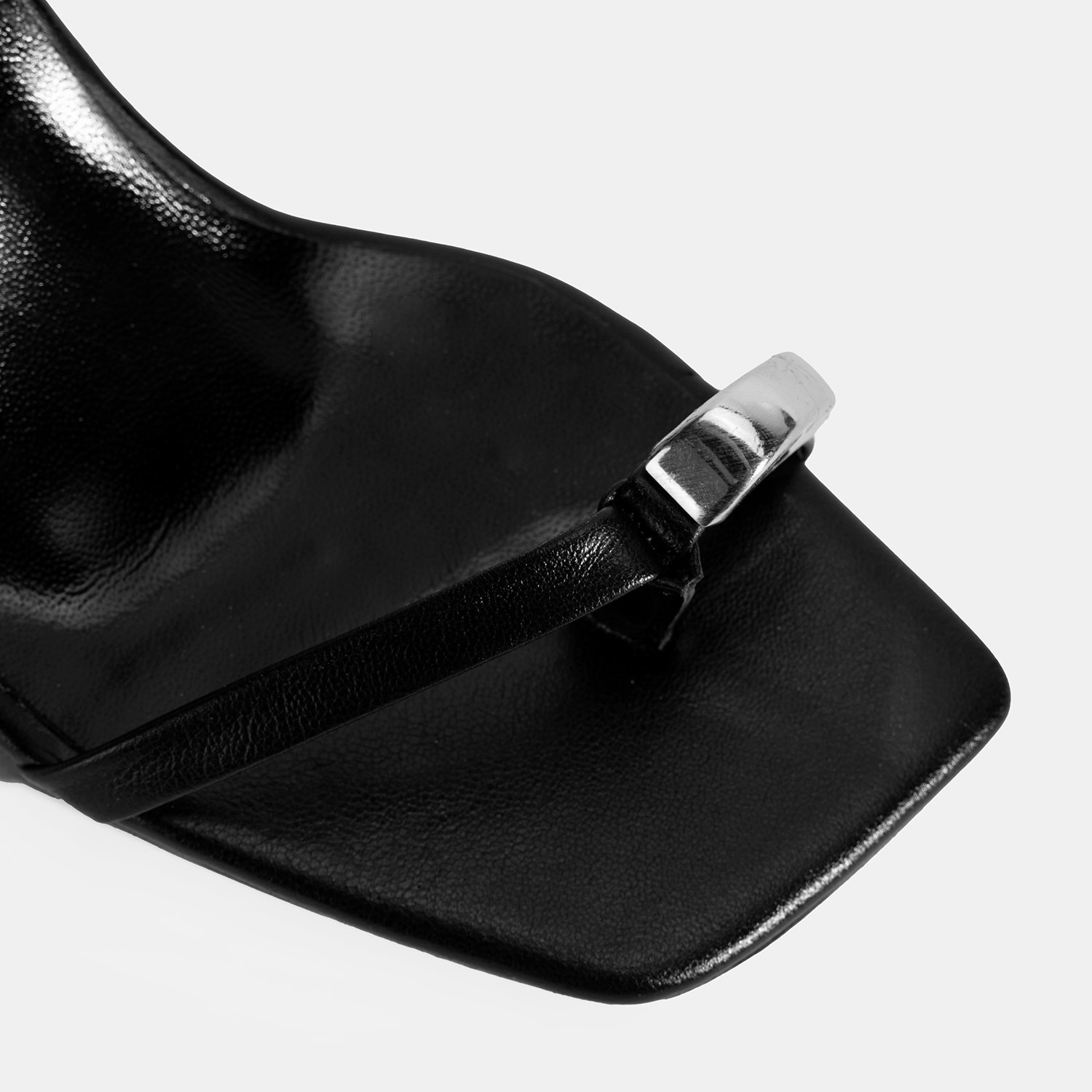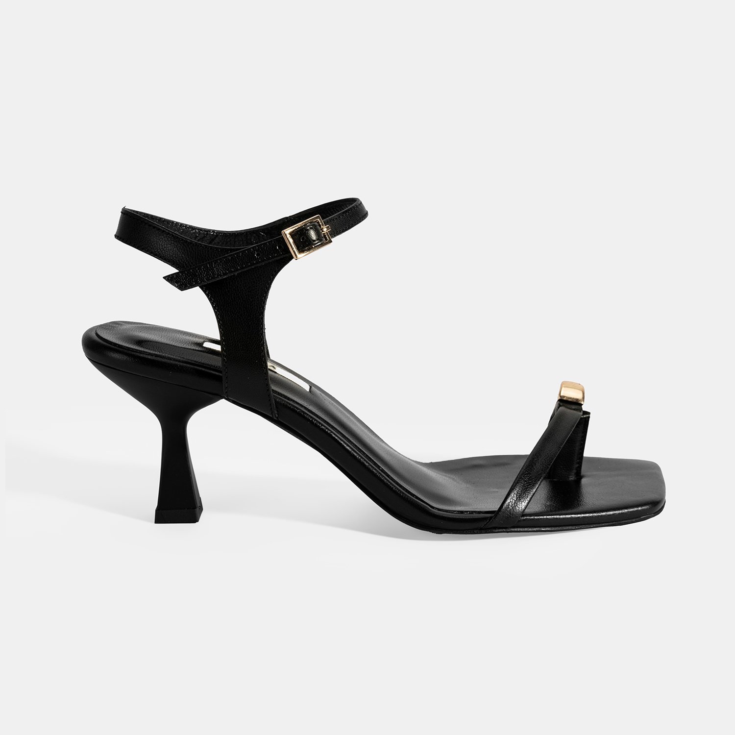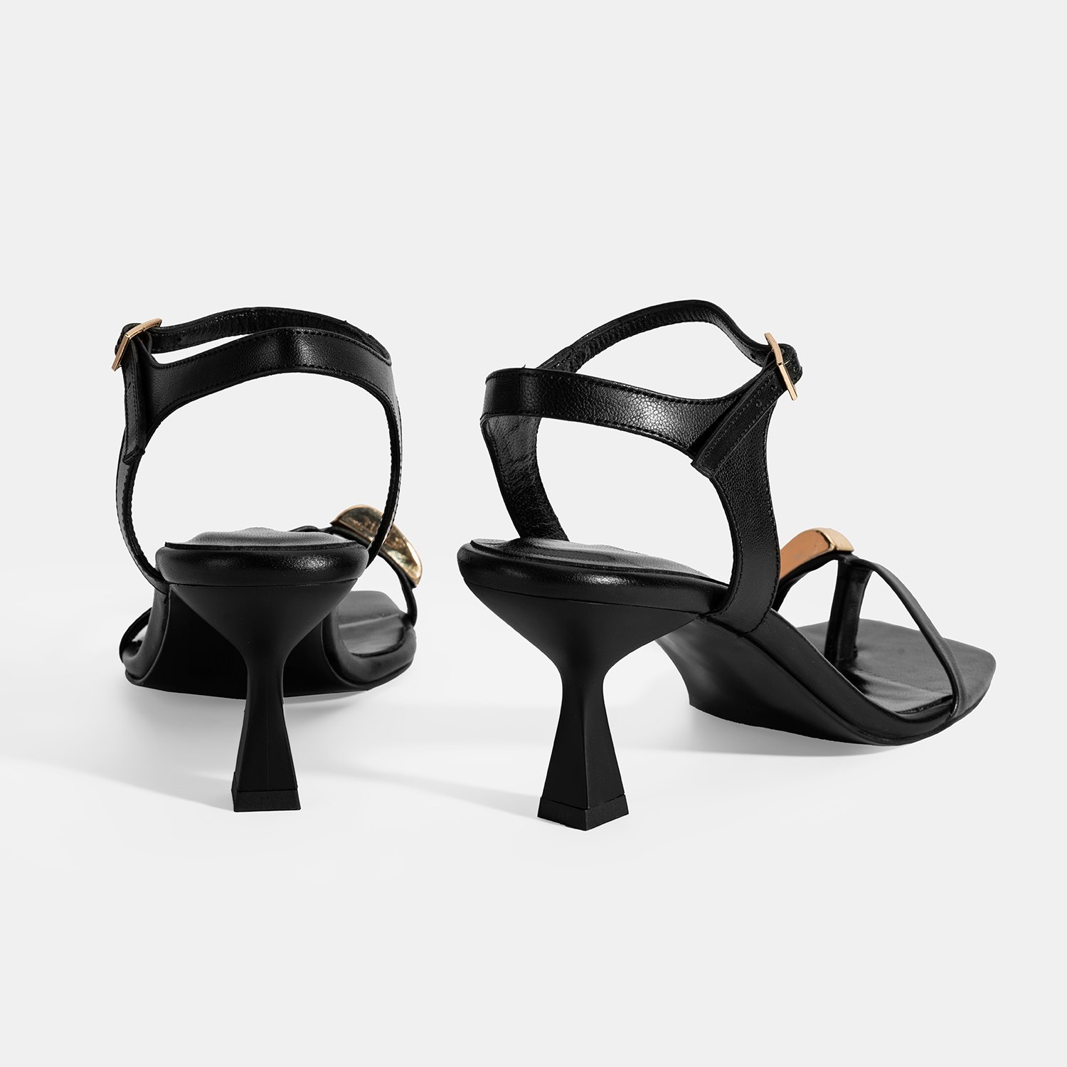Kadın Siyah Metal Aksesuarlı Parmak Arası Topuklu Ayakkabı