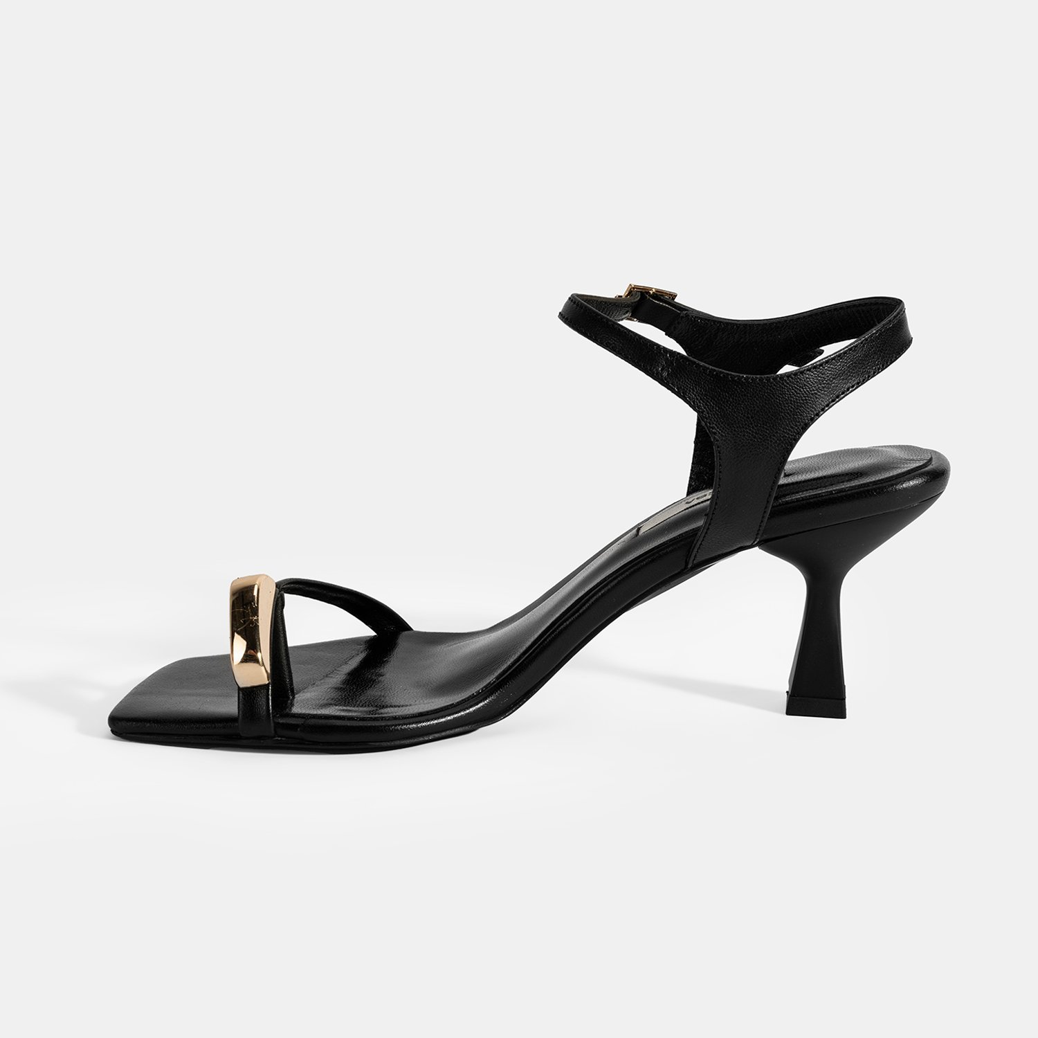 %100 deri, deri iç tabanlı, deri astarlı, metal aksesuar detaylı, ayarlanabilir metal tokalı, neolit tabanlı, kadın topuklu sandalet.