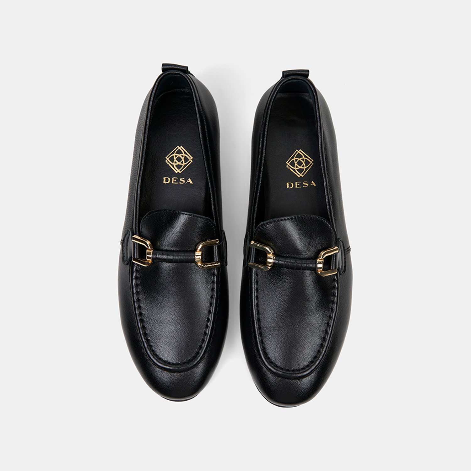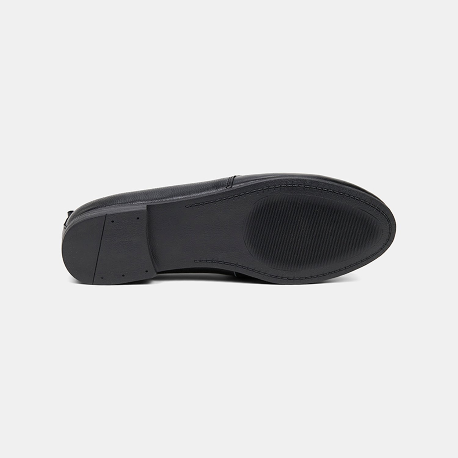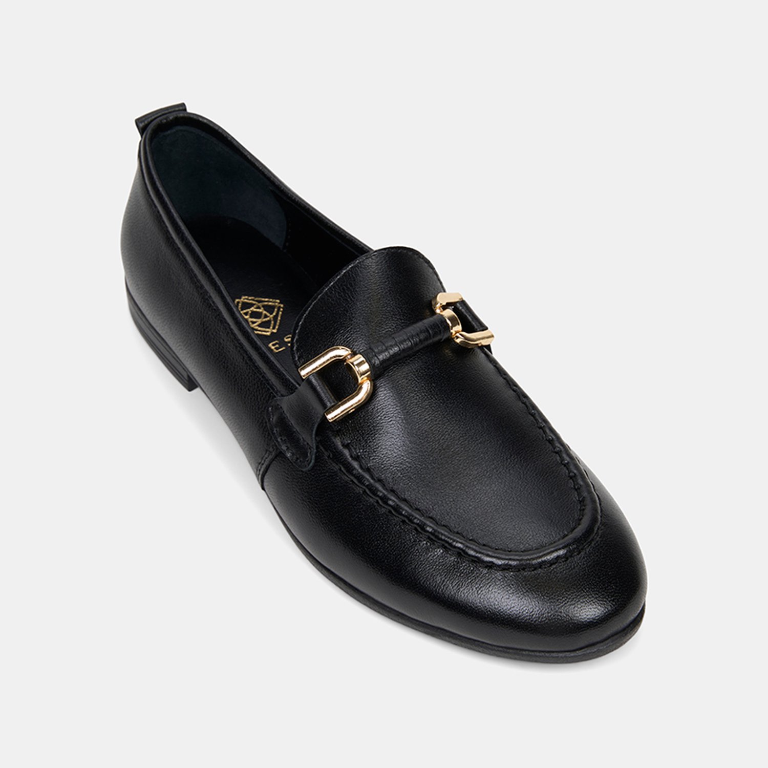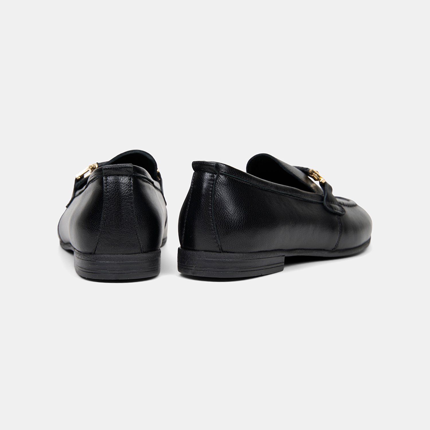 Kadın Siyah Metal Gold Toka Aksesuarlı Deri Loafer