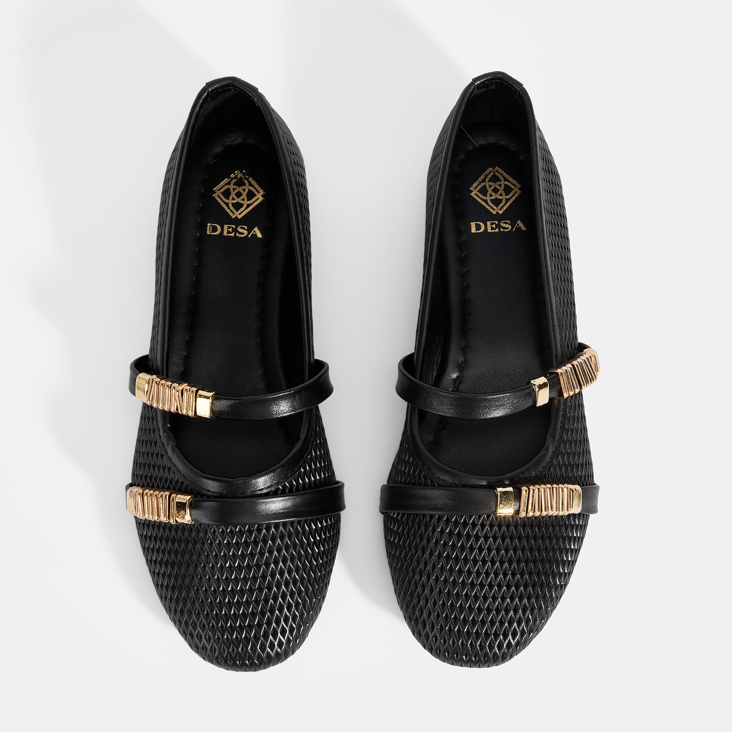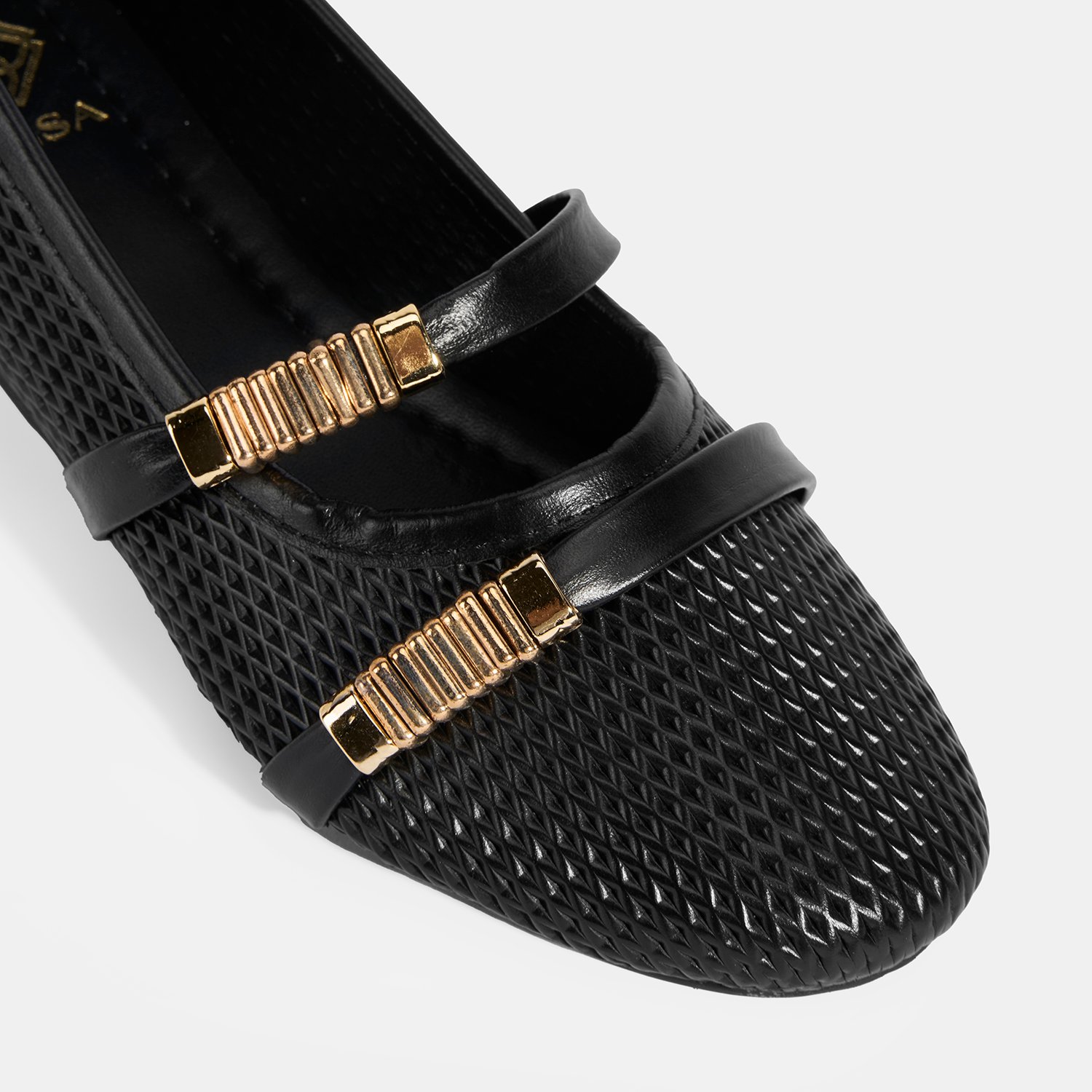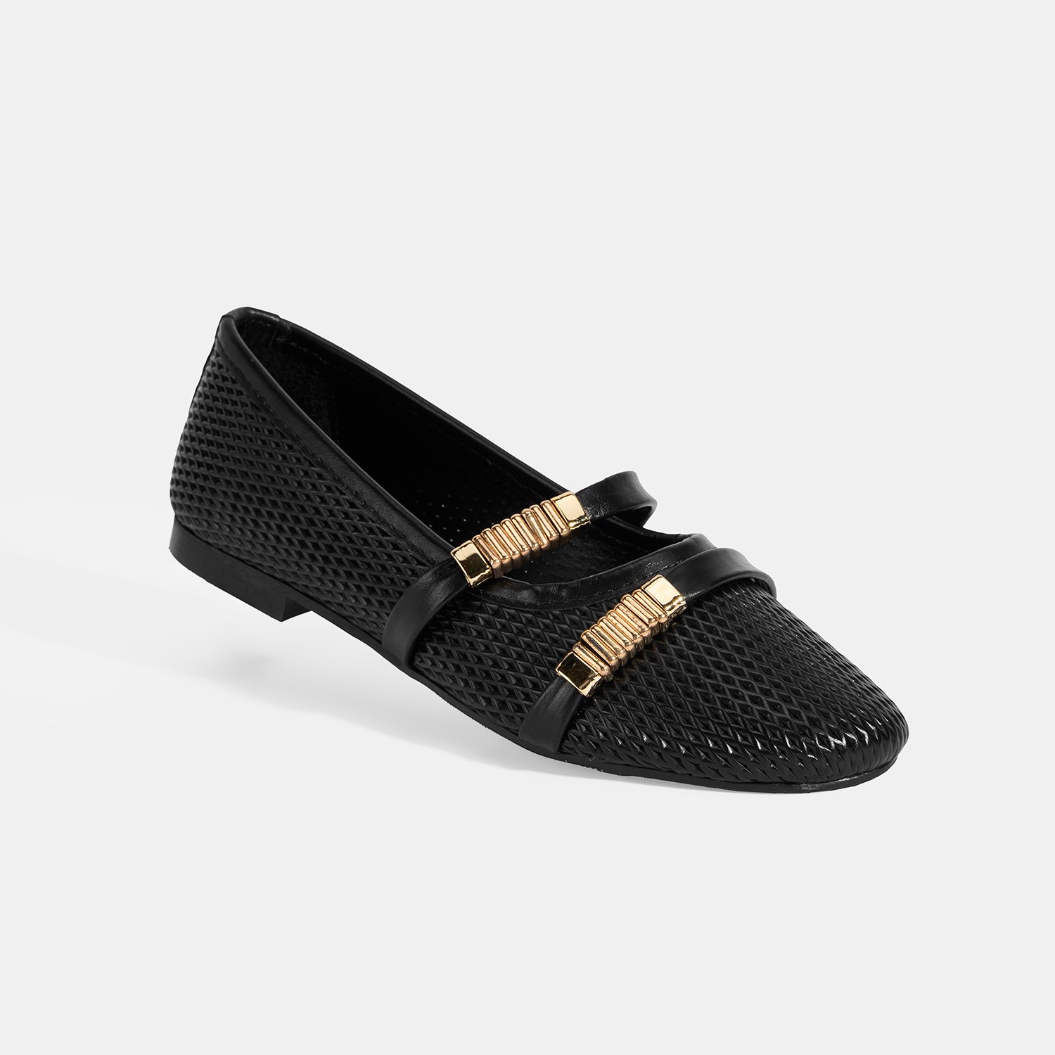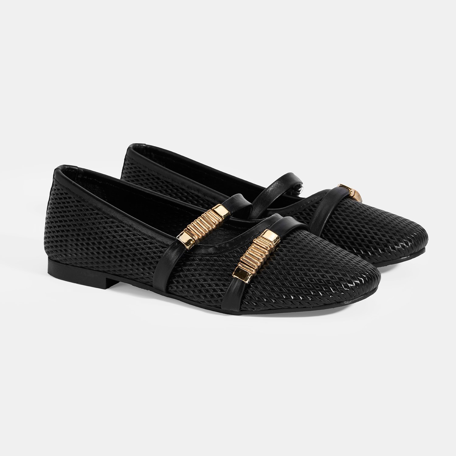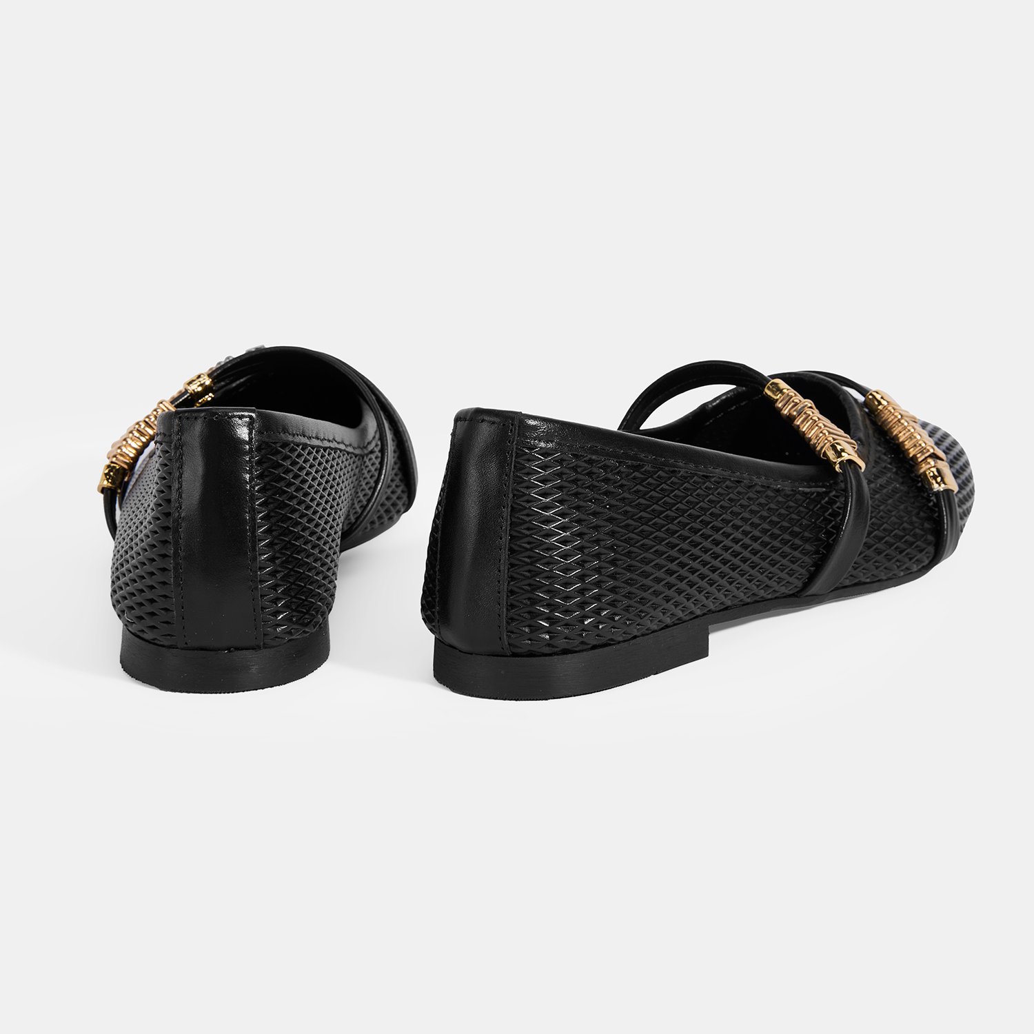 Kadın Siyah Metal Toka Aksesuarlı Deri Babet