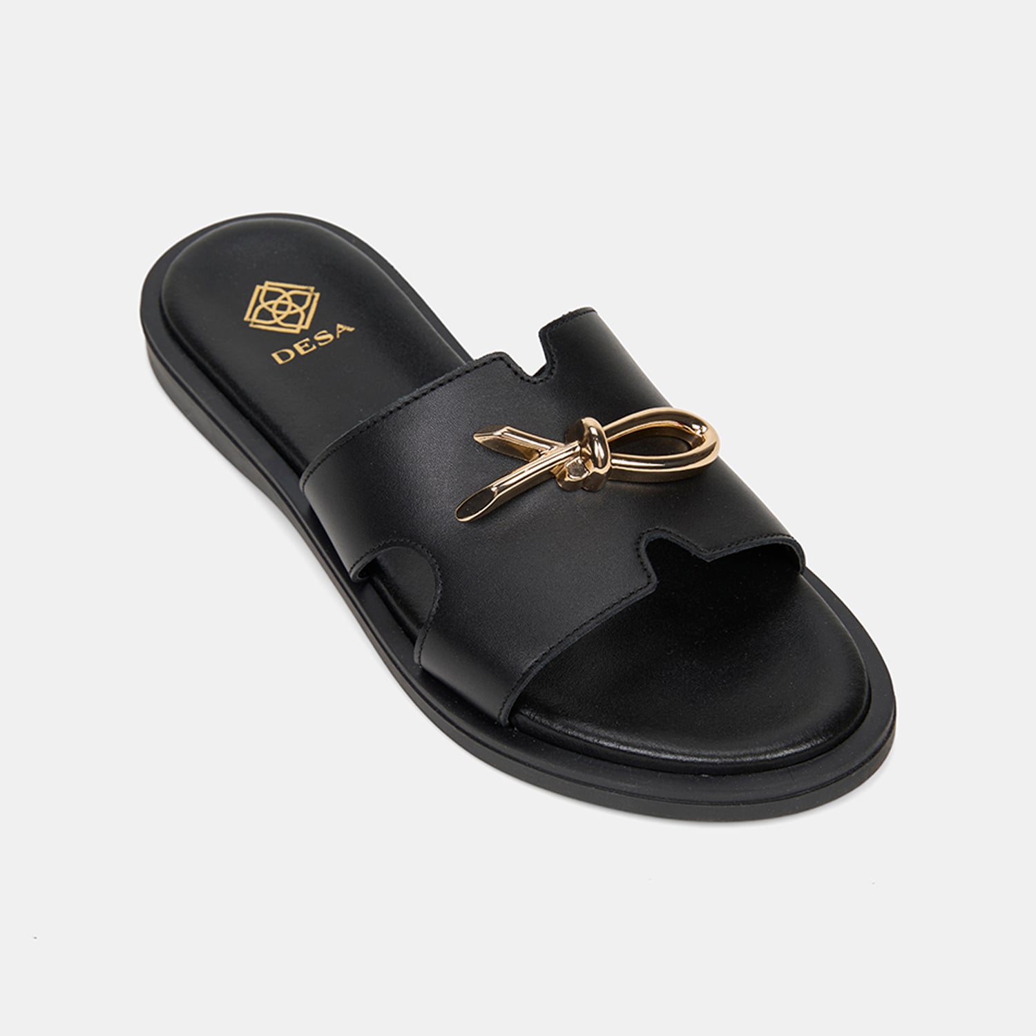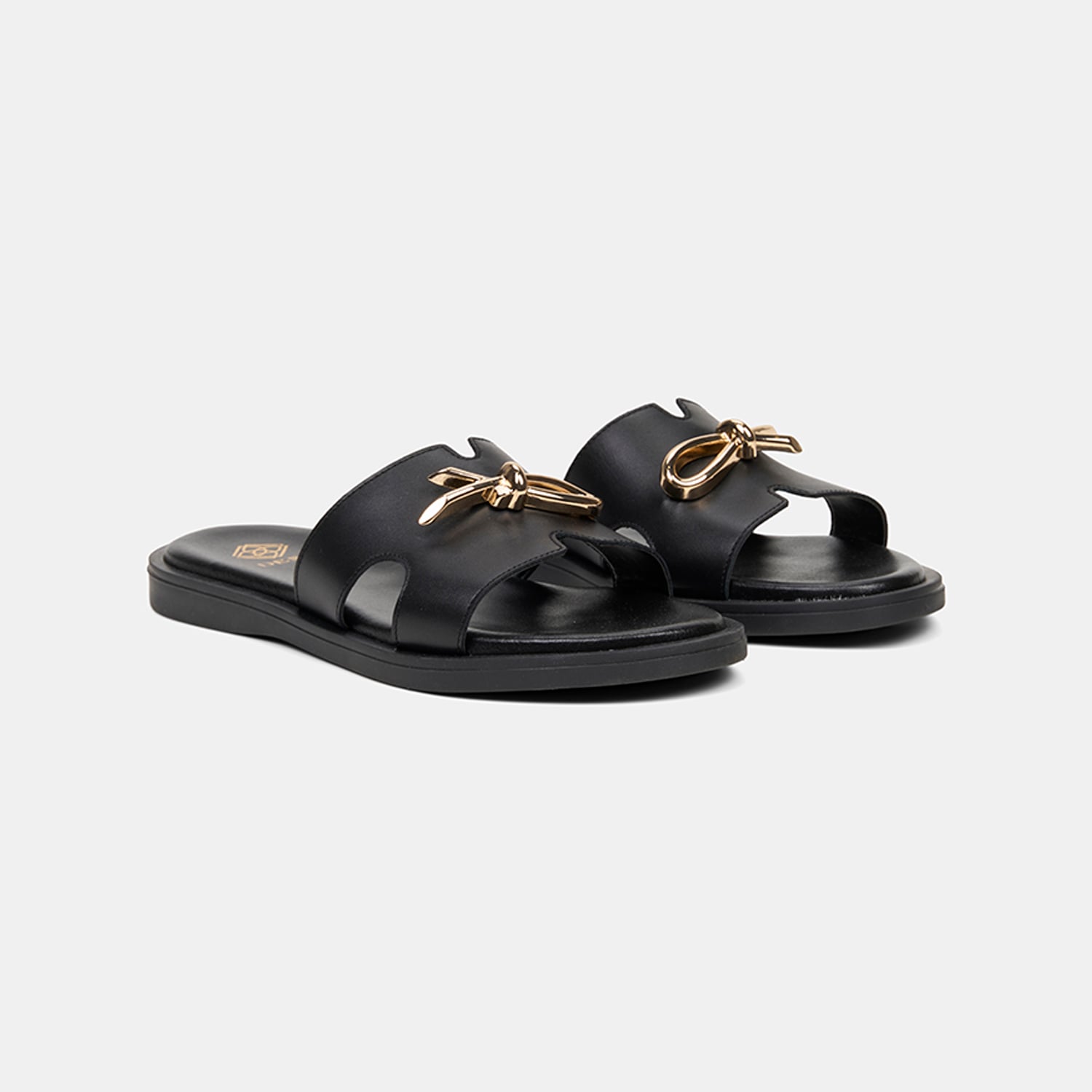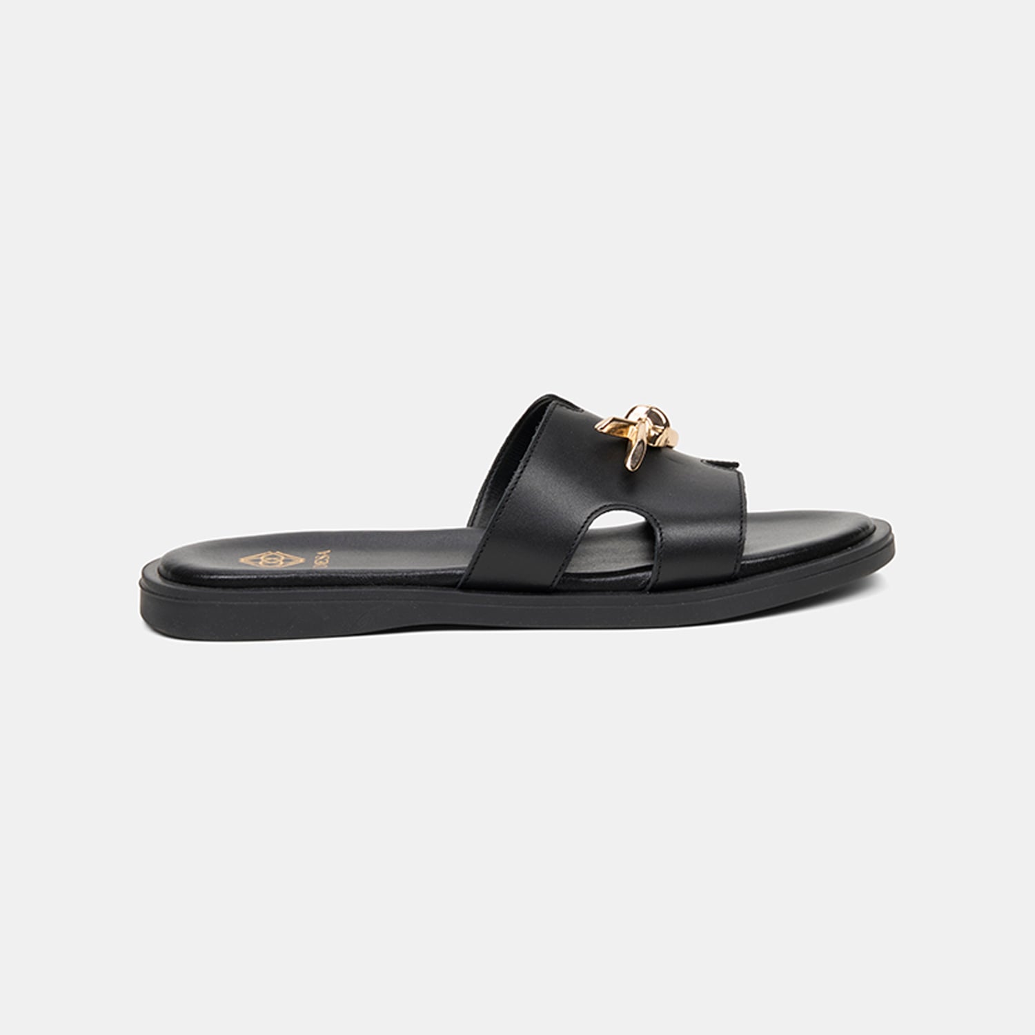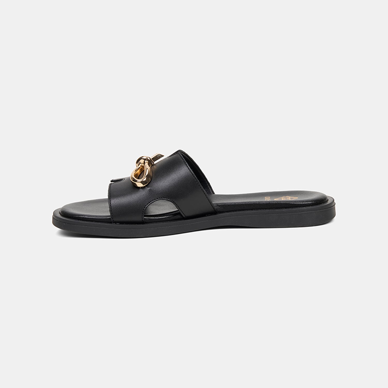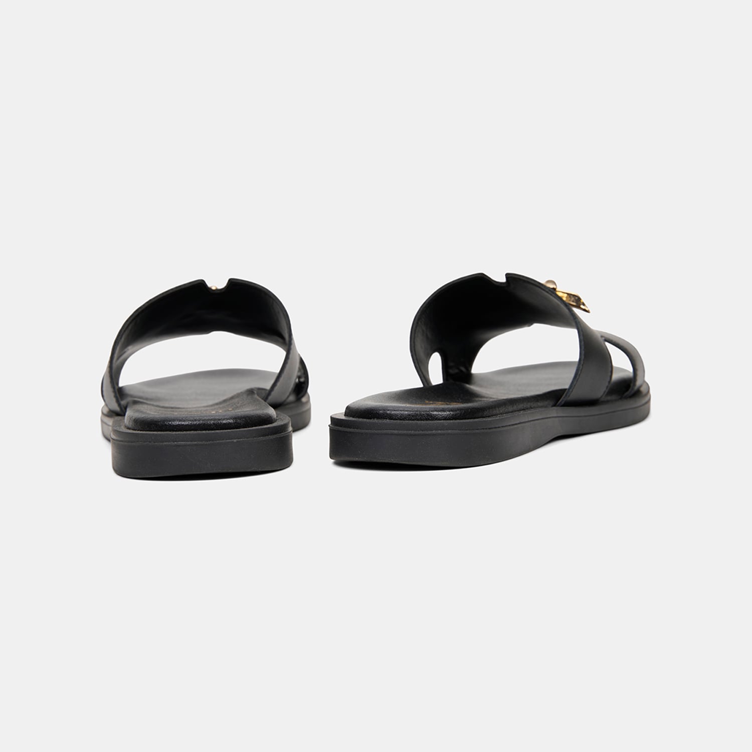 Kadın Siyah Metal Toka Aksesuarlı Deri Terlik