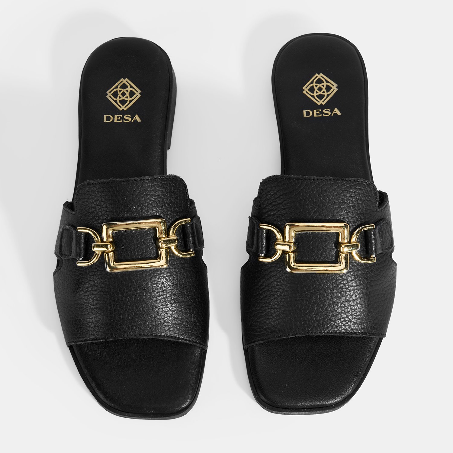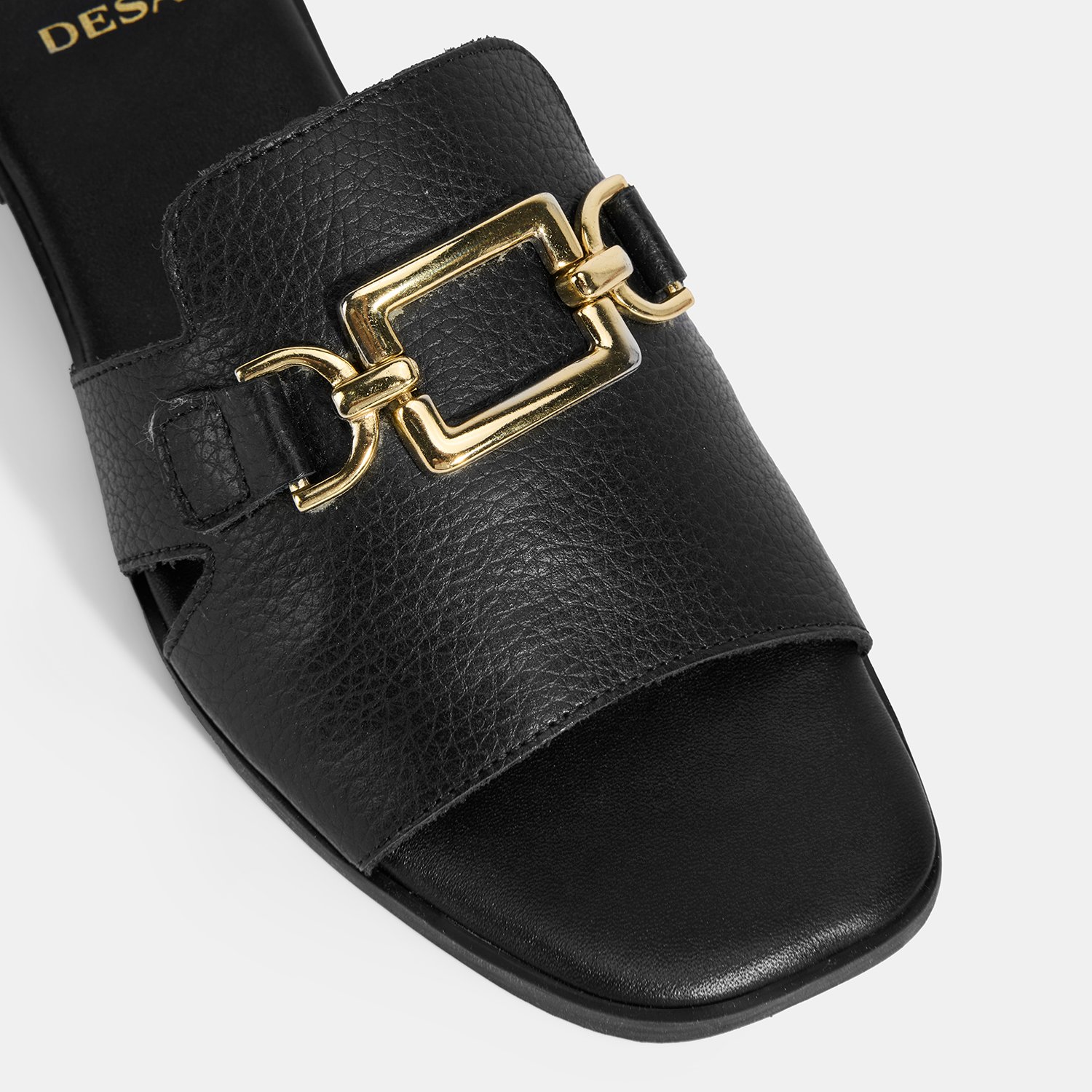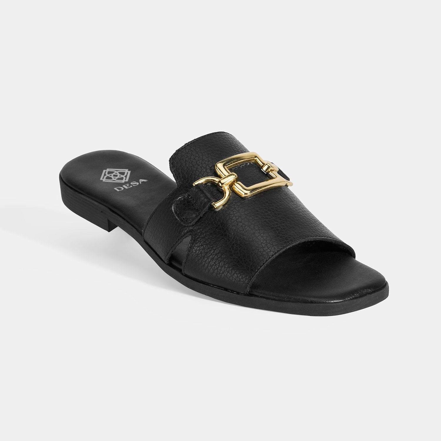 Kadın Siyah Metal Toka Aksesuarlı Deri Terlik
