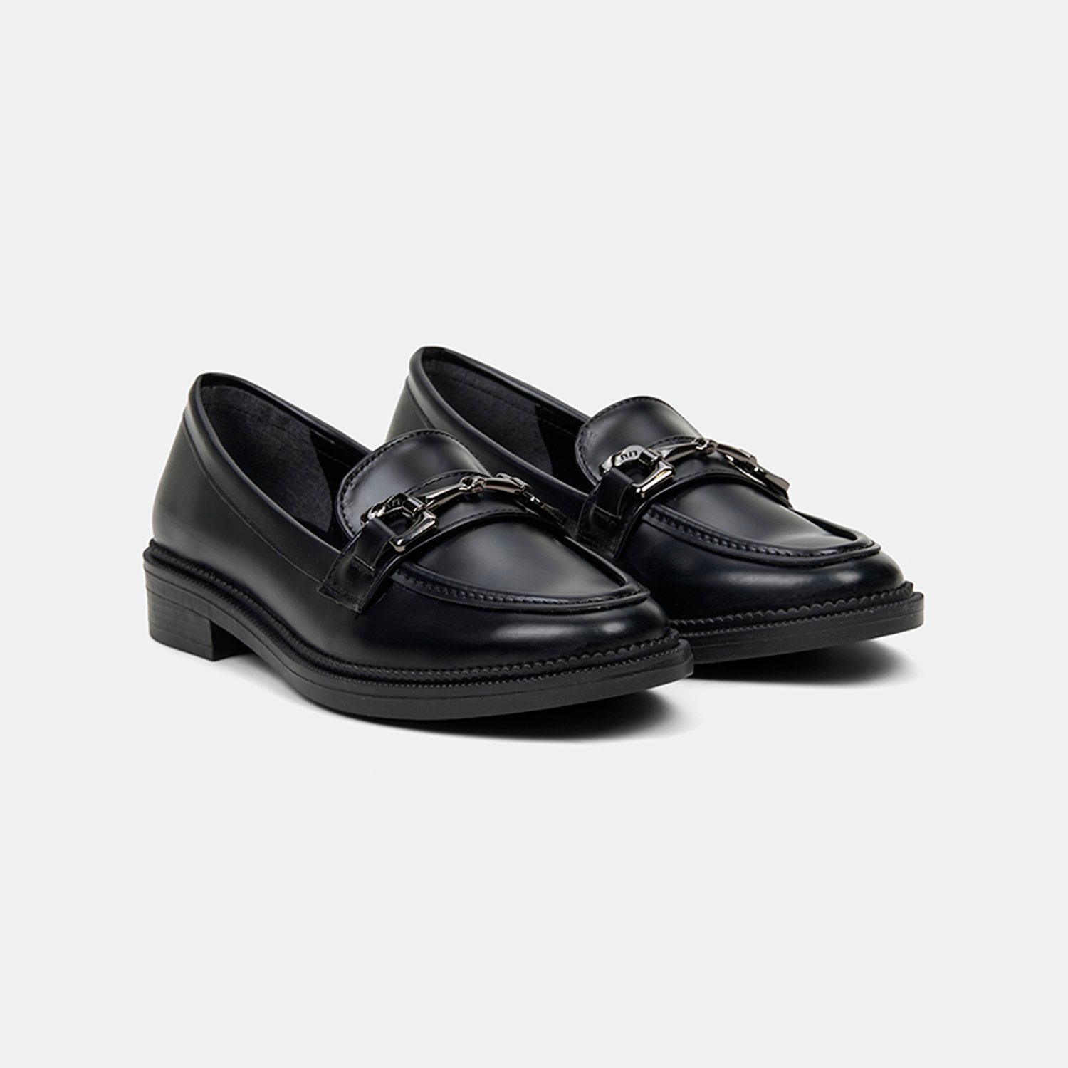 Kadın Siyah Metal Toka Aksesuarlı Loafer