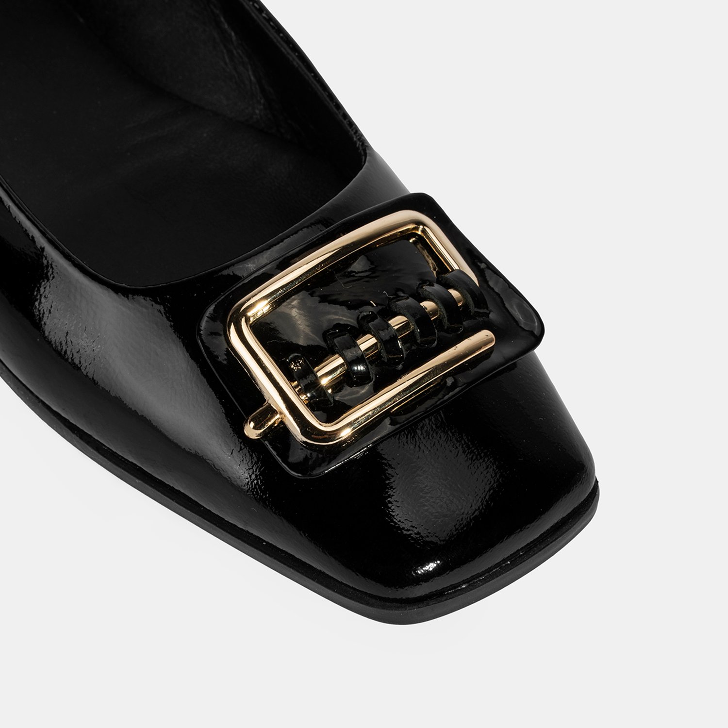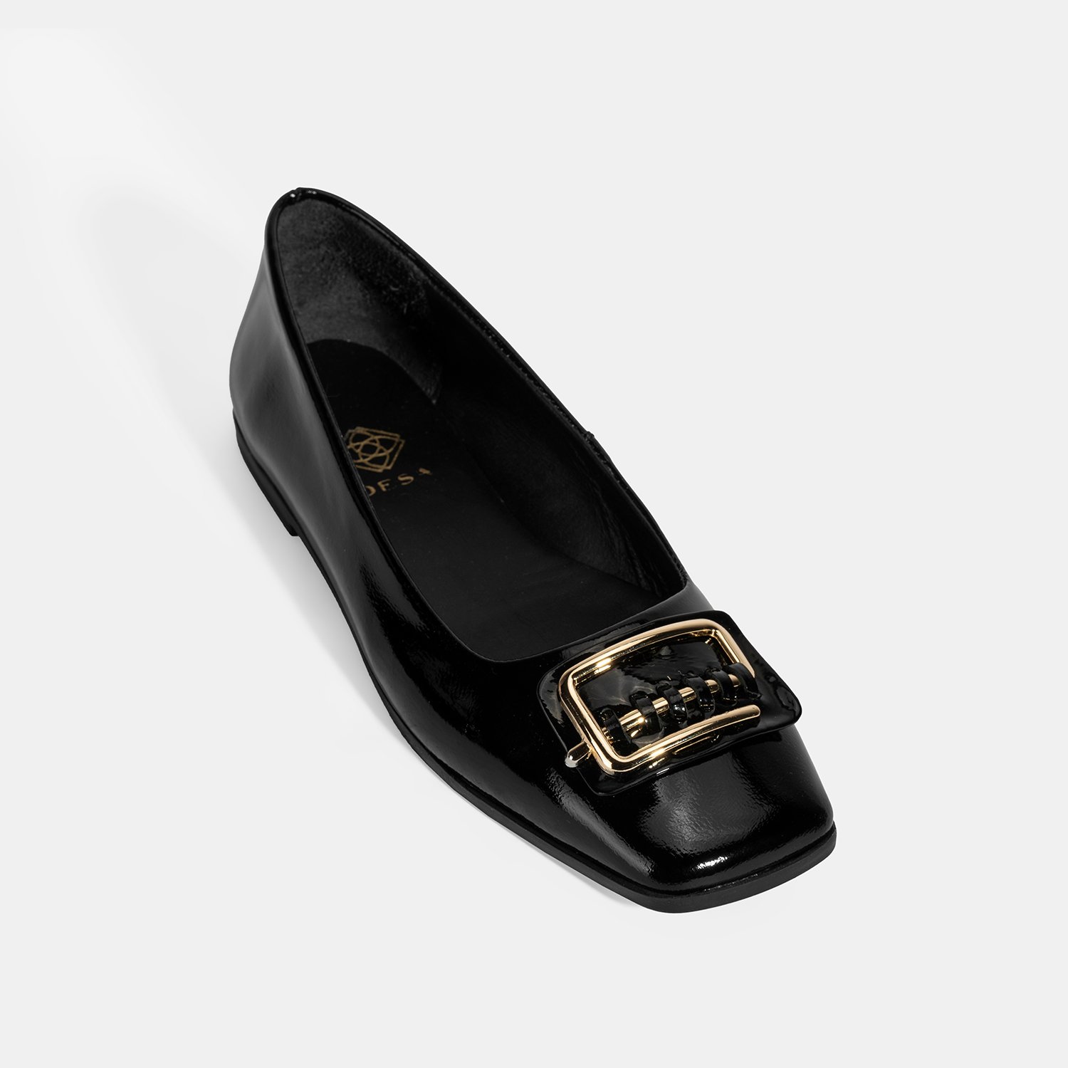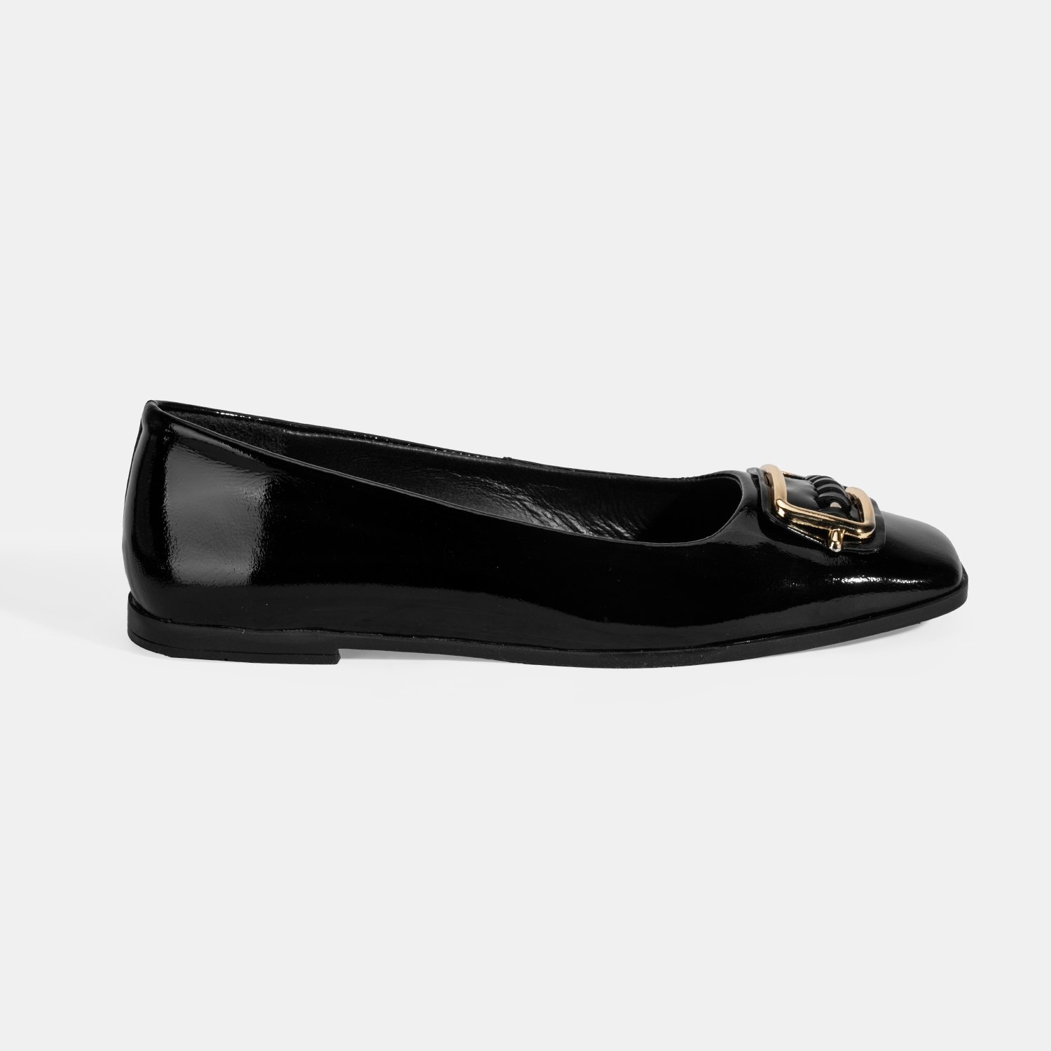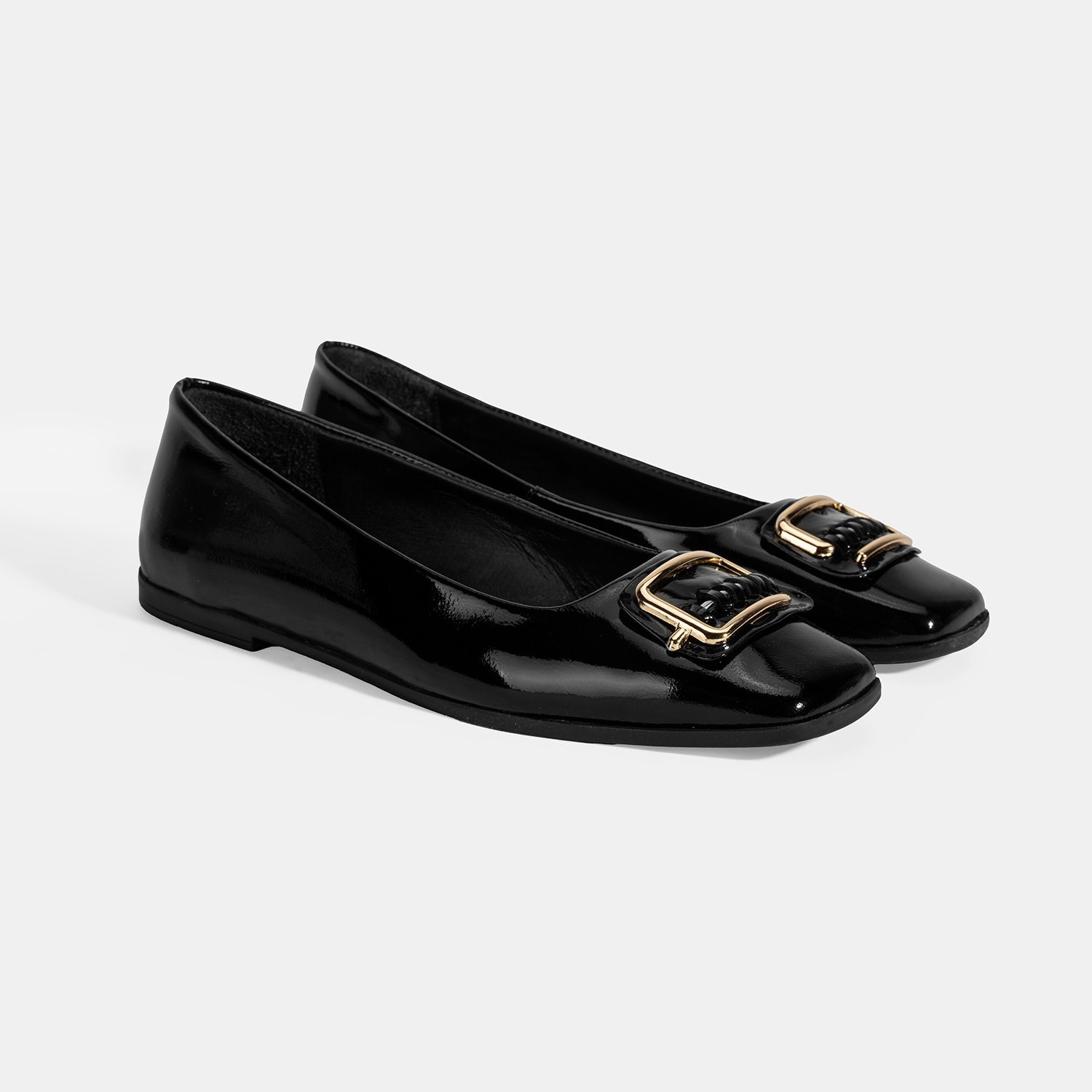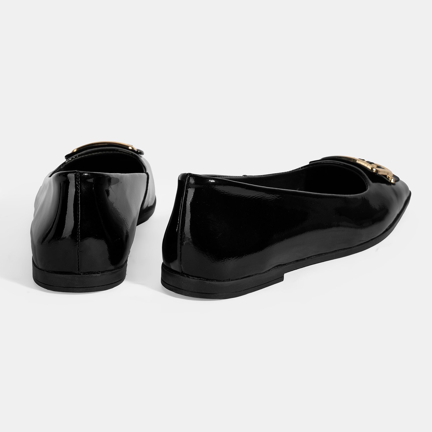 Kadın Siyah Metal Toka Aksesuarlı Rugan Babet