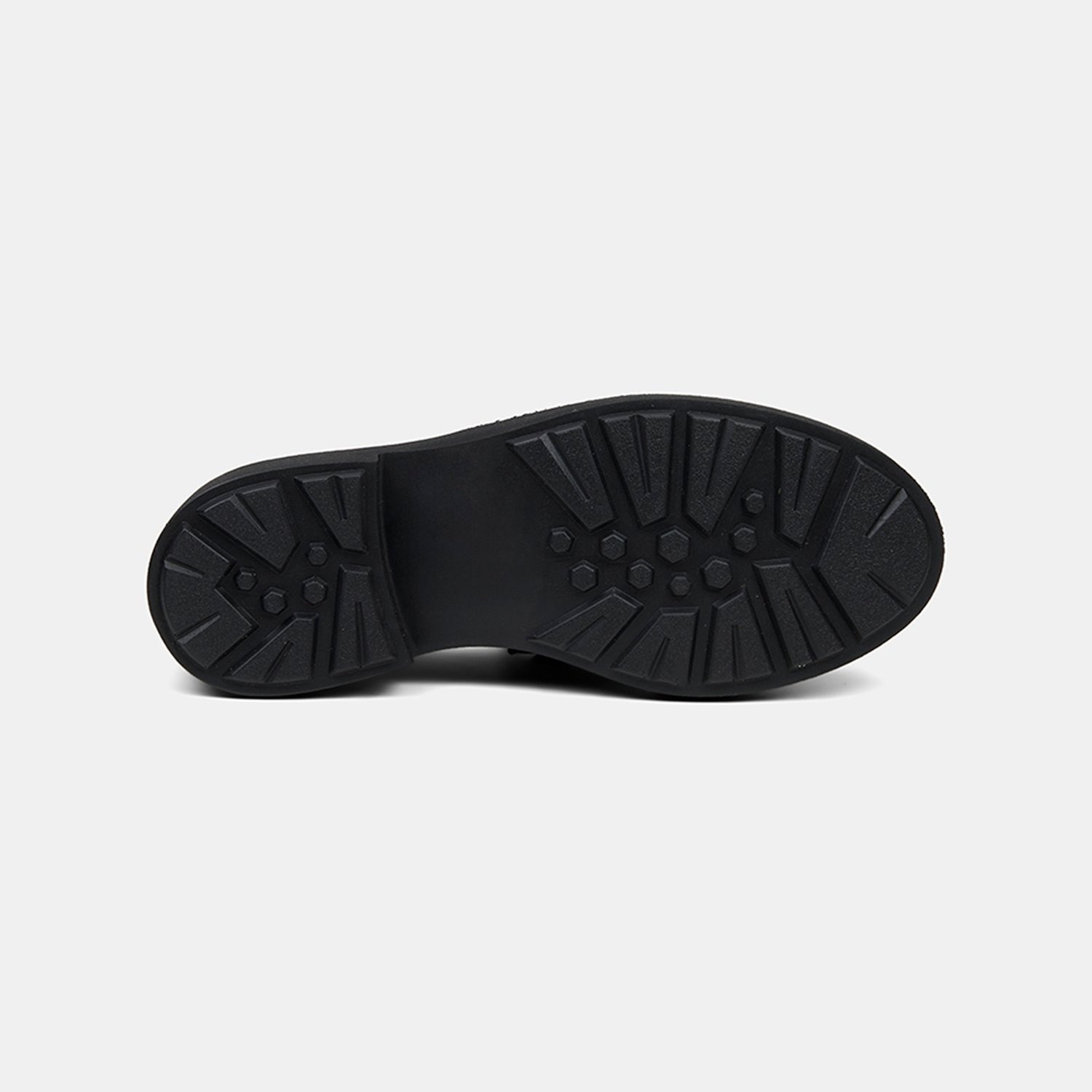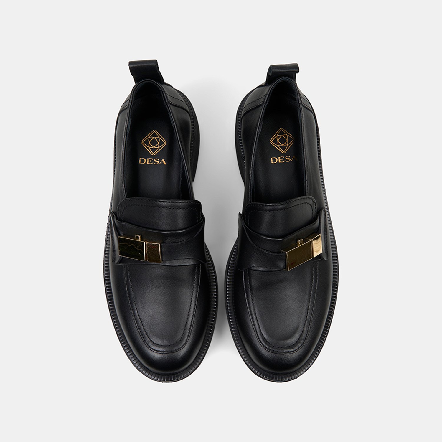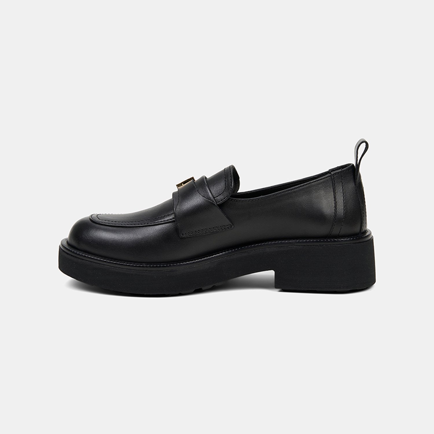 Kadın Siyah Metal Tokalı Kalın Tabanlı Deri Loafer