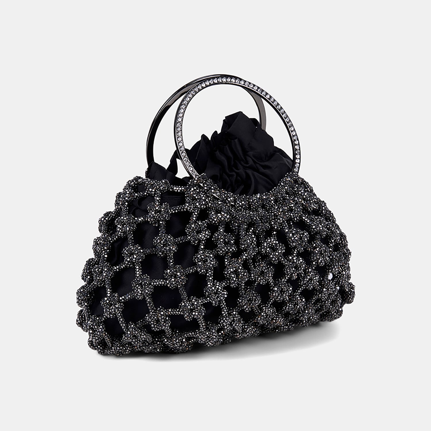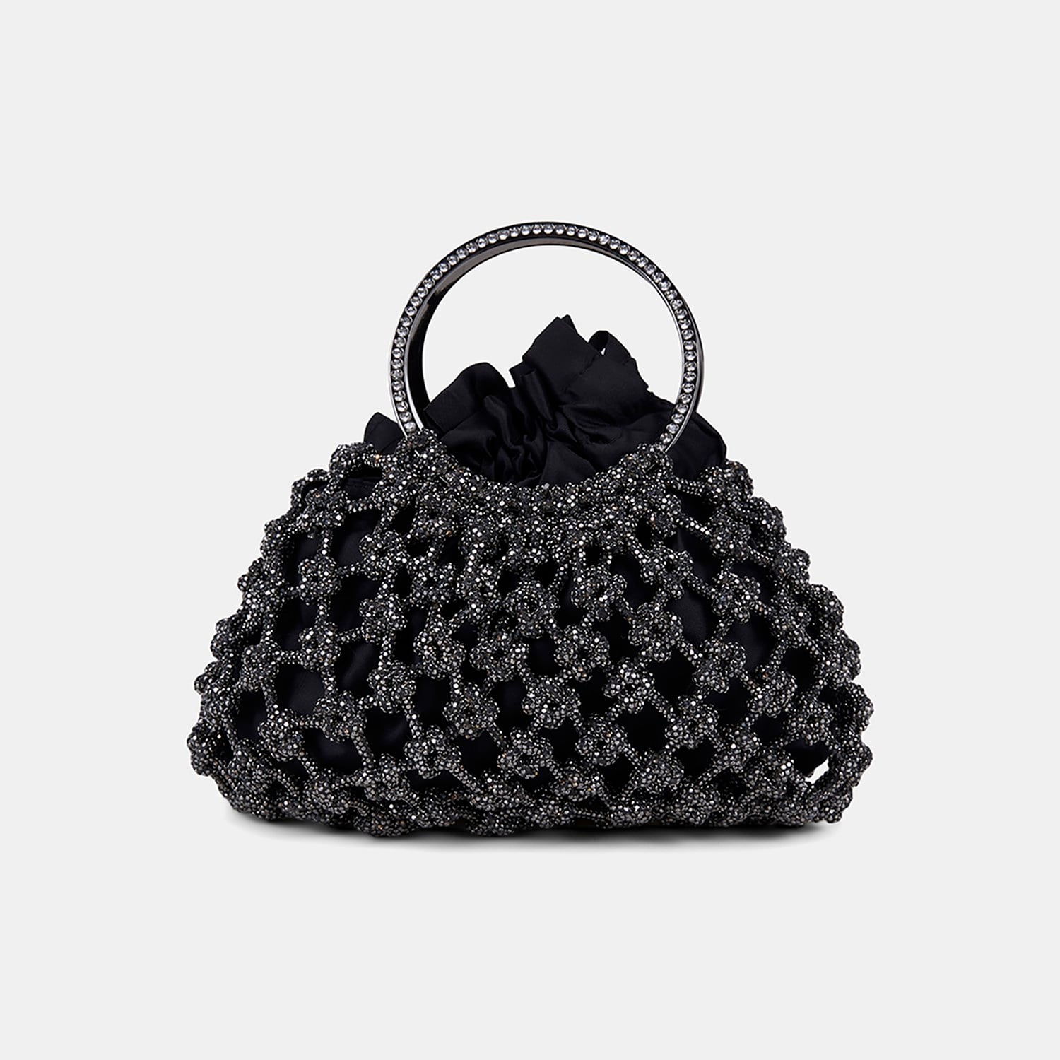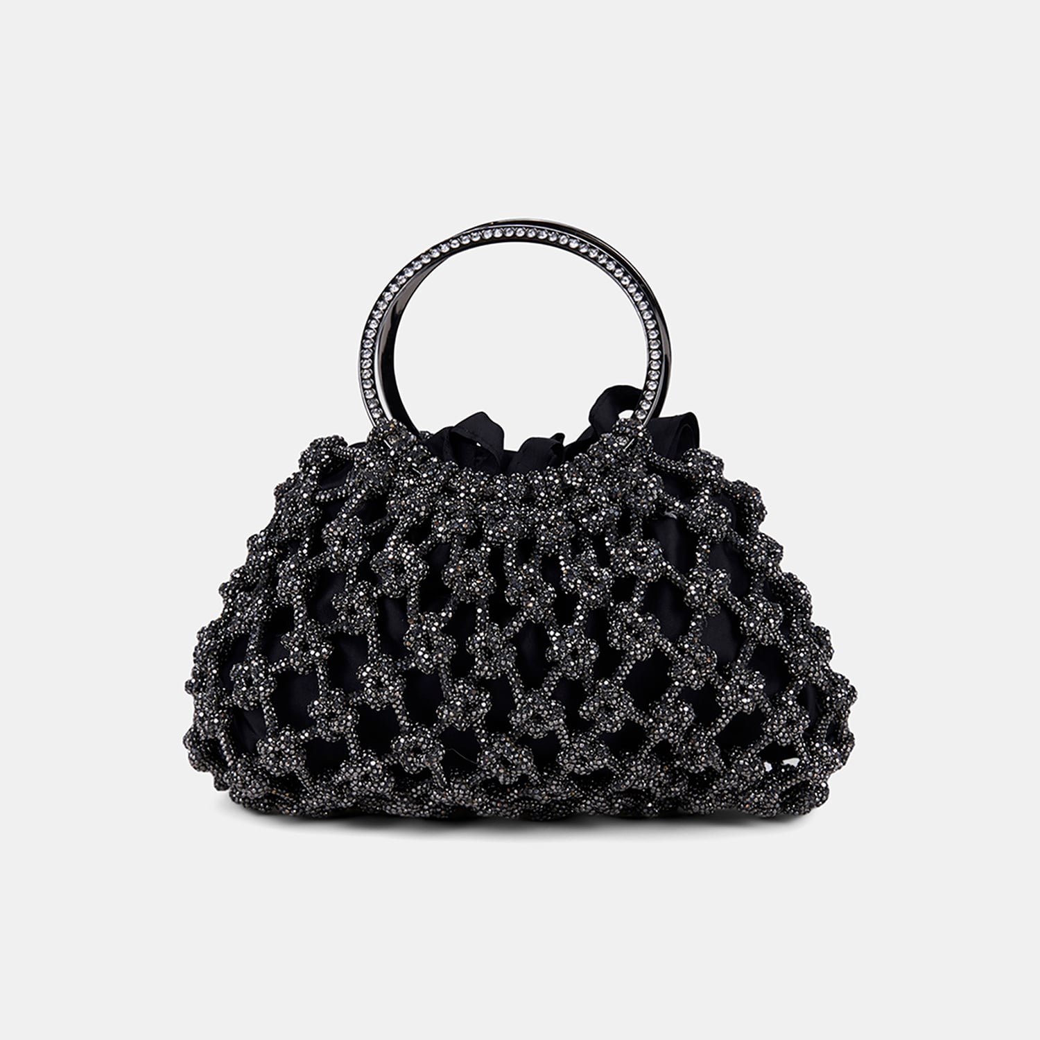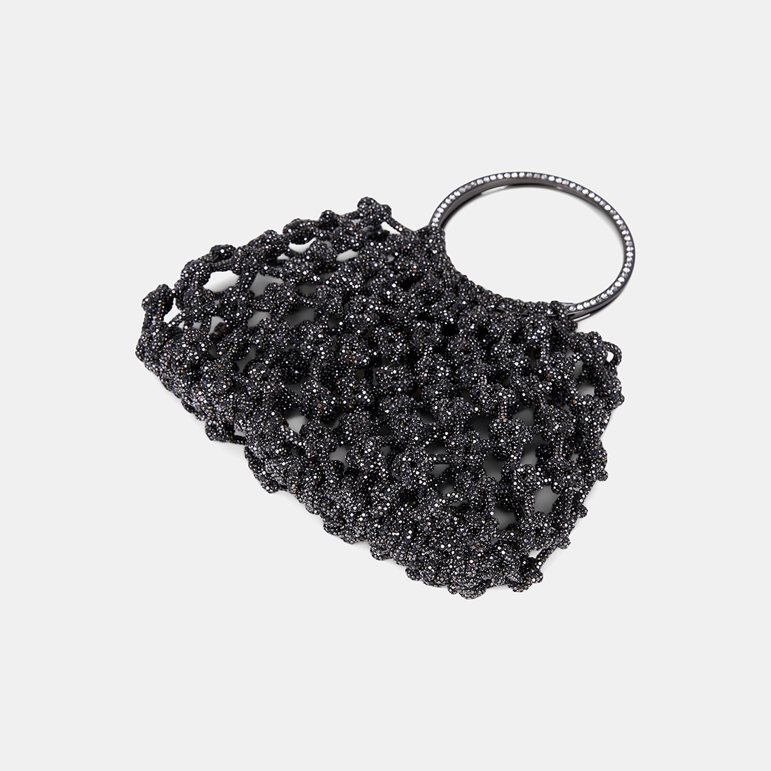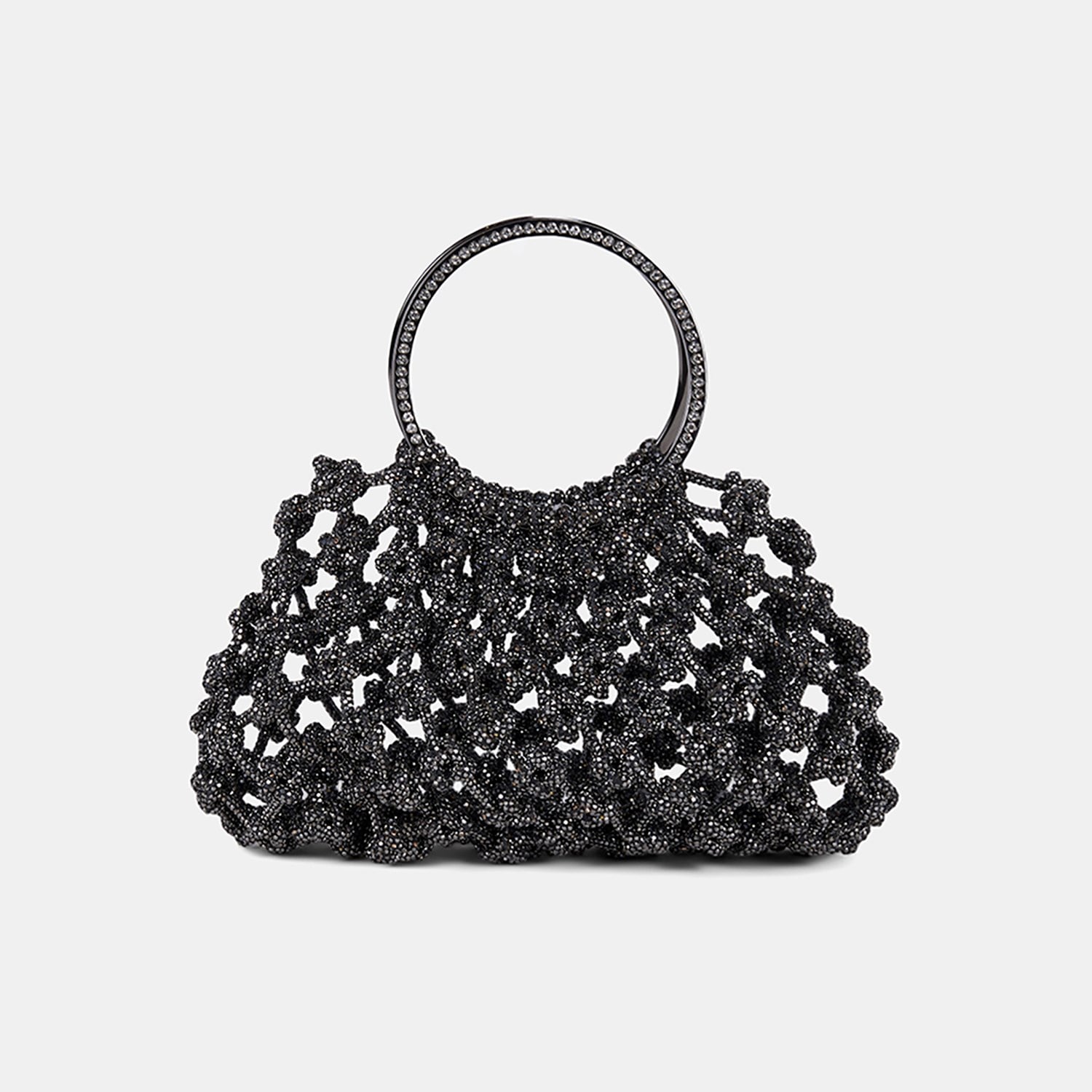 Kadın Siyah Metalik Örgü Tasarımlı Halka Kulplu Abiye Çanta