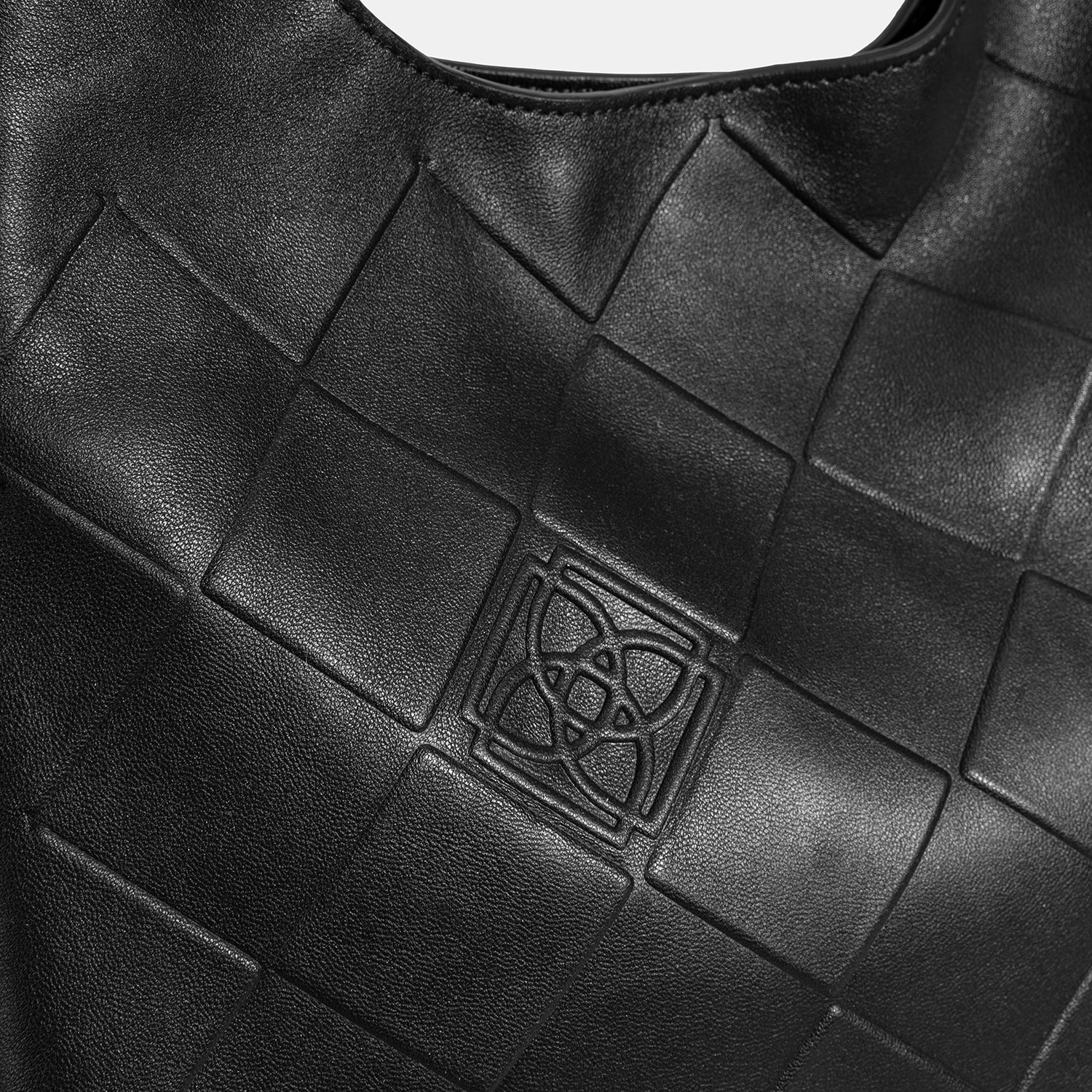 Çanta üzerinde kare desenler içinde özel bir teknikle işlenmiş Desa kabarma logosu, şıklığını tamamlar.