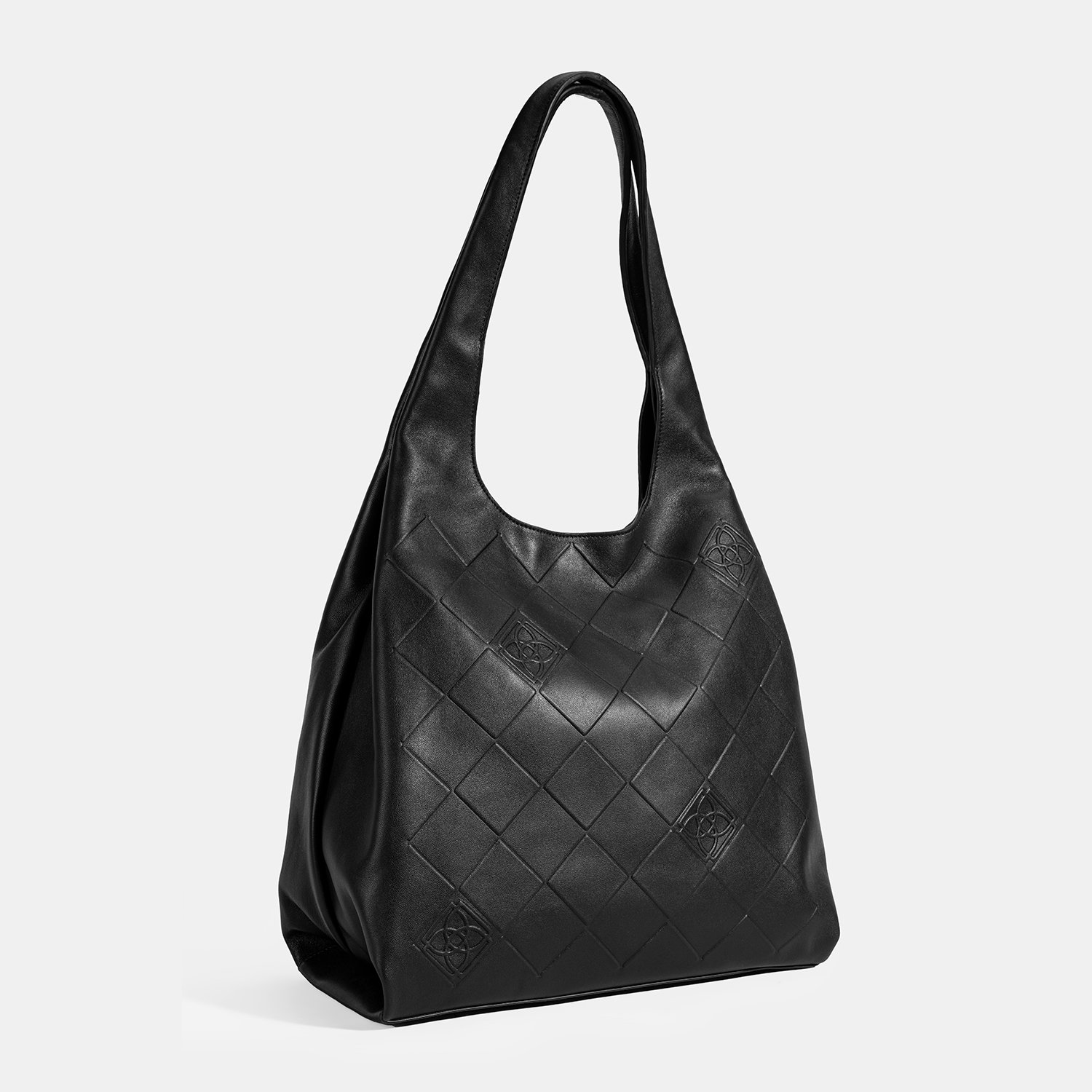 Kadın Siyah Monogram Baskılı Deri Omuz Çantası