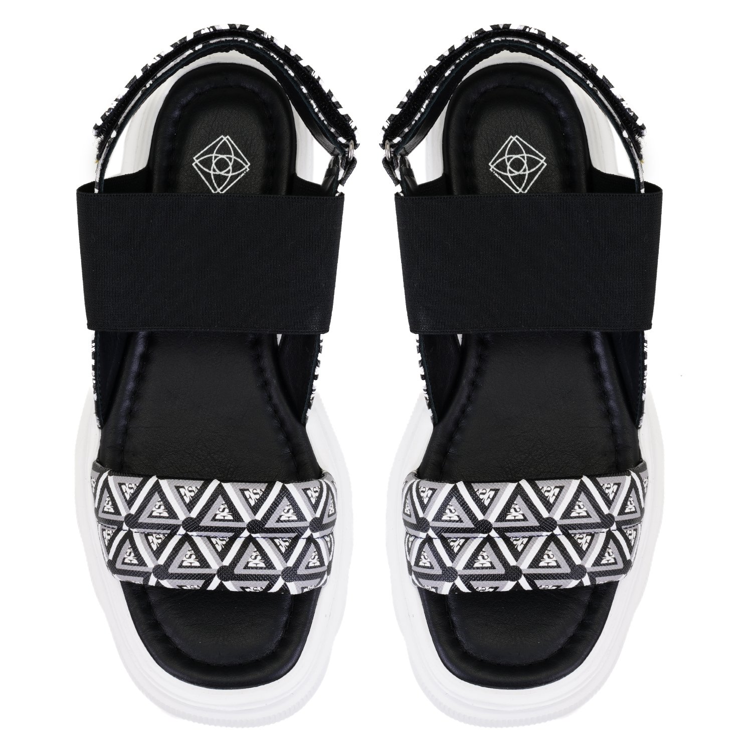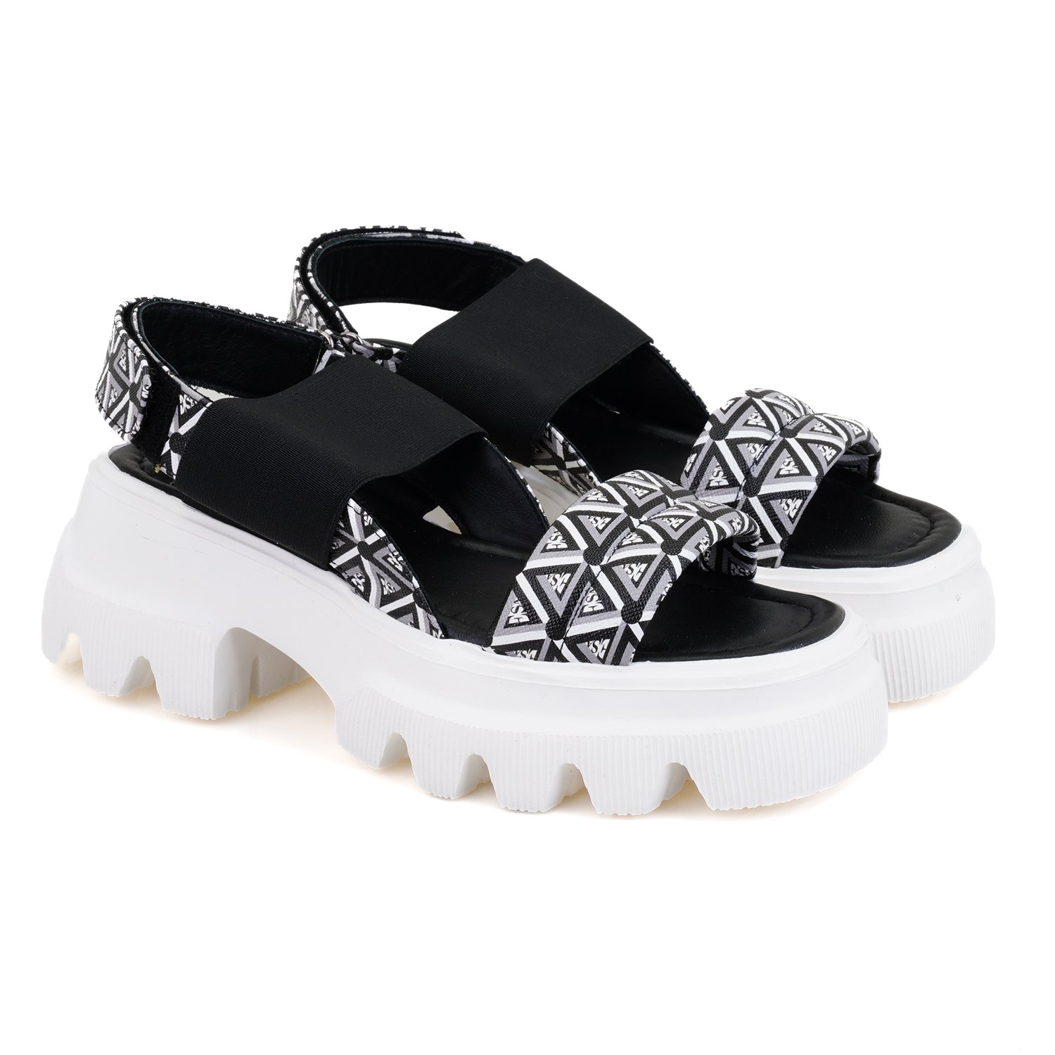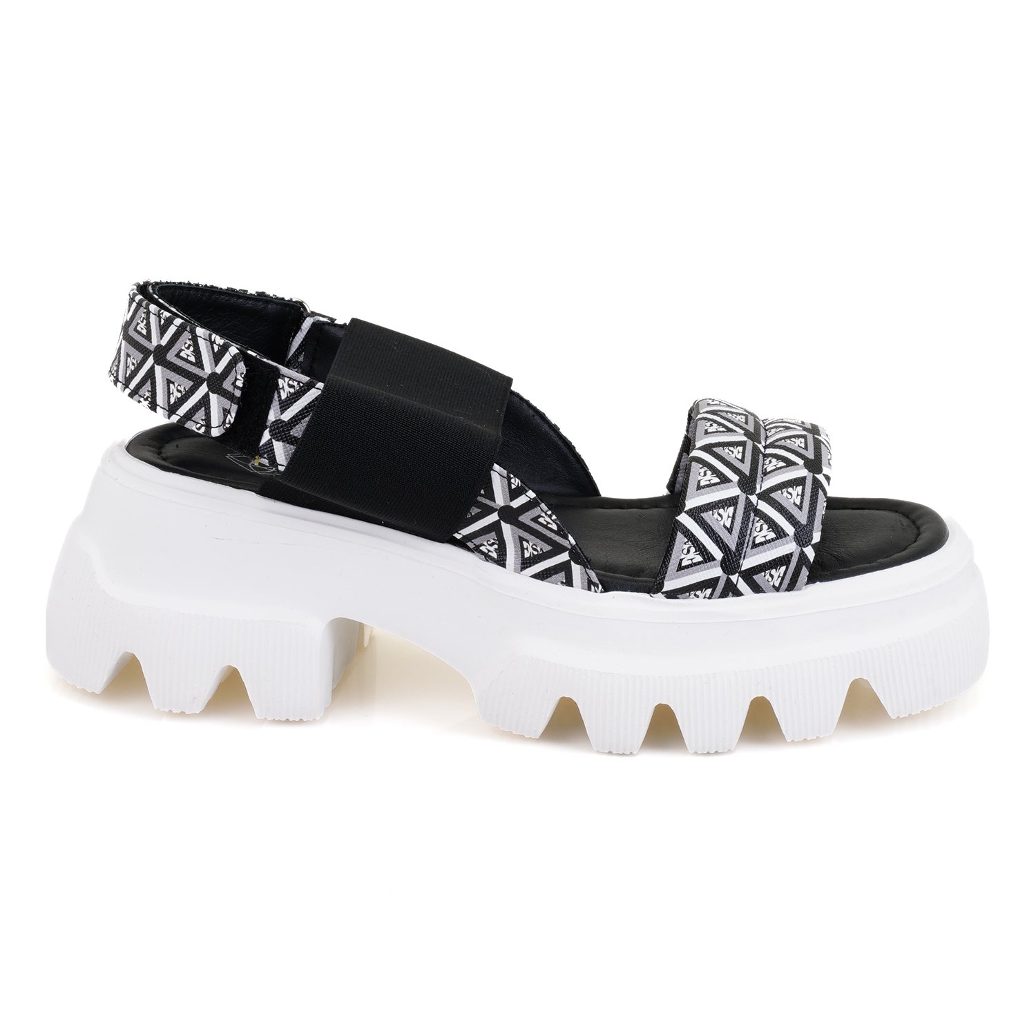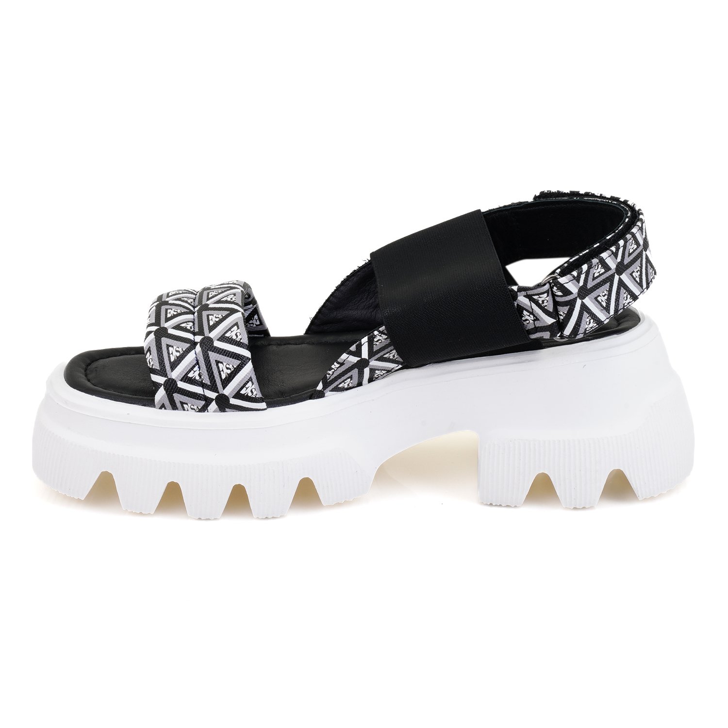 Kadın Siyah Monogram Desenli Dolgu Topuklu Sandalet
