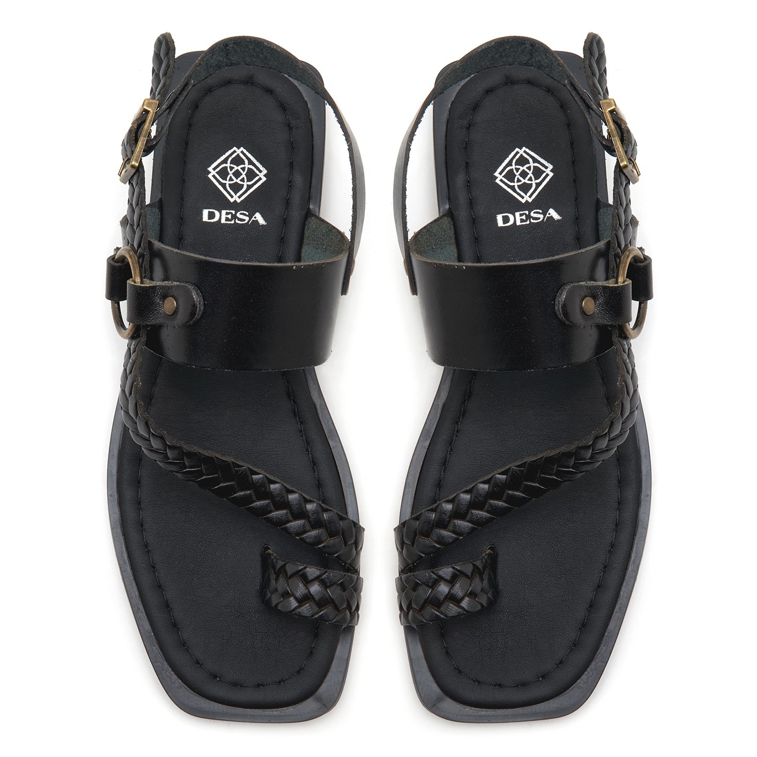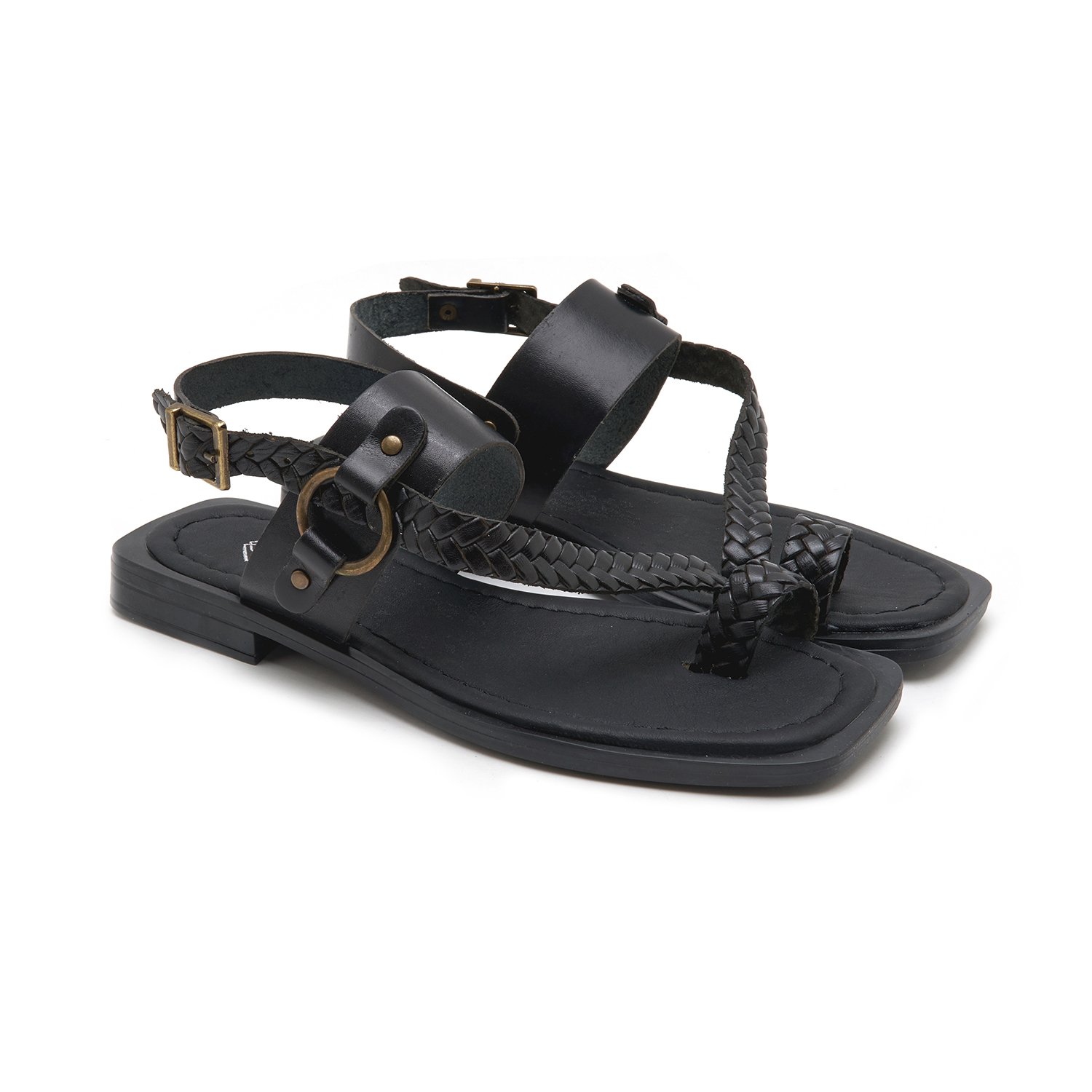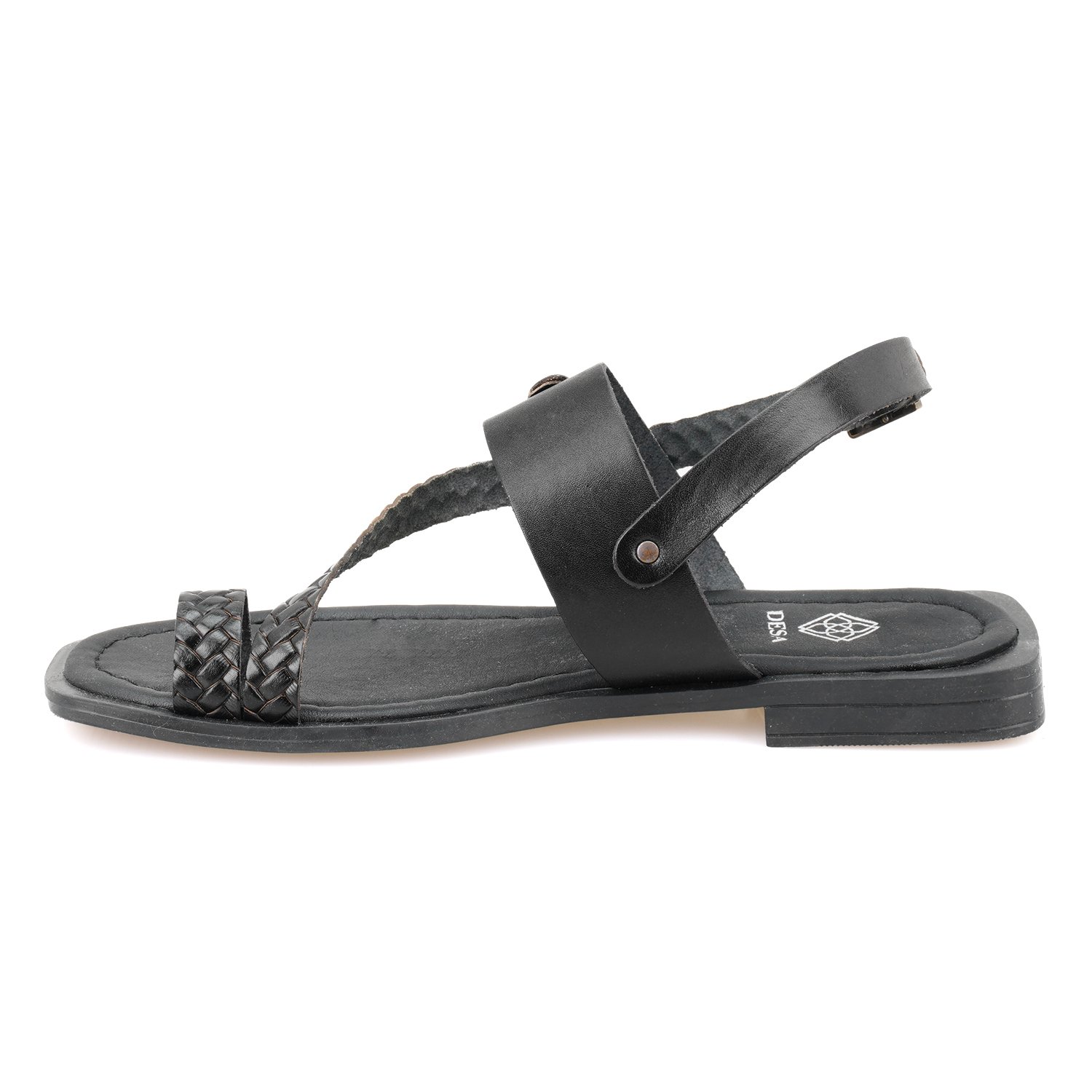 Kadın Siyah Örgü Baskılı Deri Sandalet