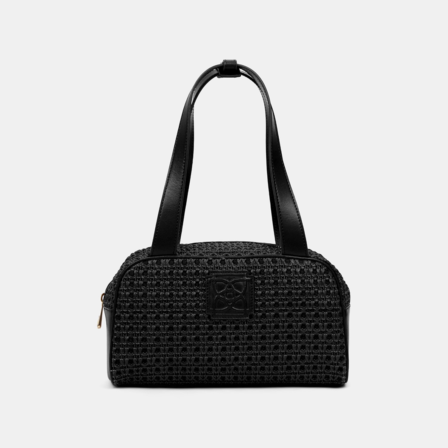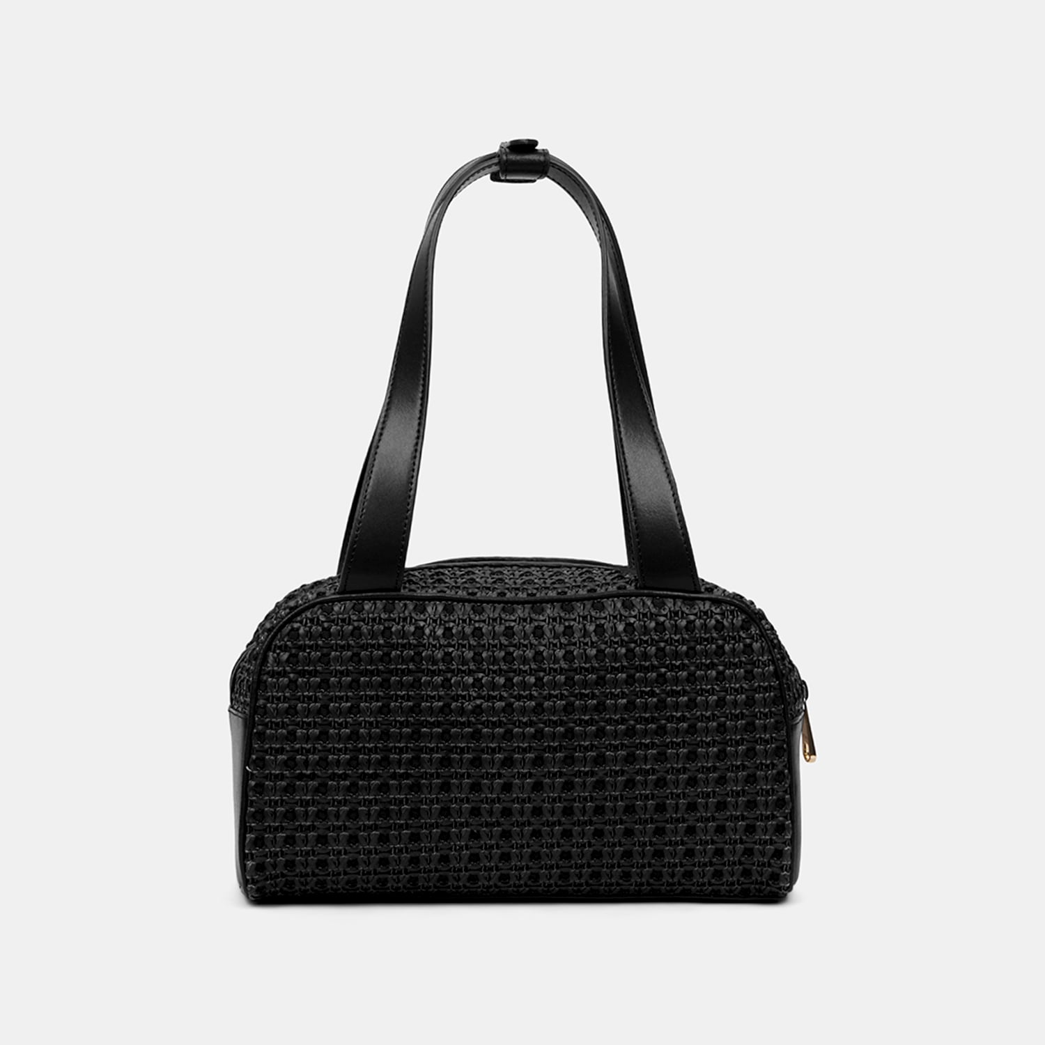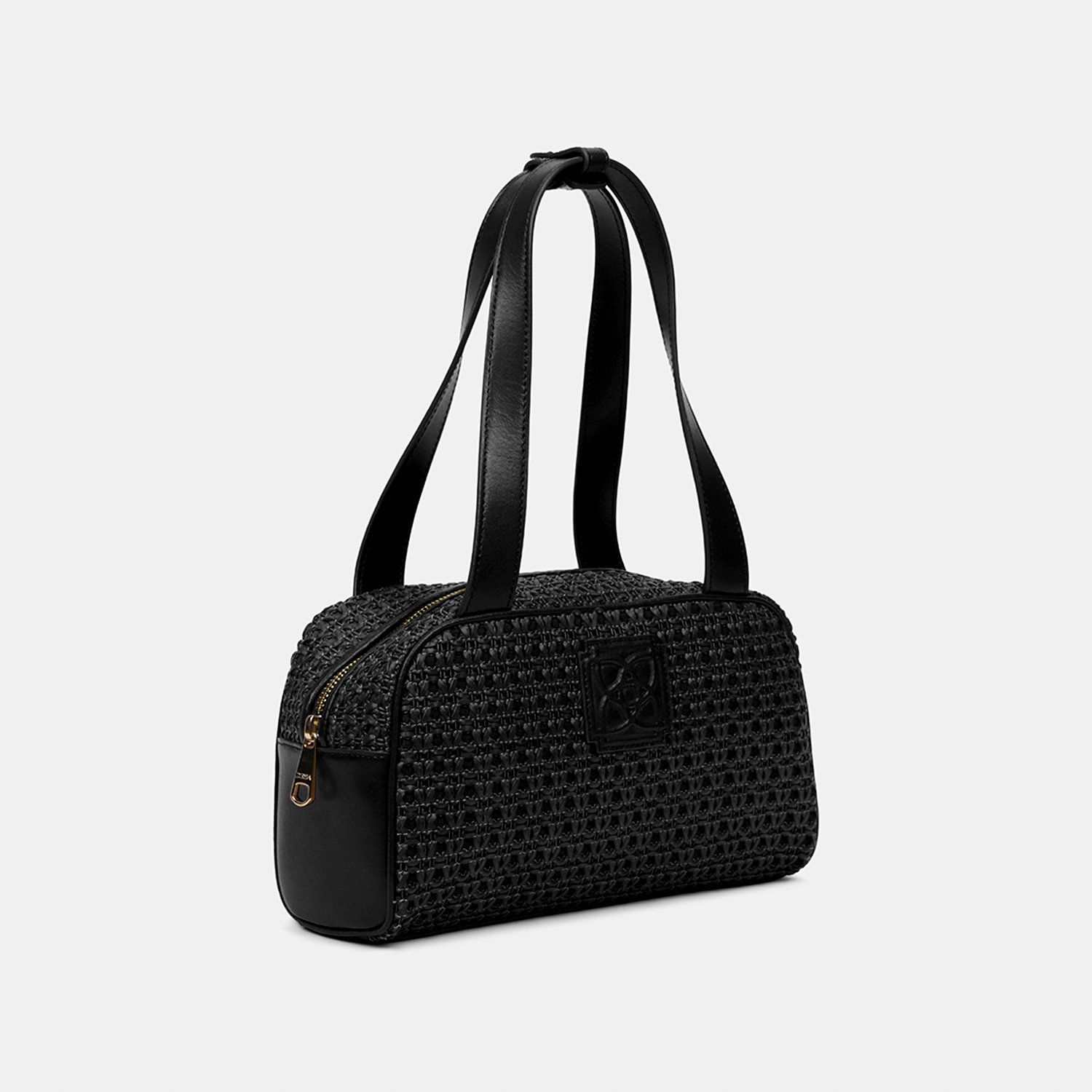 Kadın Siyah Örgü Detaylı Logolu Omuz Çantası