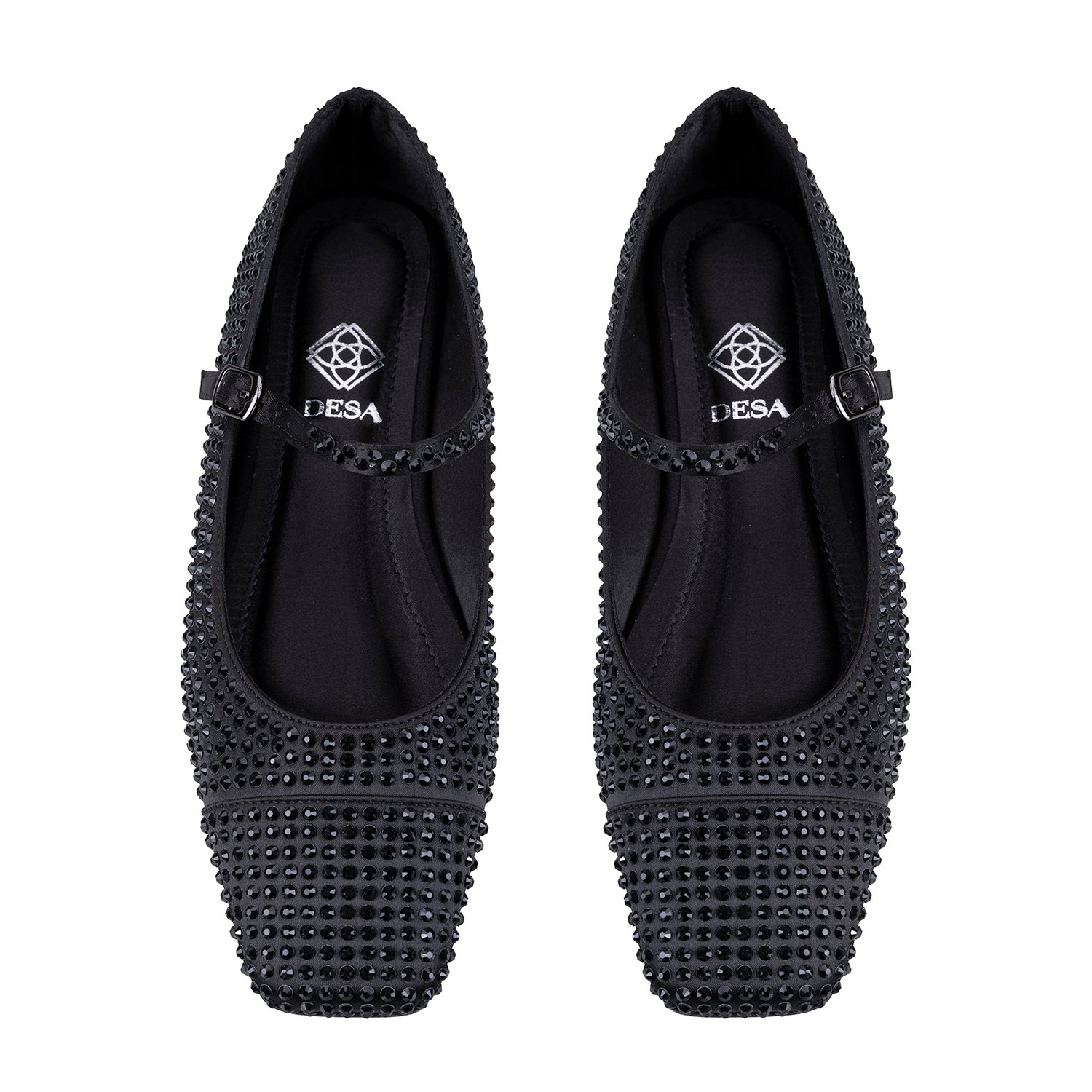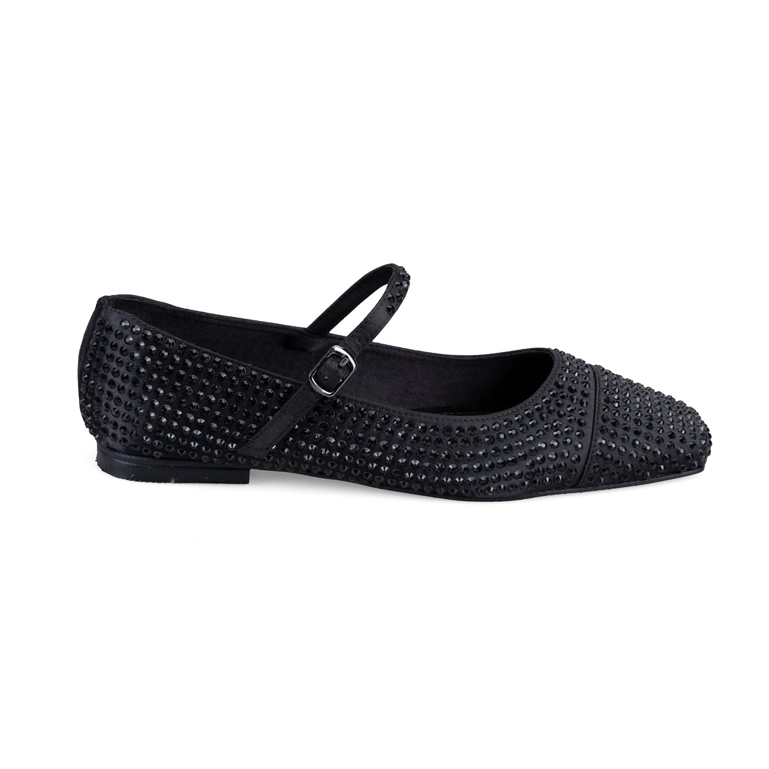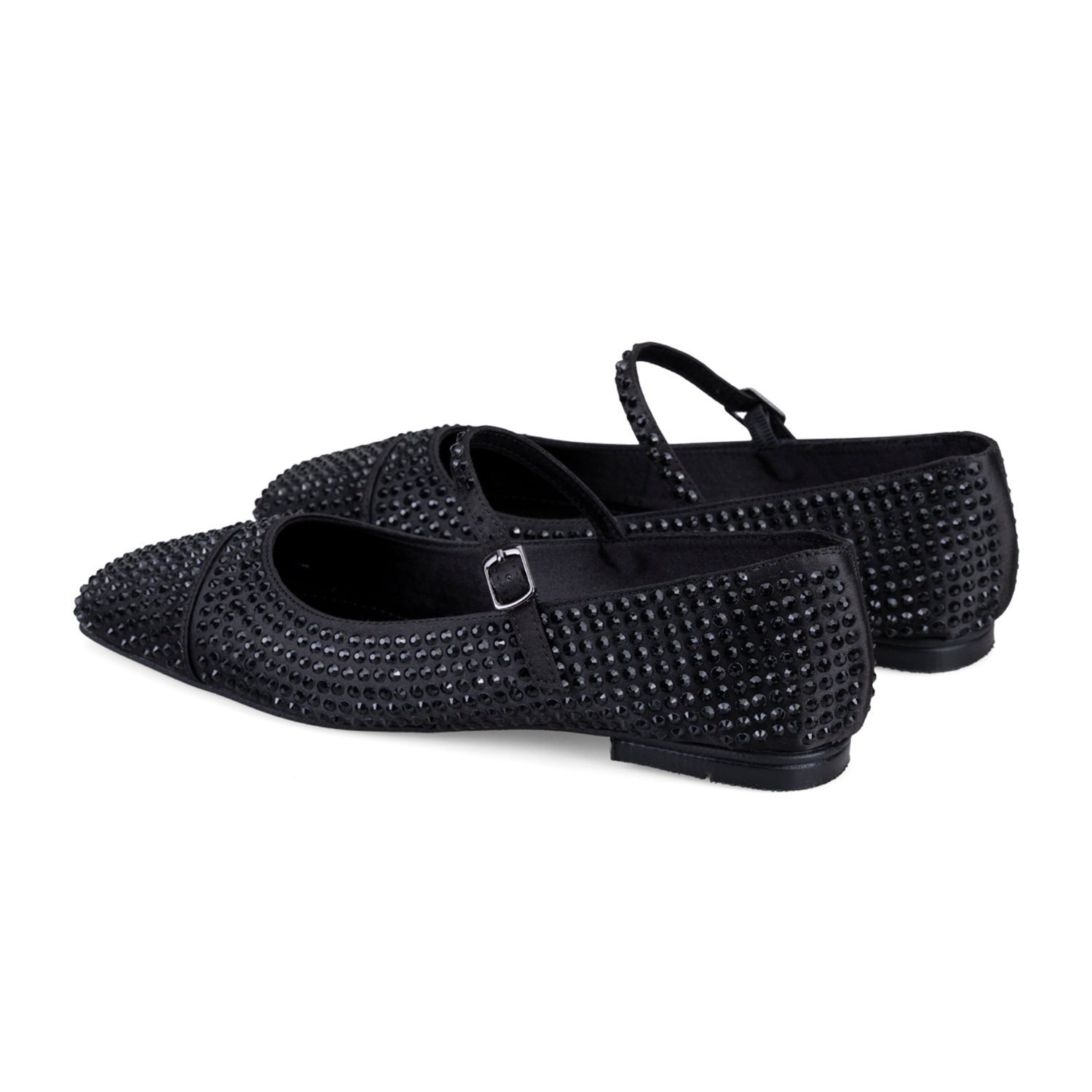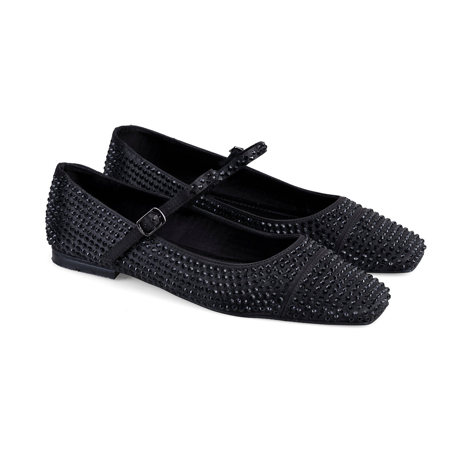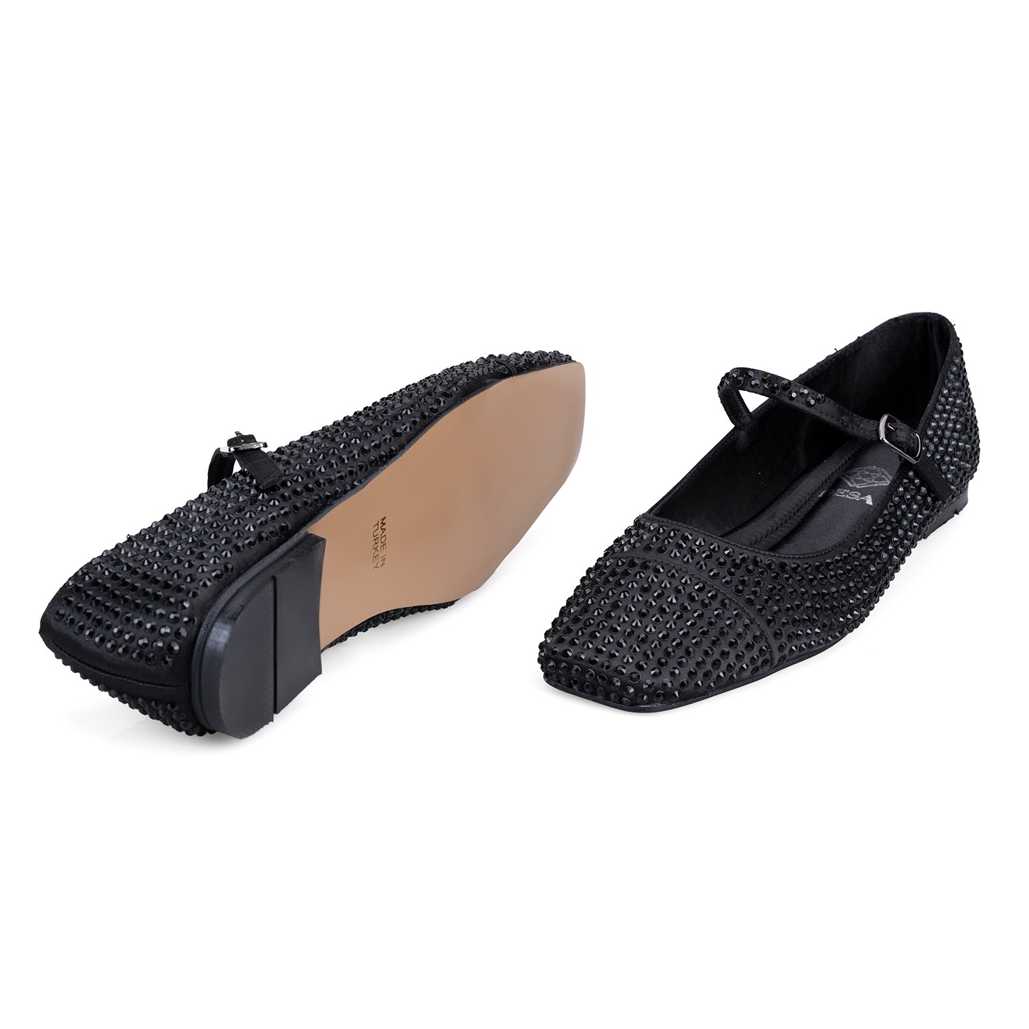 Kadın Siyah Parlak Taş Detaylı Mary Jane Babet