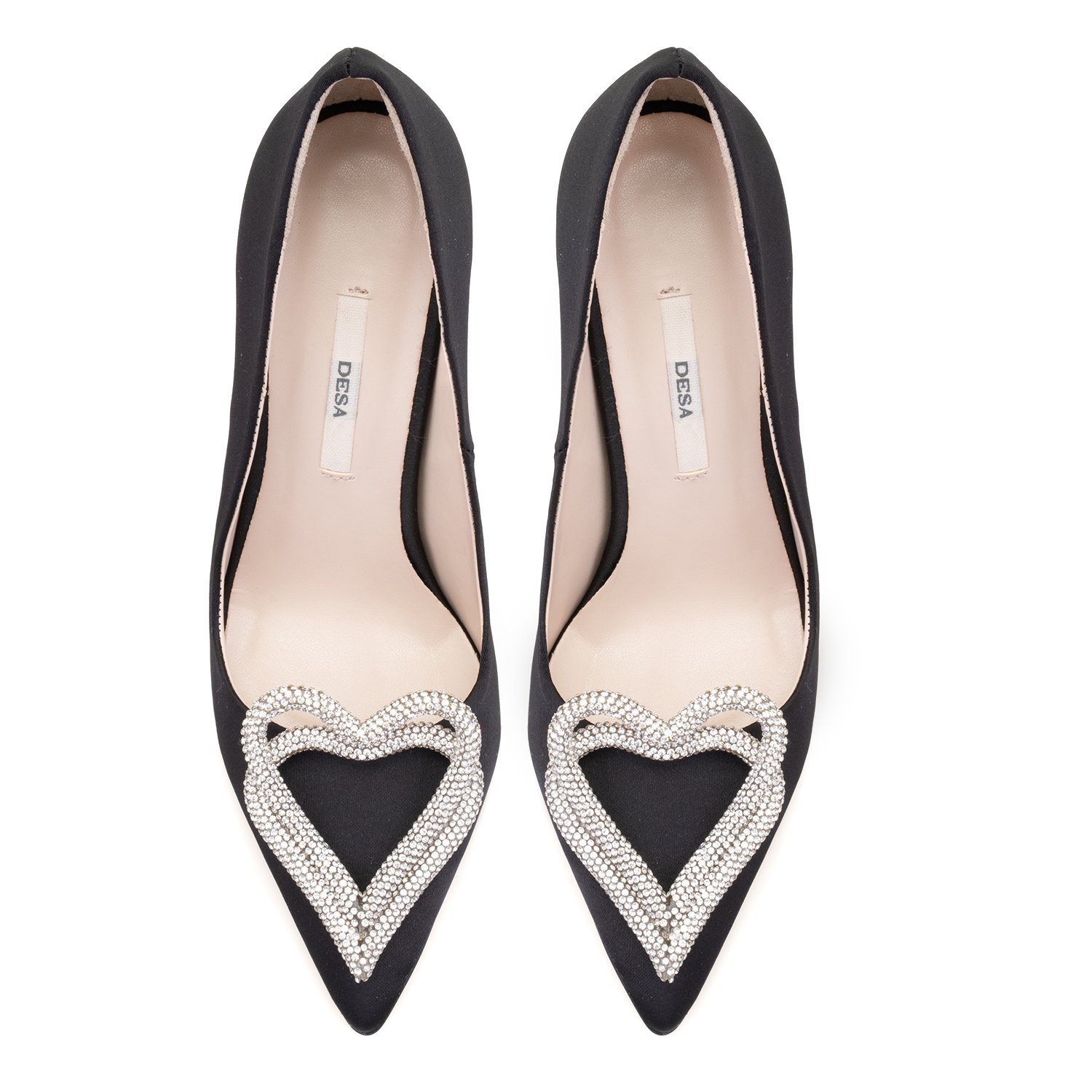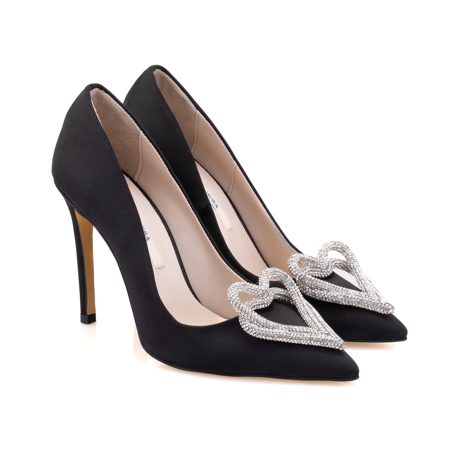 Pu iç astarlı, pu iç tabanlı, taşlı kalp aksesuar detaylı, jurdan tabanlı, topuklu kadın ayyakkabı.