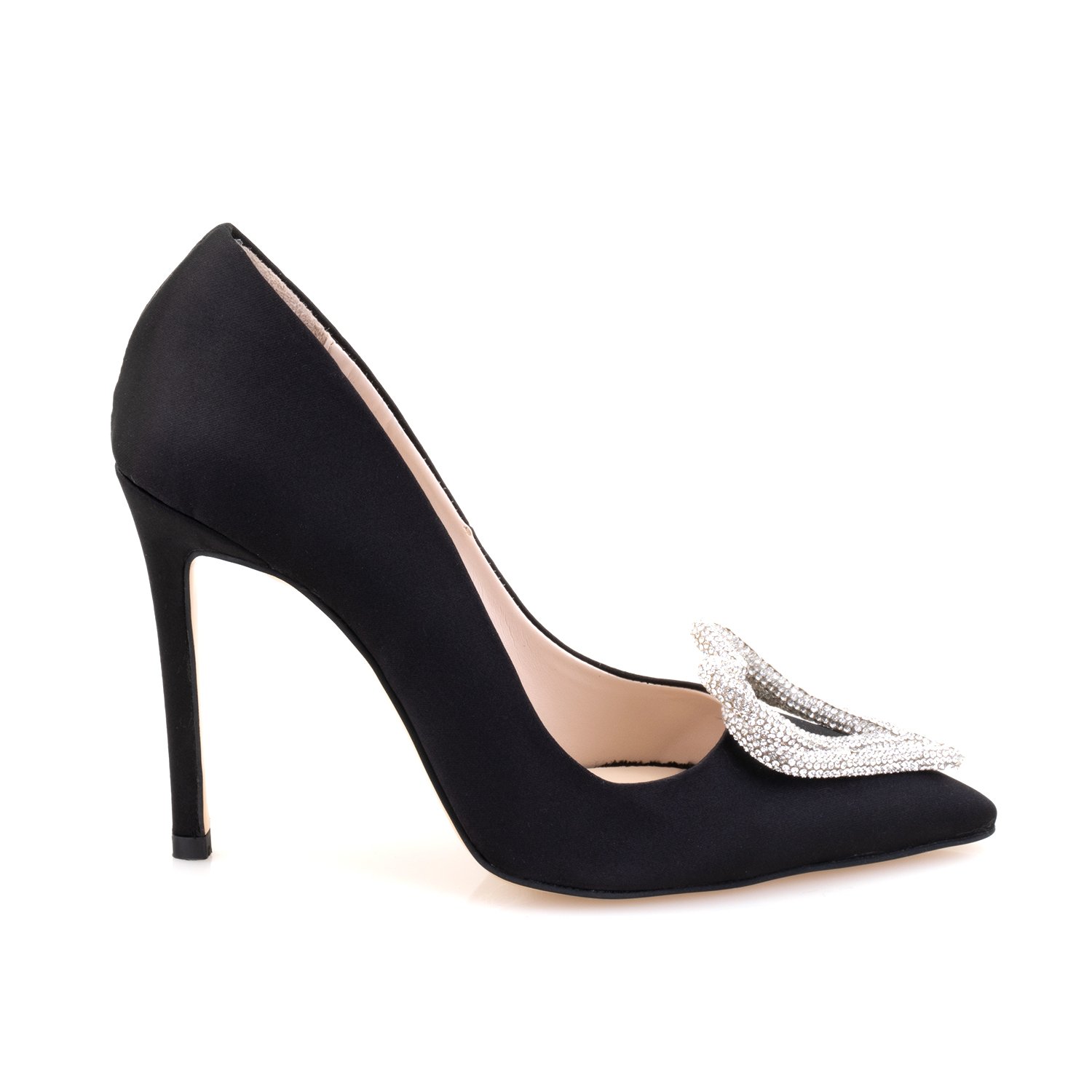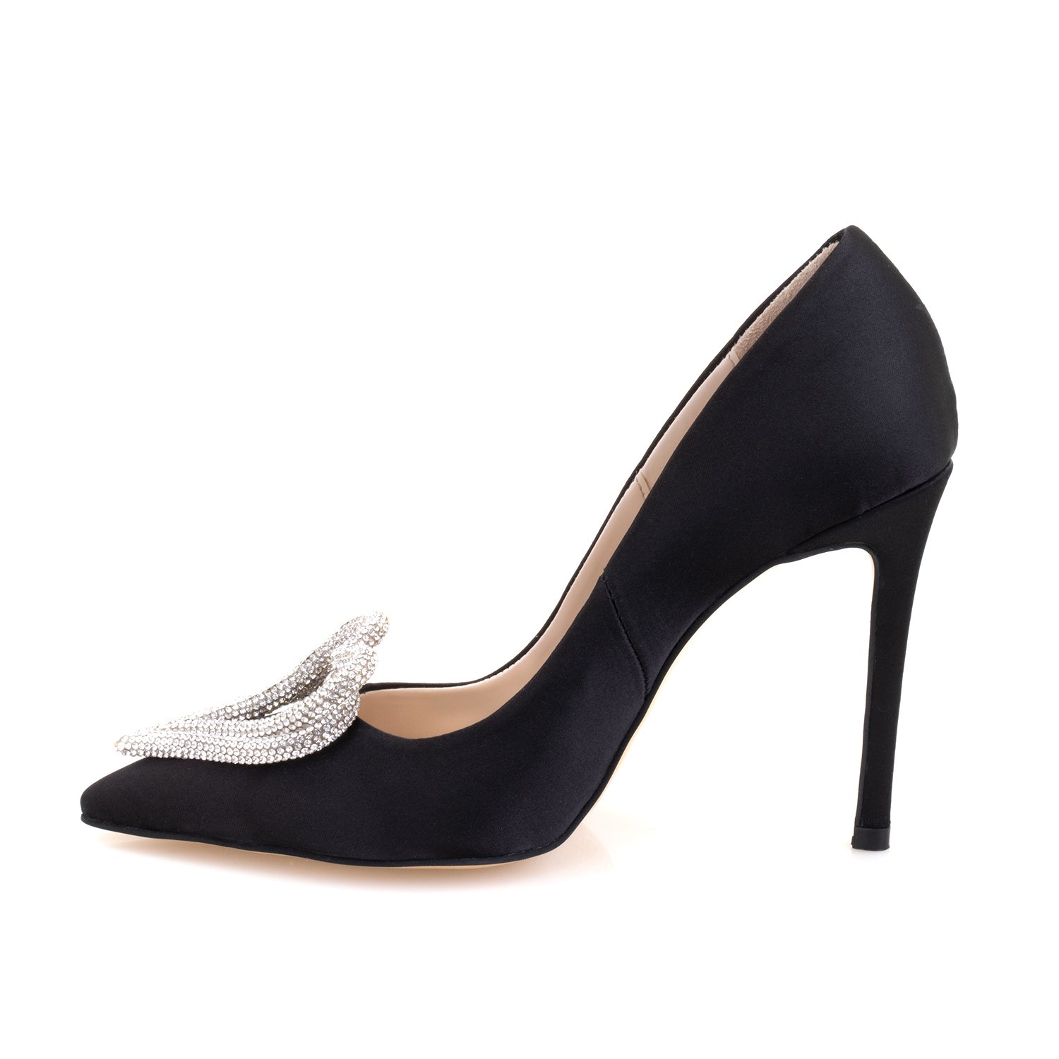 Kadın Siyah Parlak Taş Detaylı Topuklu Ayakkabı