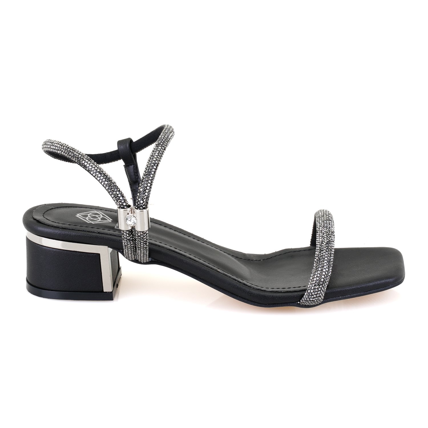 Kadın Siyah Parlak Taş Detaylı Topuklu Sandalet