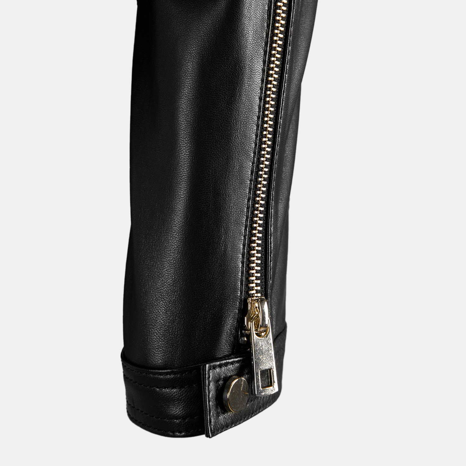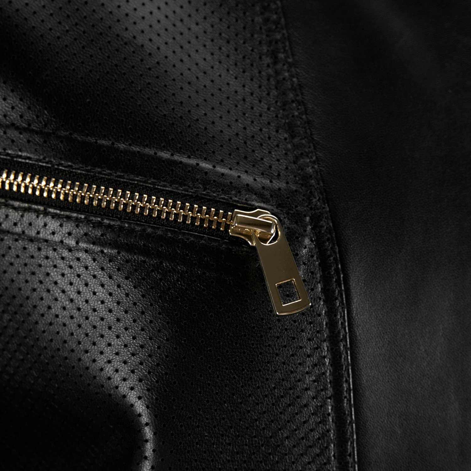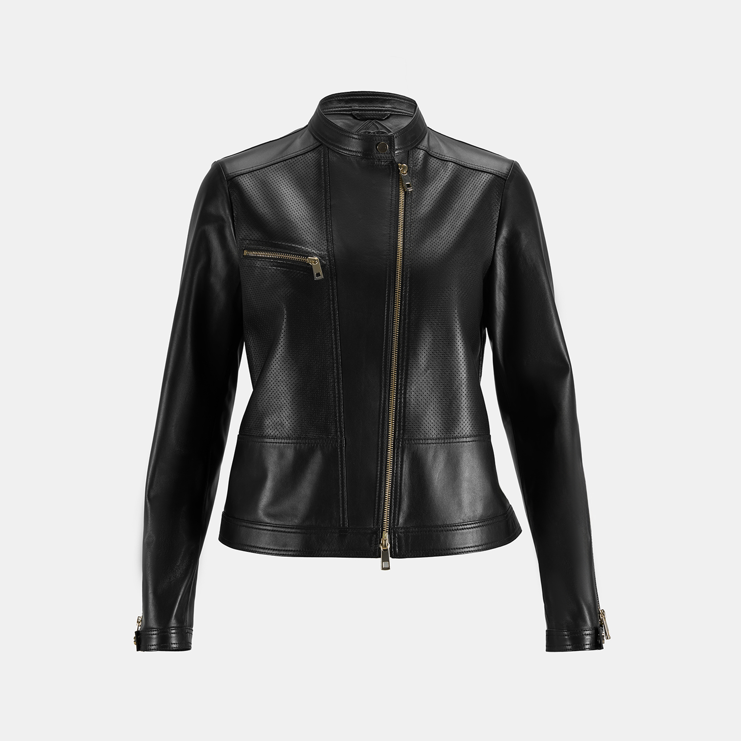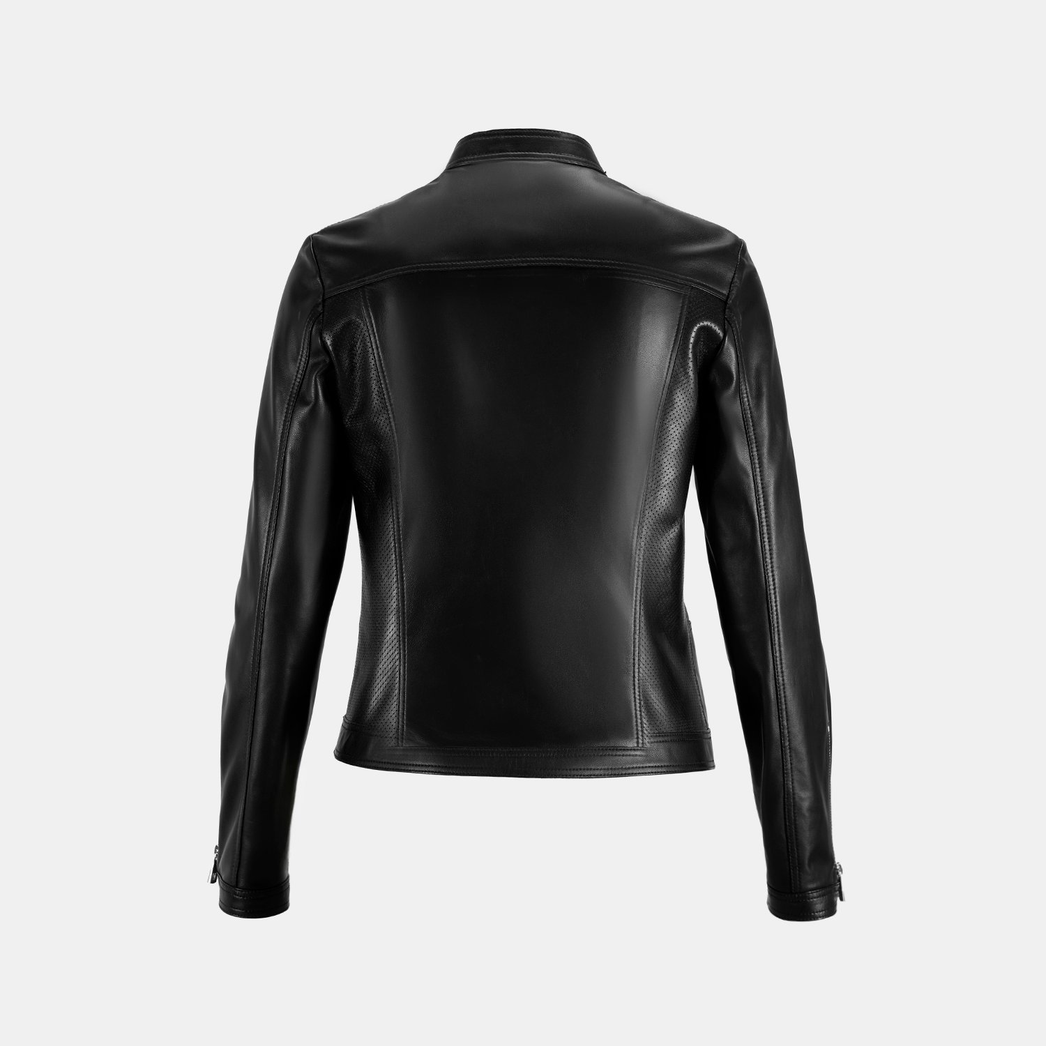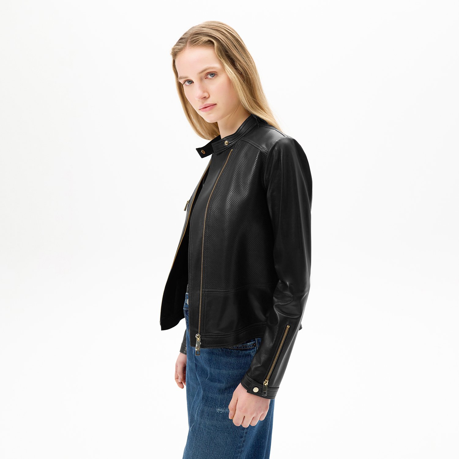 Kadın Siyah Perfore Detaylı Deri Ceket