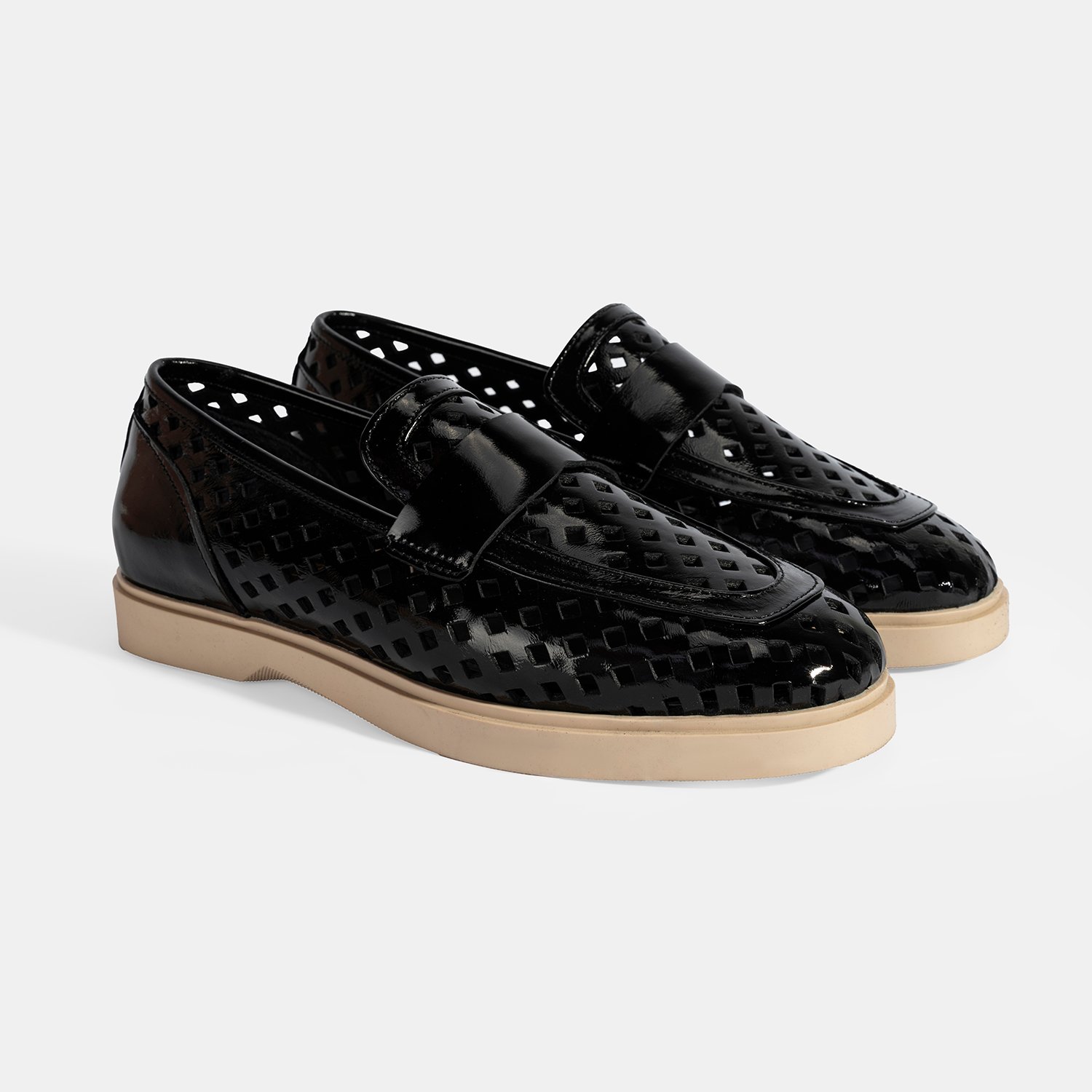 Kadın Bej Perforeli Rugan Loafer Kadın Siyah Perforeli Rugan Loafer
