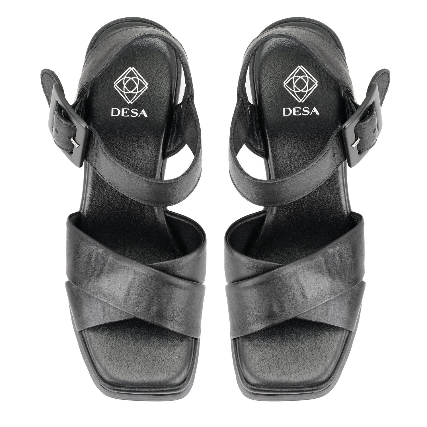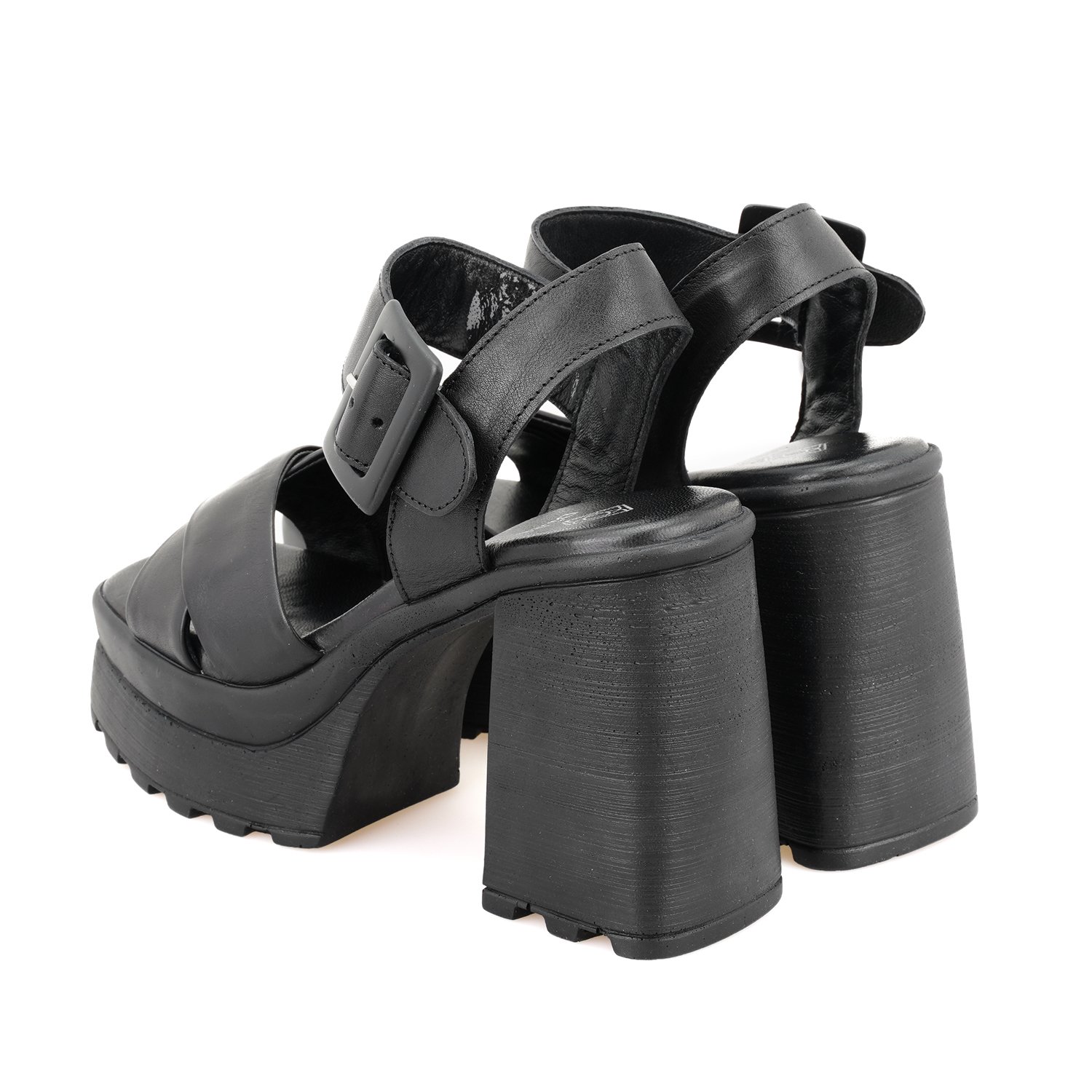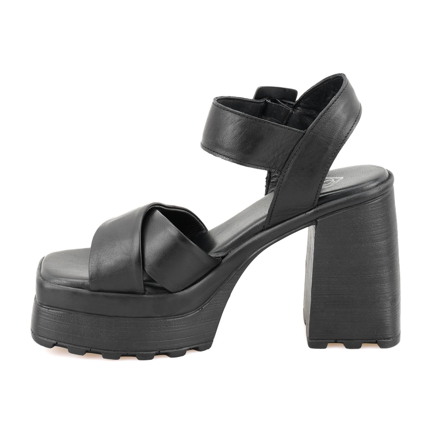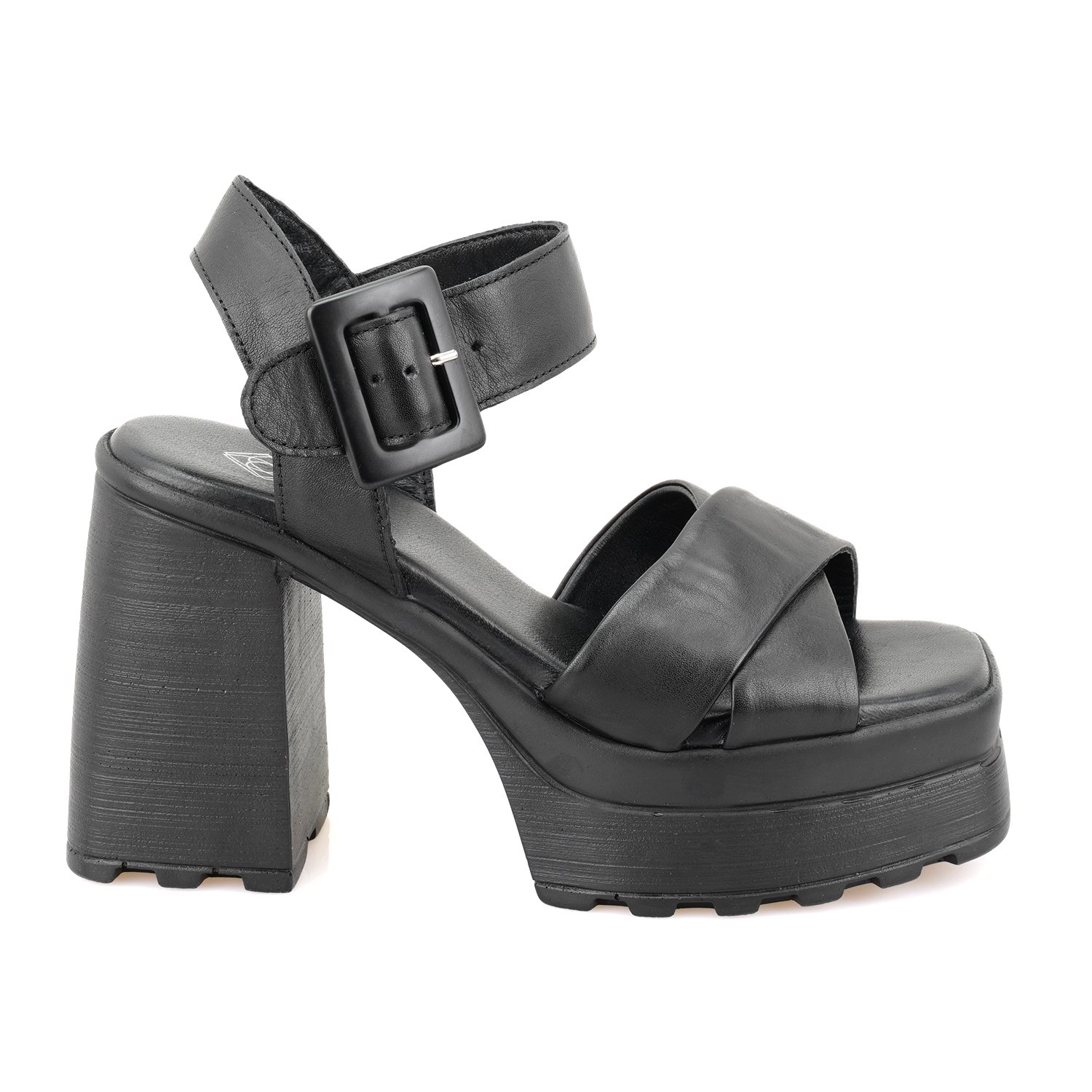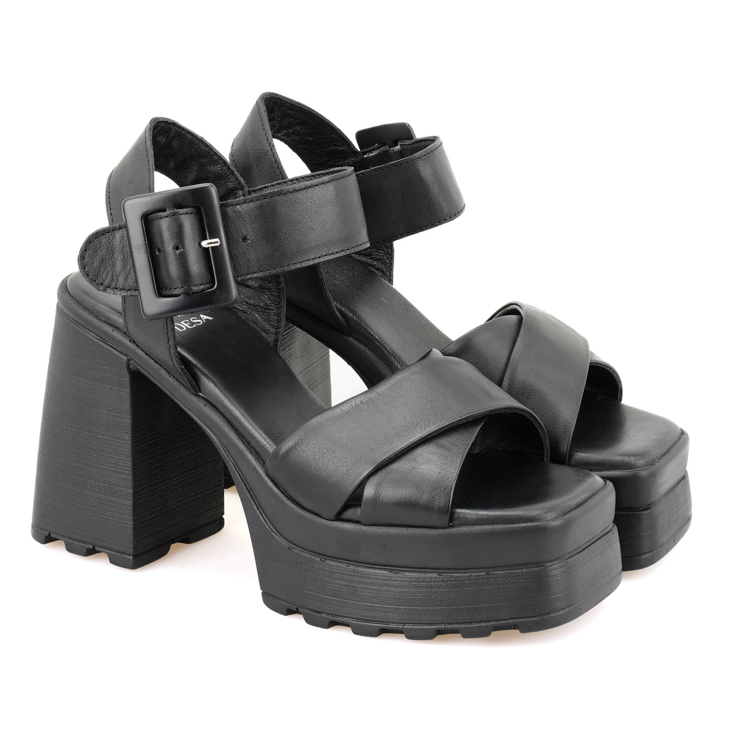 Kadın Siyah Platform Topuklu Deri Sandalet
