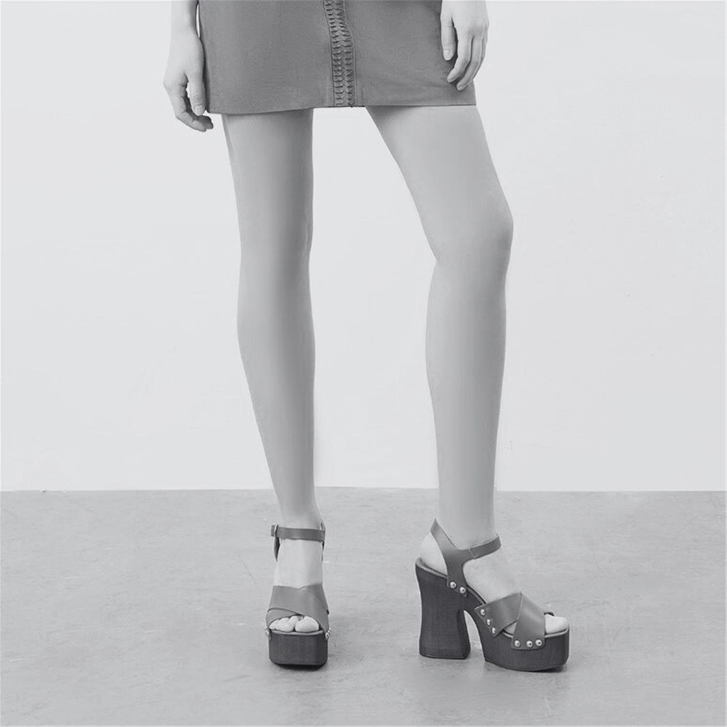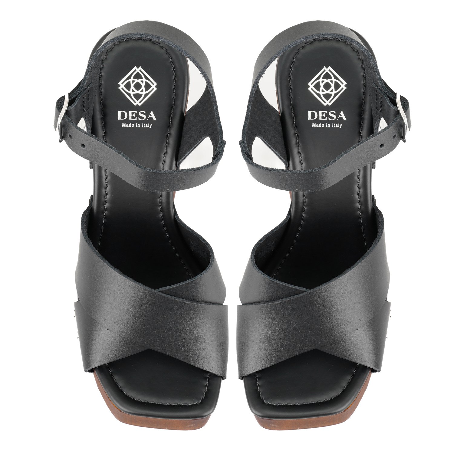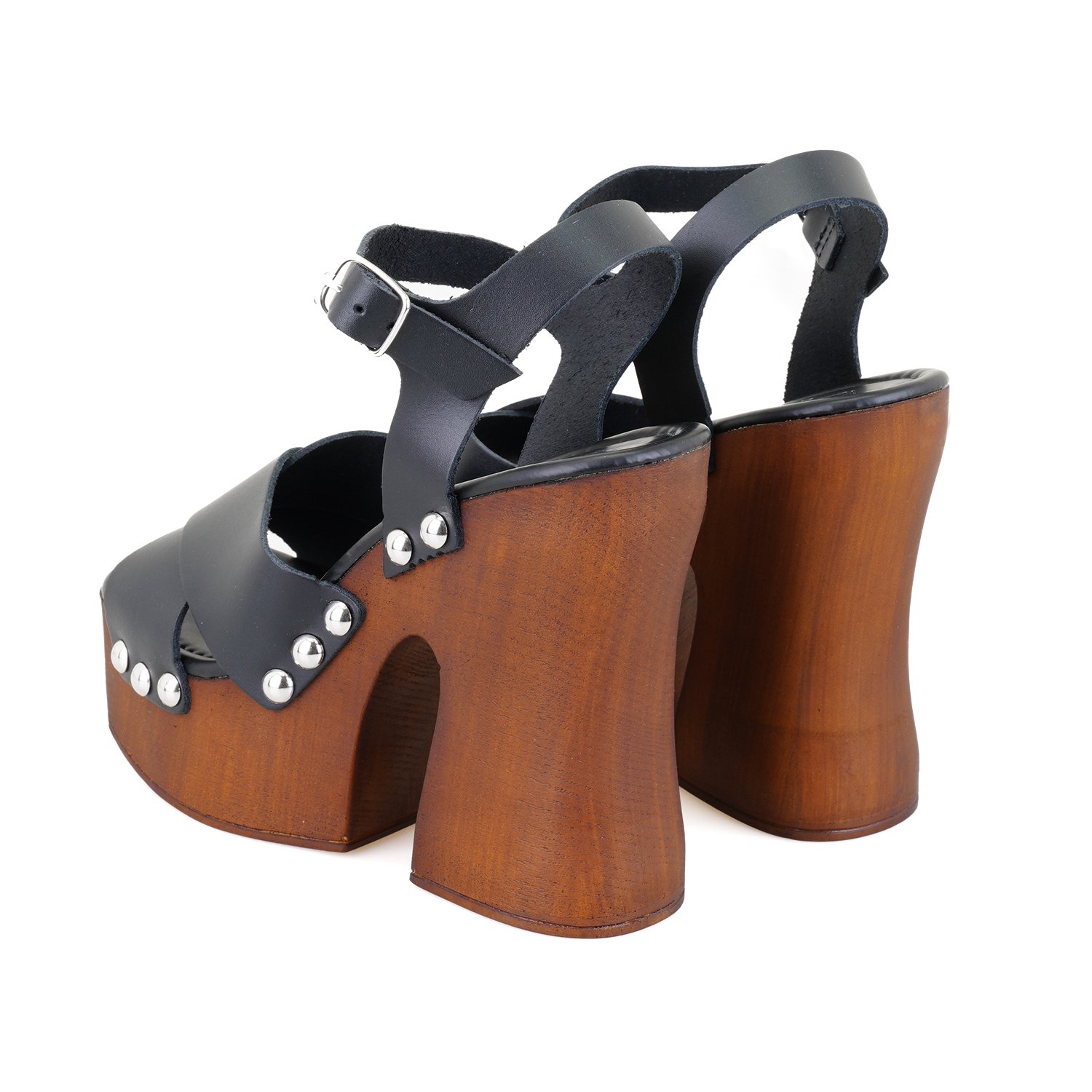 Kadın Siyah Platform Topuklu Deri Sandalet