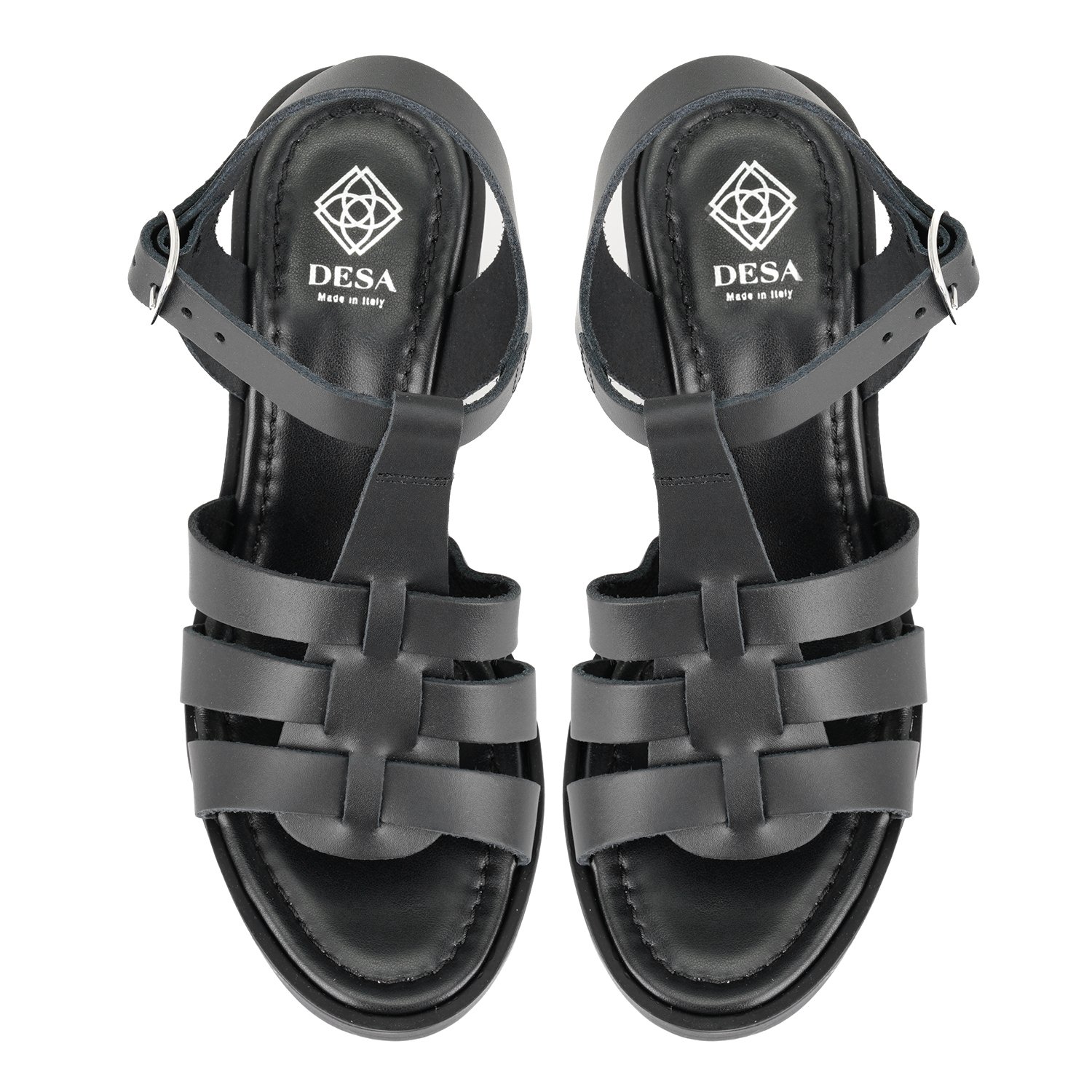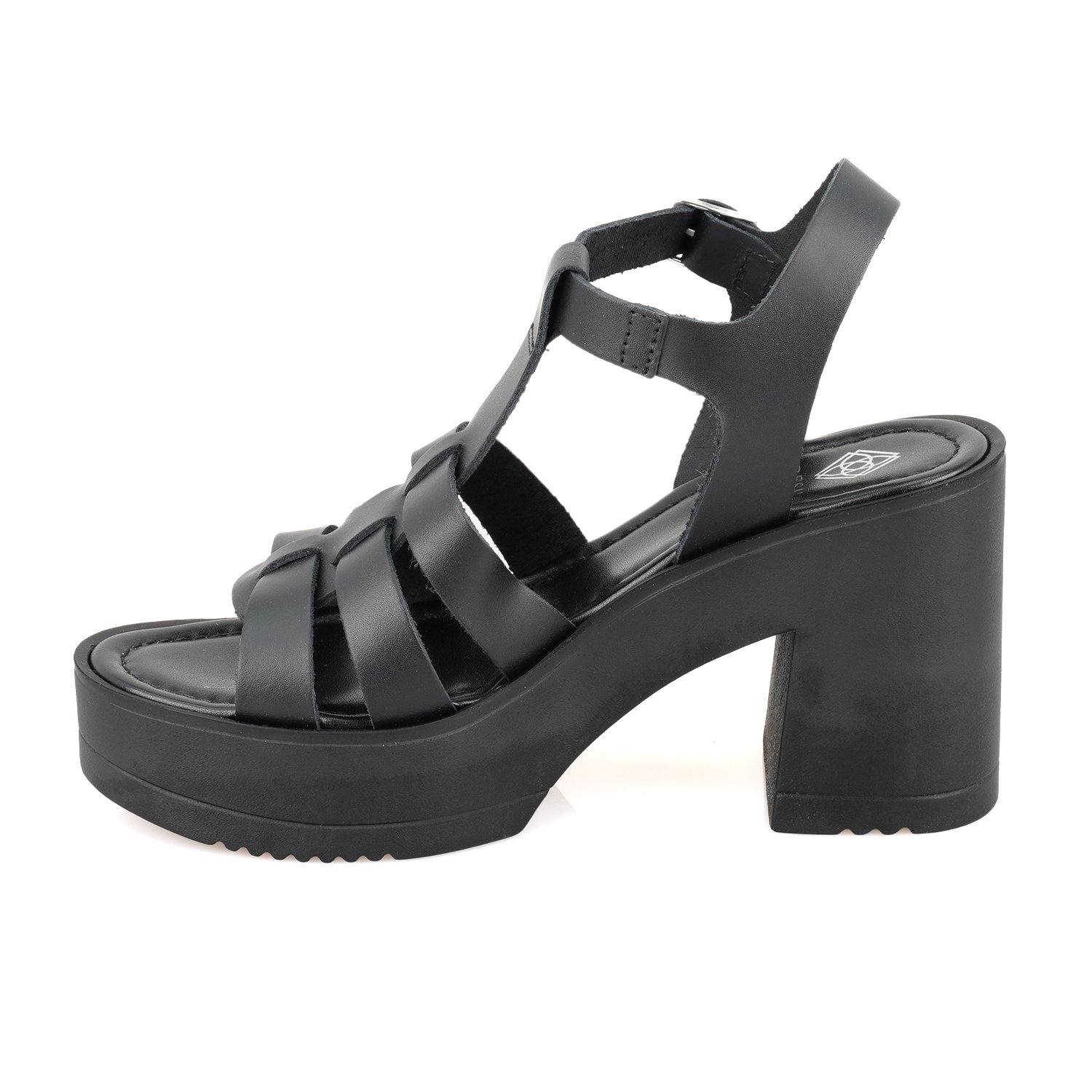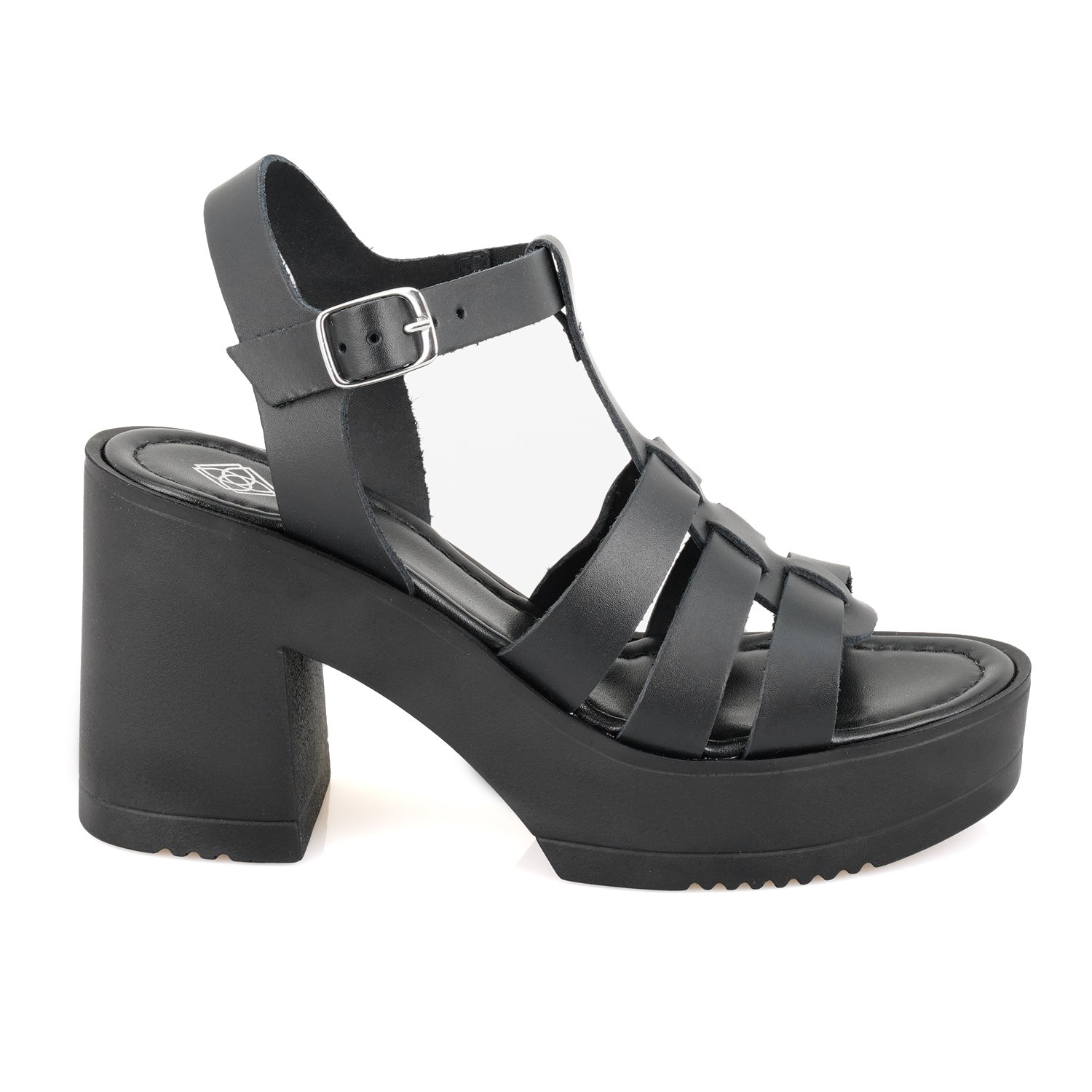 Kadın Siyah Platform Topuklu Deri Sandalet