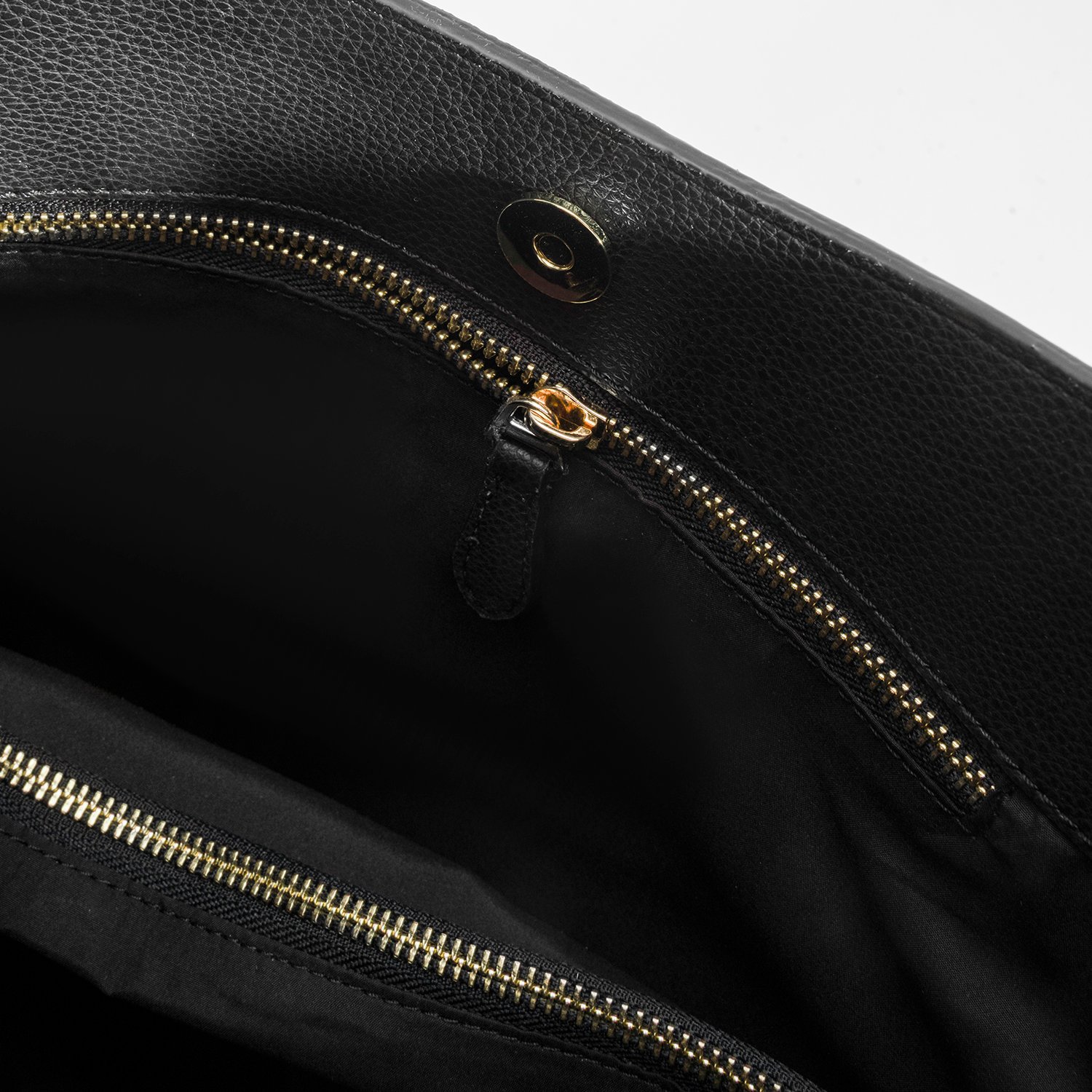 İç kısmında üç adet bölme yer alır; orta bölme fermuarlı olarak kullanılabilir.