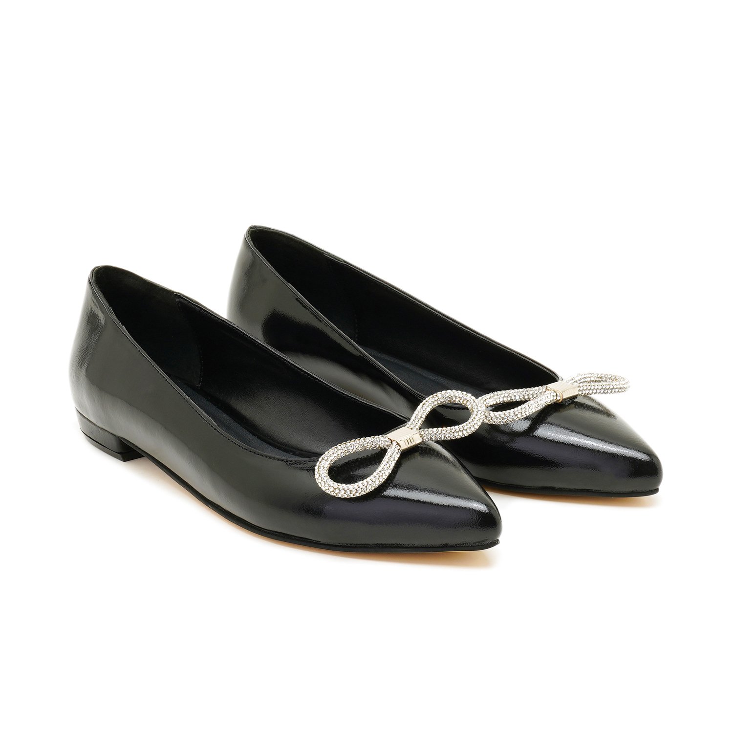 %100 rugan deri, deri iç tabanlı, pu astarlı, taşlı fiyonk aksesuar detaylı, neolit tabanlı, kadın babet.