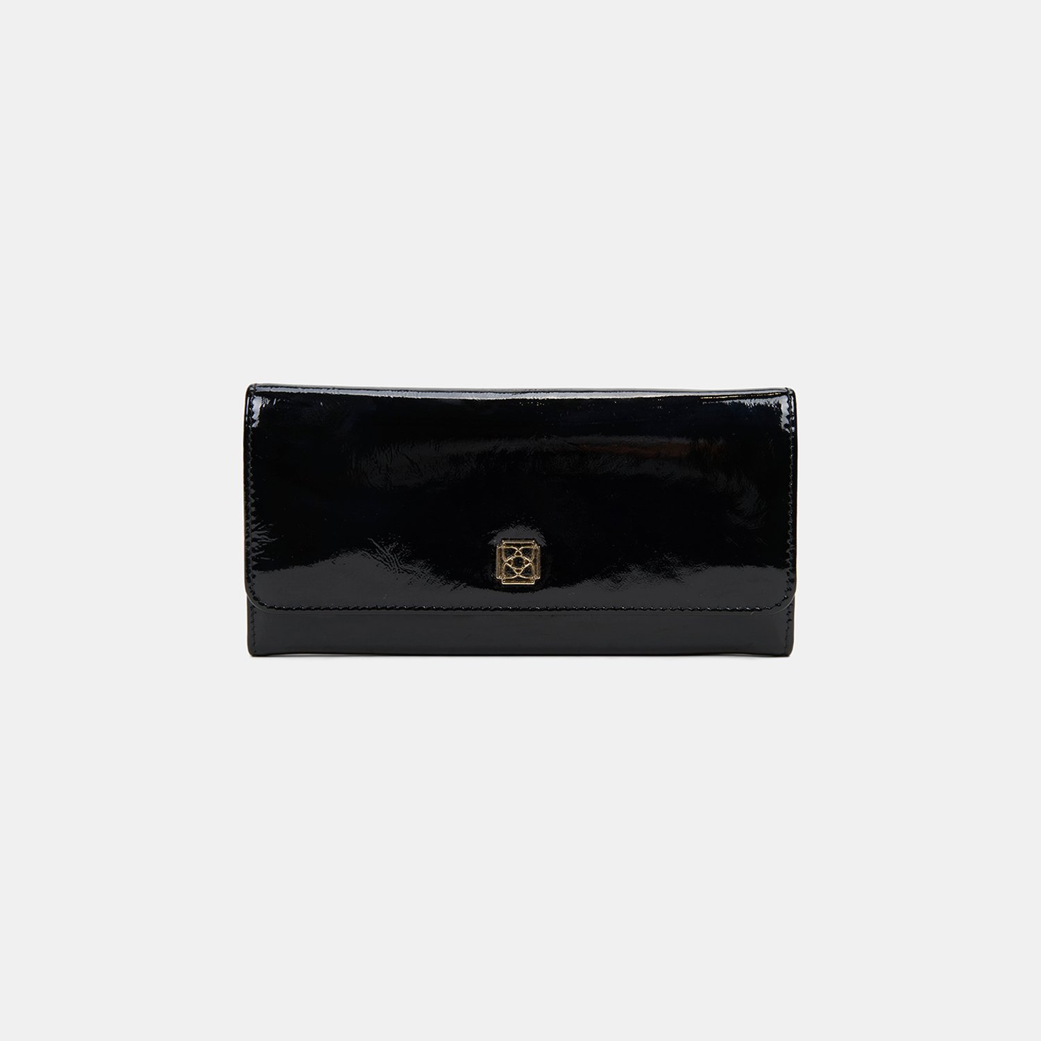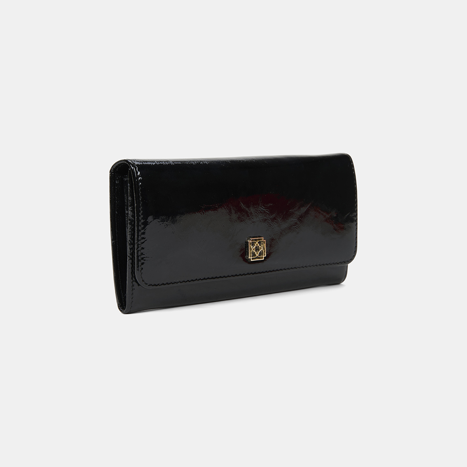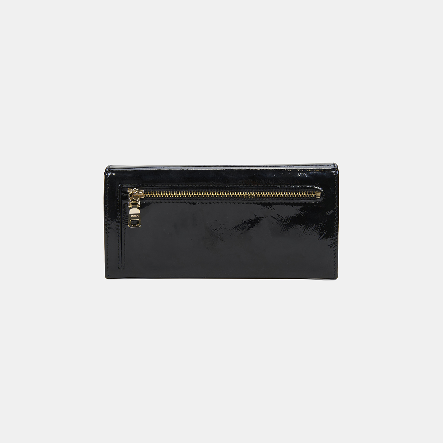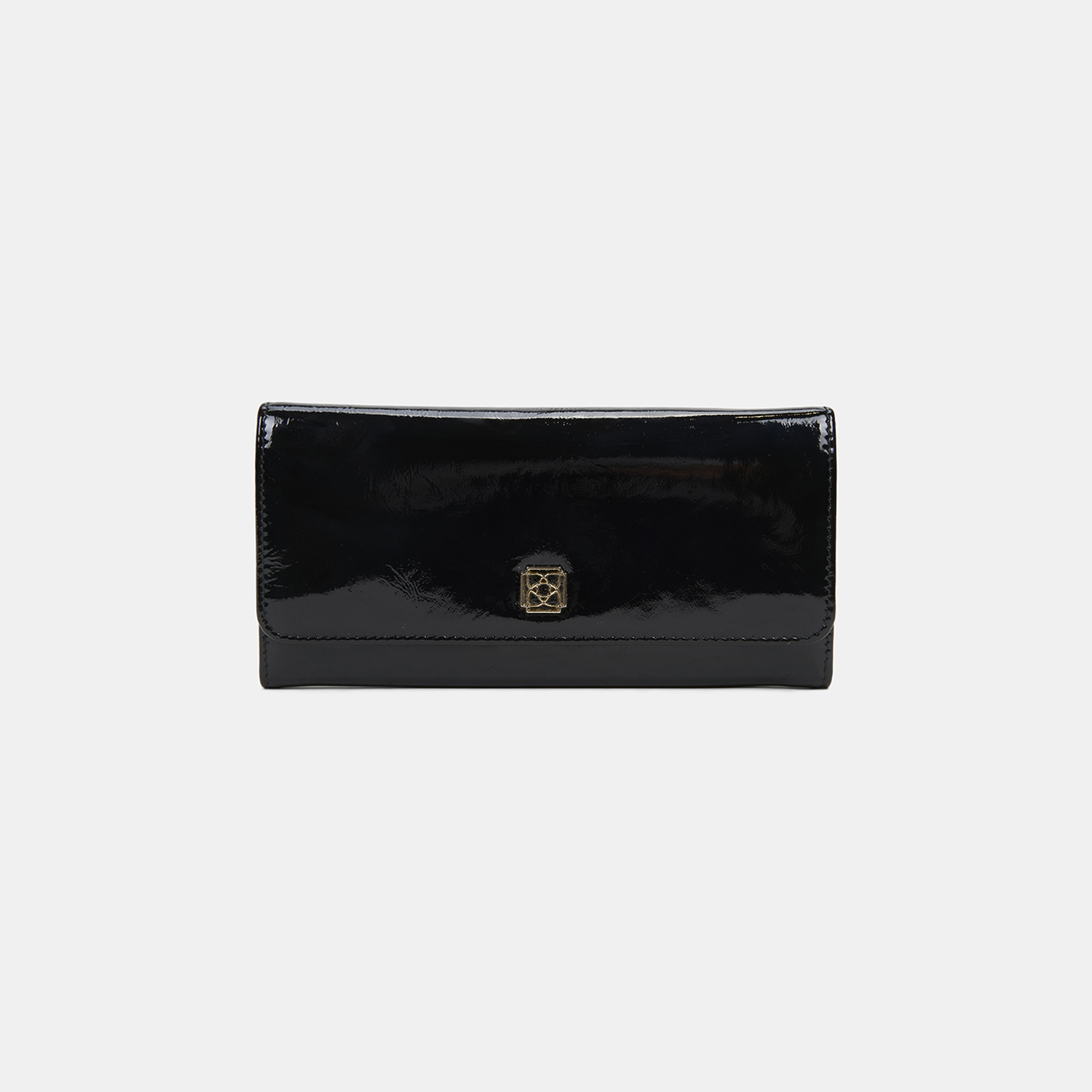 Kadın Siyah Rugan Deri Kapaklı Cüzdan