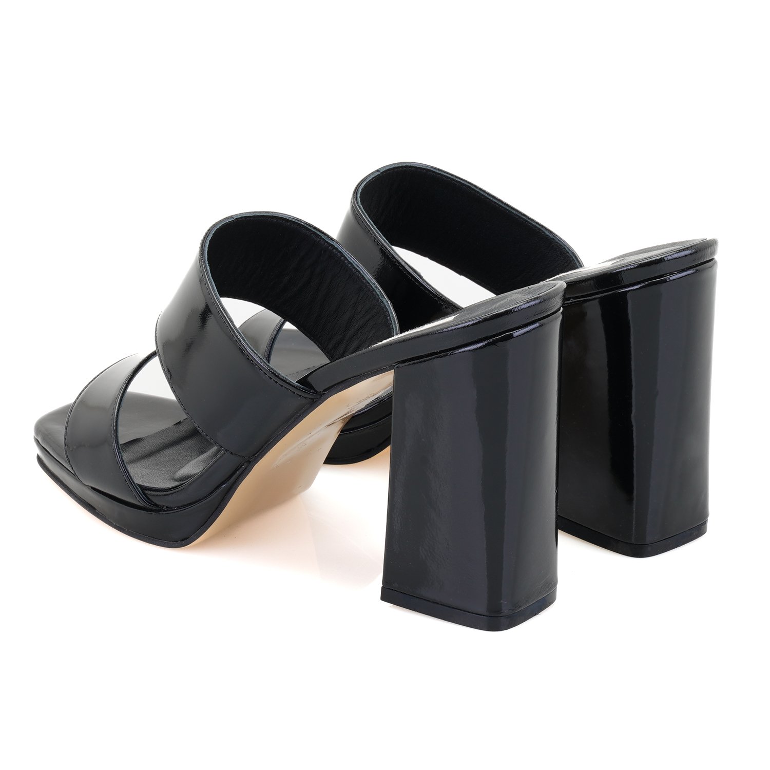 Rugan deri,kendi renginde deri astarlı ve deri iç tabanlı,neolit tabanlı monochrome platformlu kadın terlik..