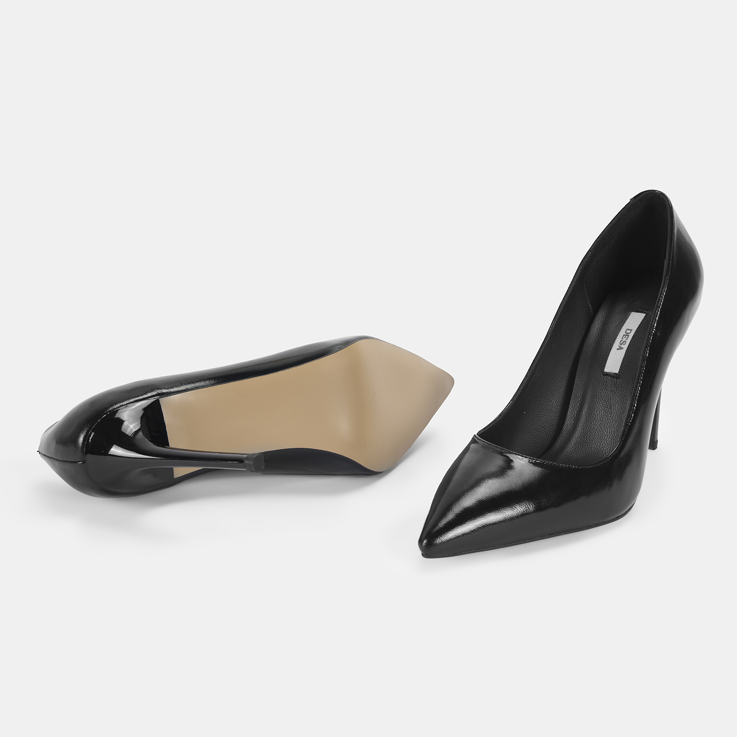 Kadın Siyah Rugan Topuklu Klasik Ayakkabı