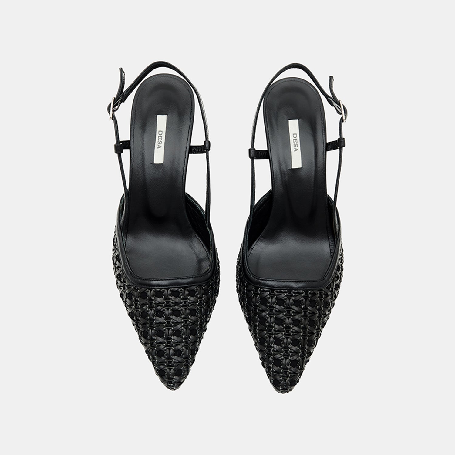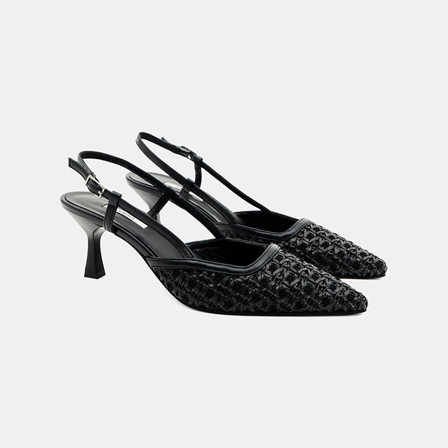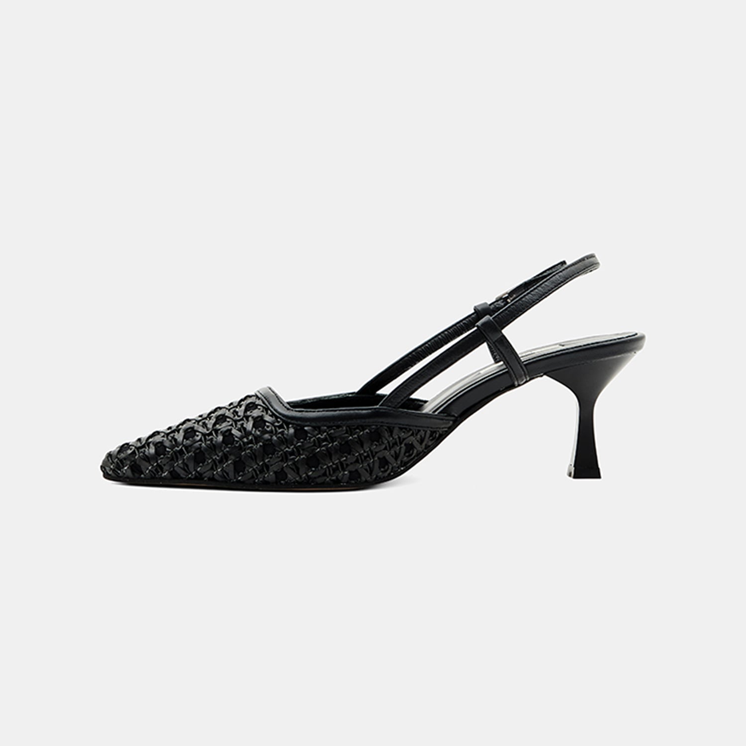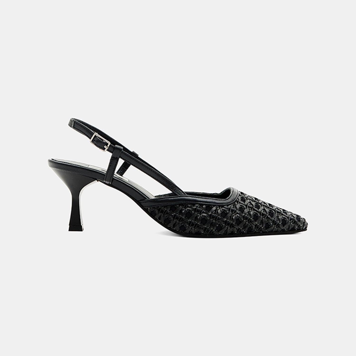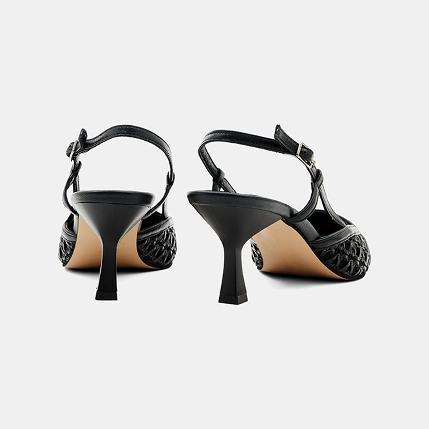Kadın Siyah Sivri Burunlu Slingback Deri Topuklu Ayakkabı