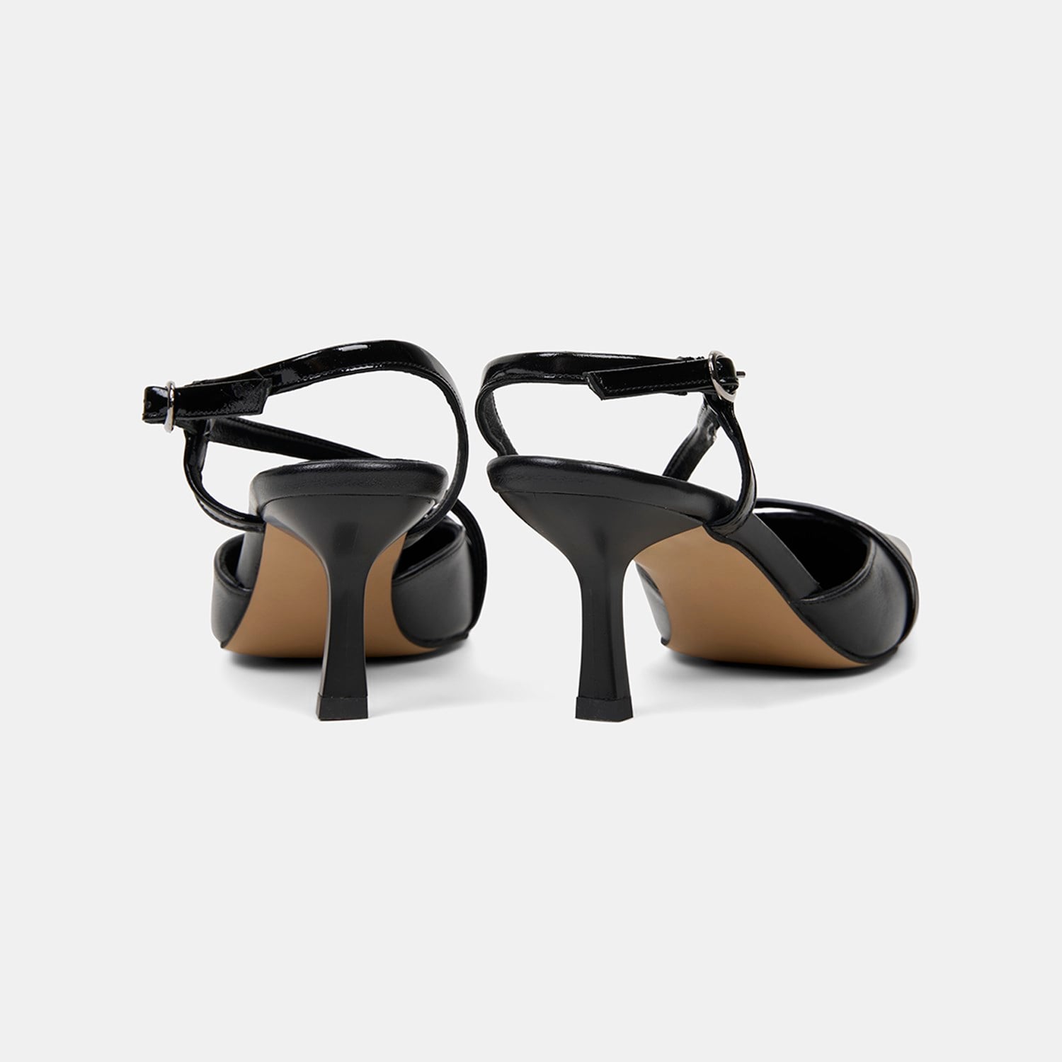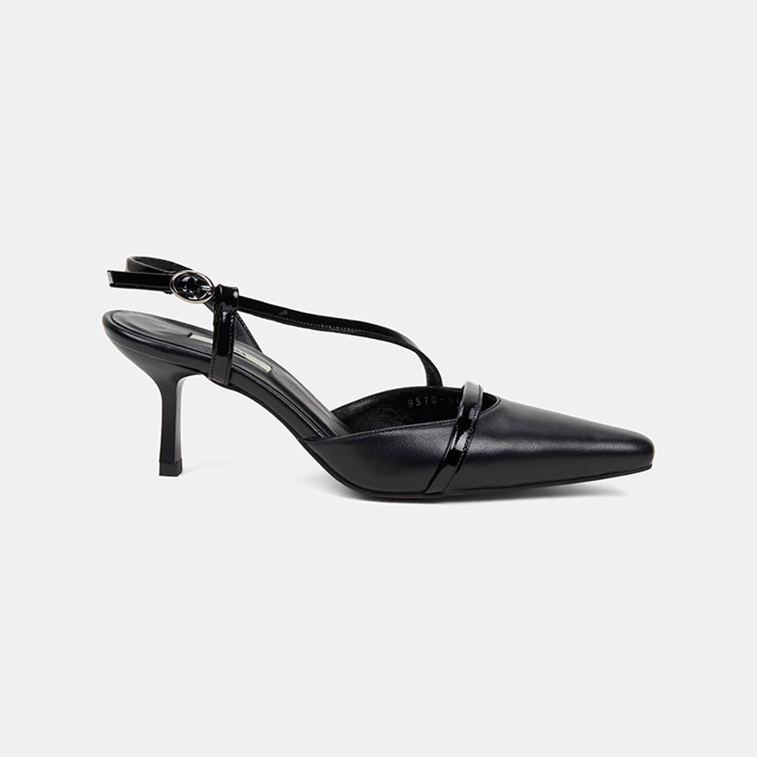 Kadın Siyah Slingback Sivri Burunlu İnce Topuklu Deri Stiletto