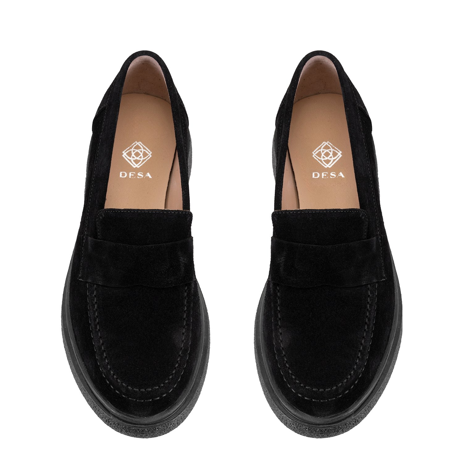%100 süet deri, deri astarlı, deri iç tabanlı, kauçuk tabanlı, kadın loafer.