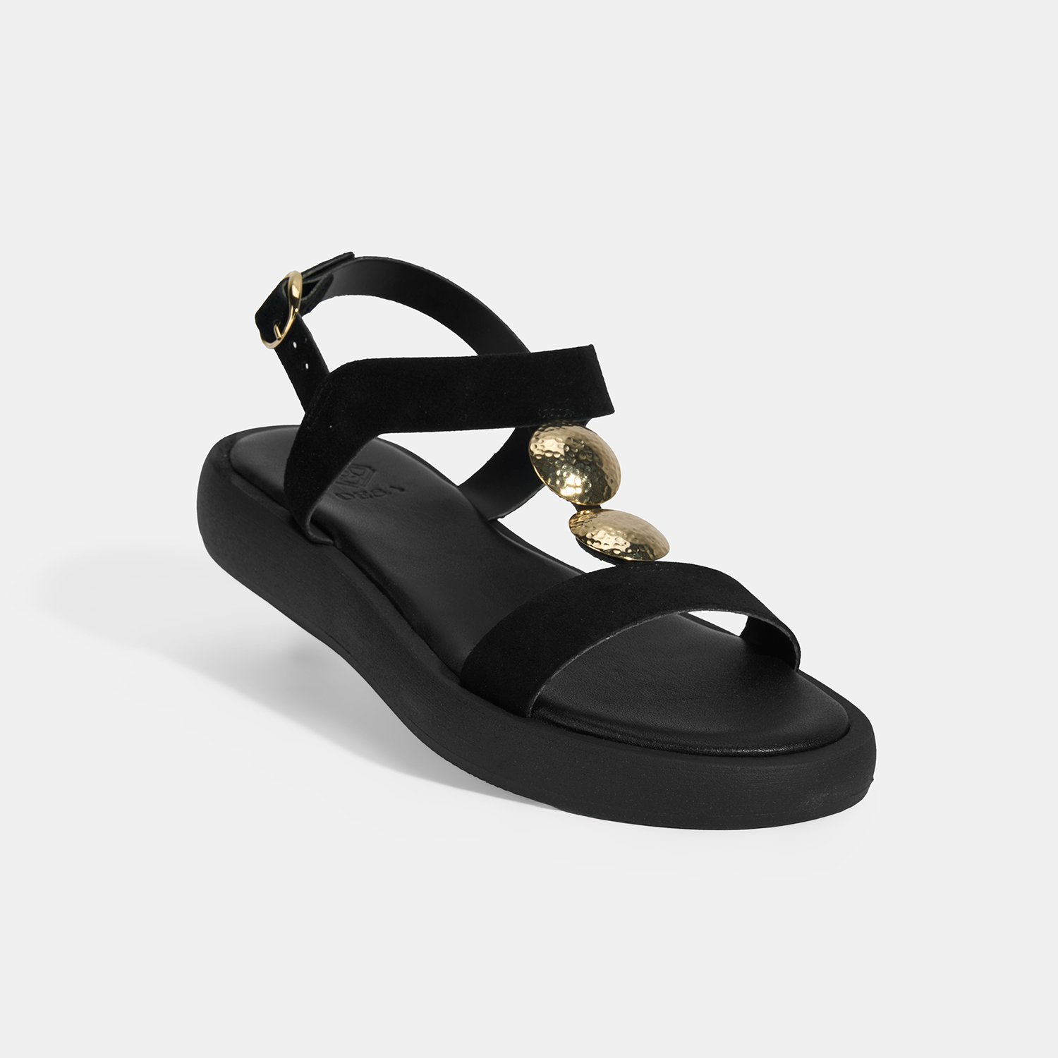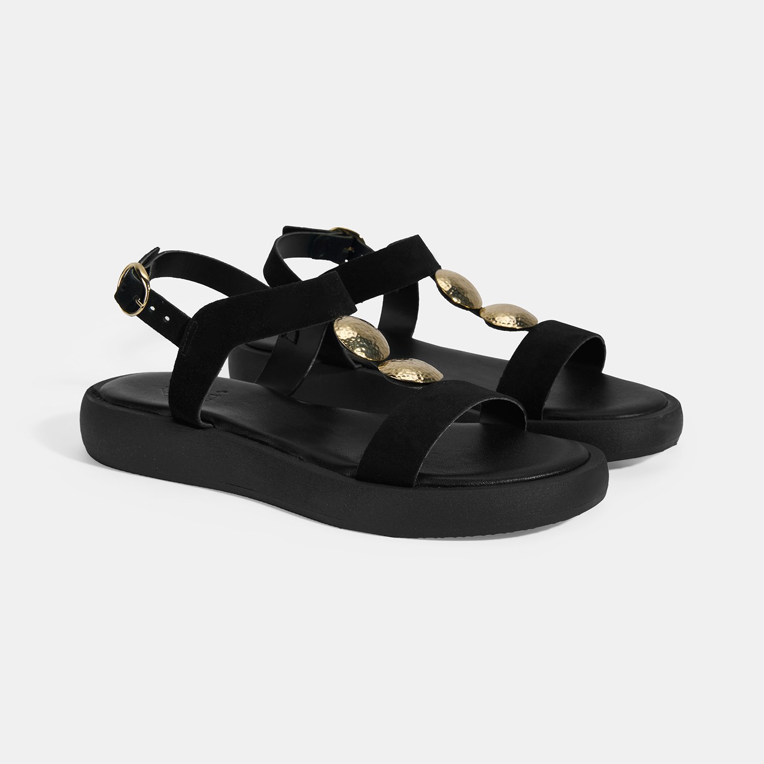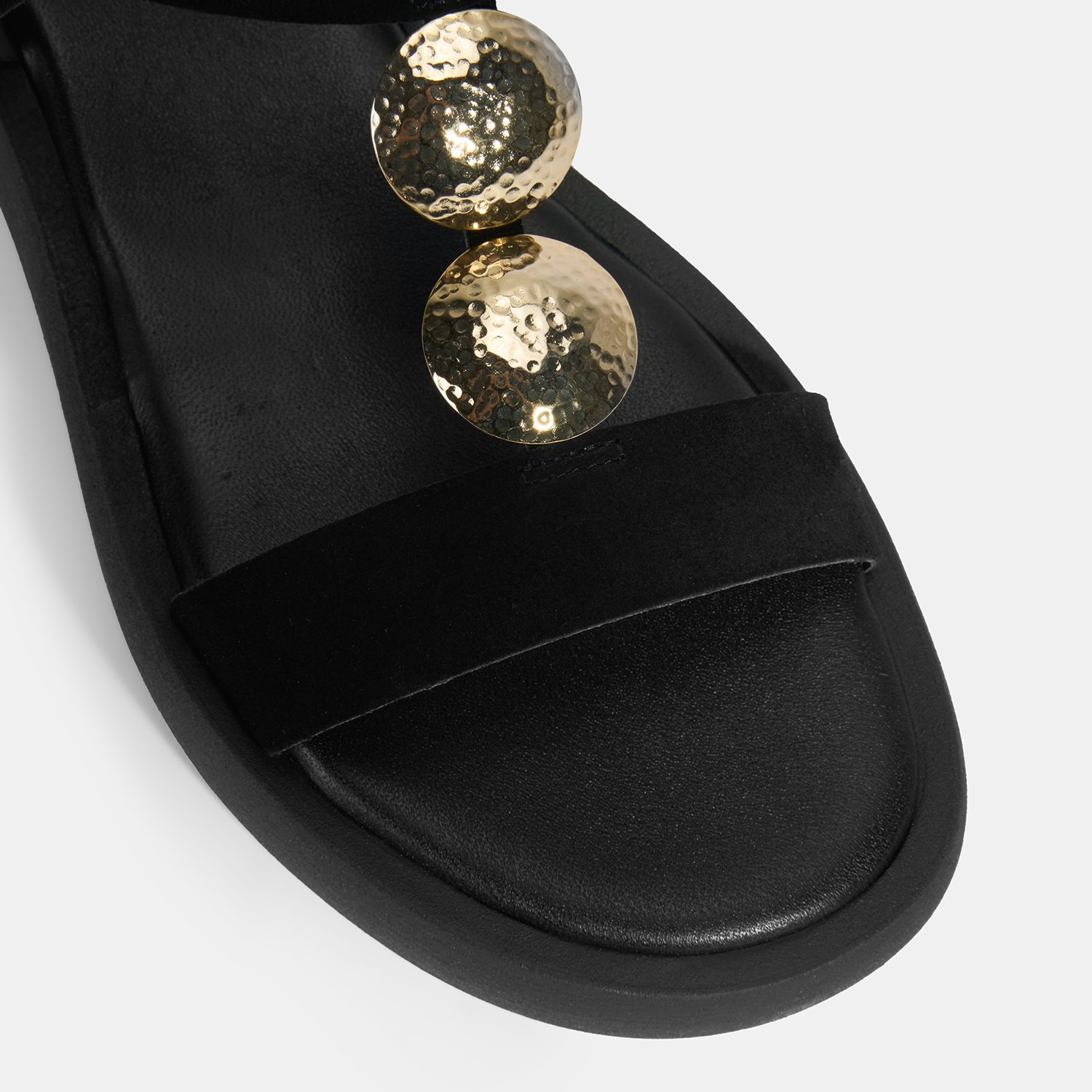 Kadın Siyah Süet Gold Aksesuarlı Sandalet