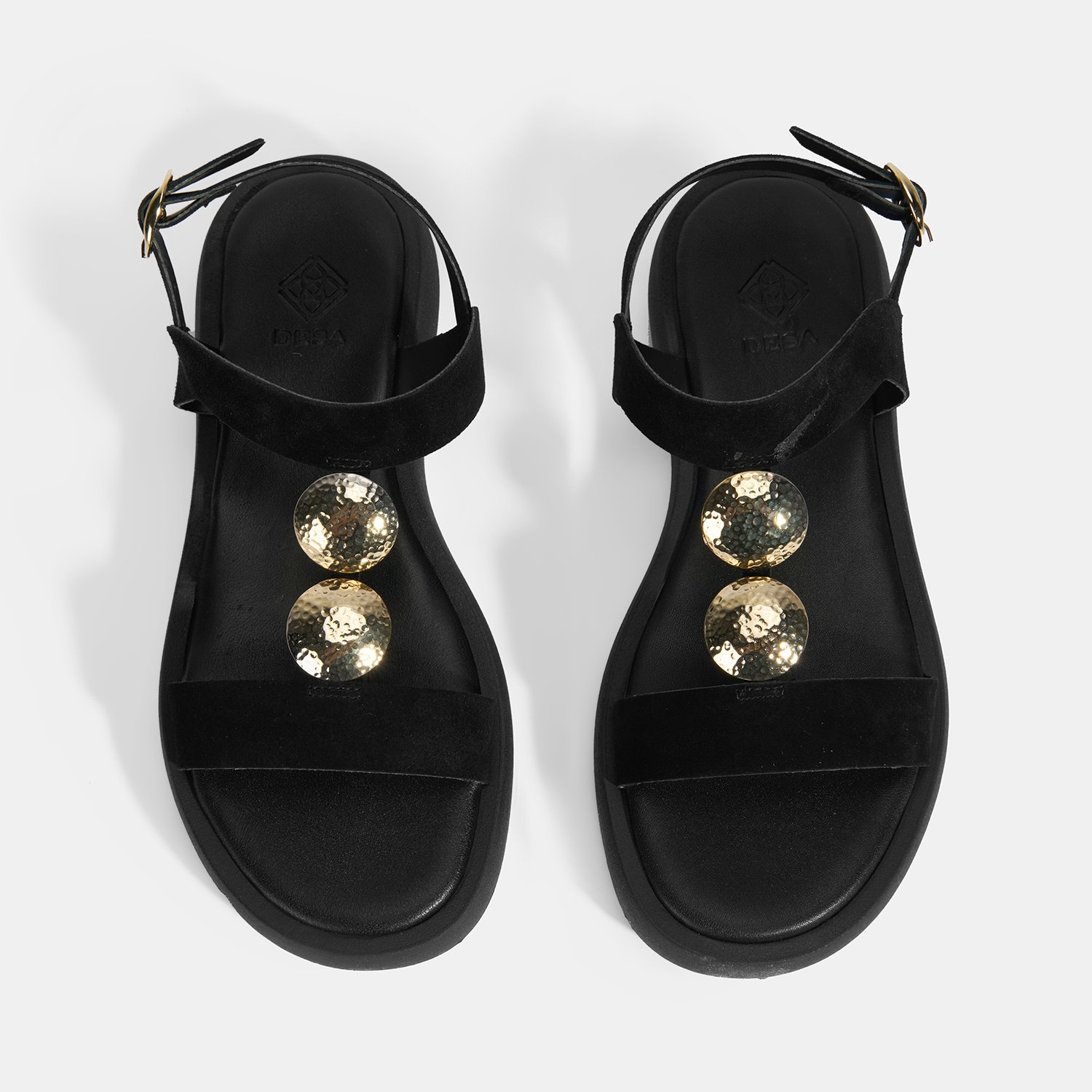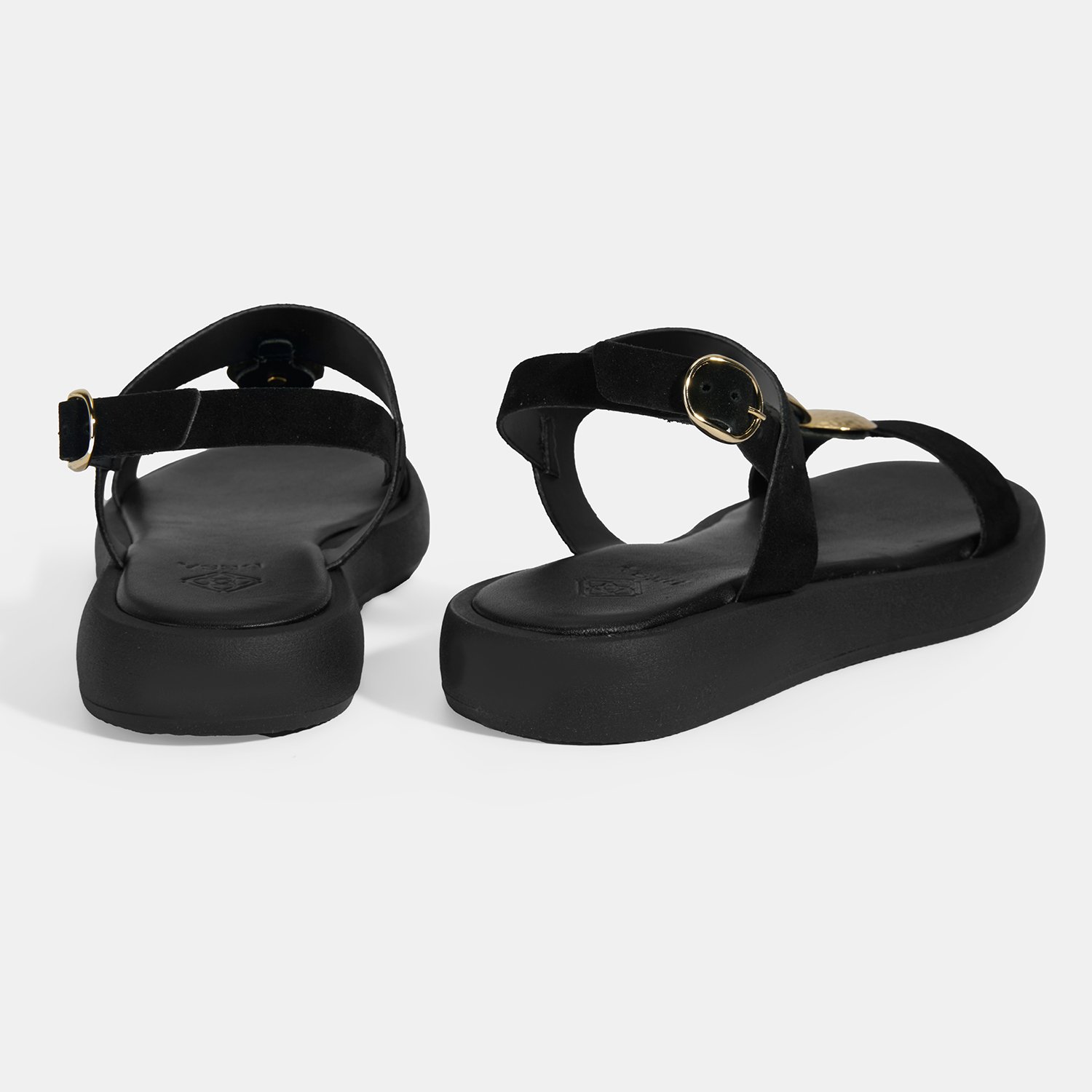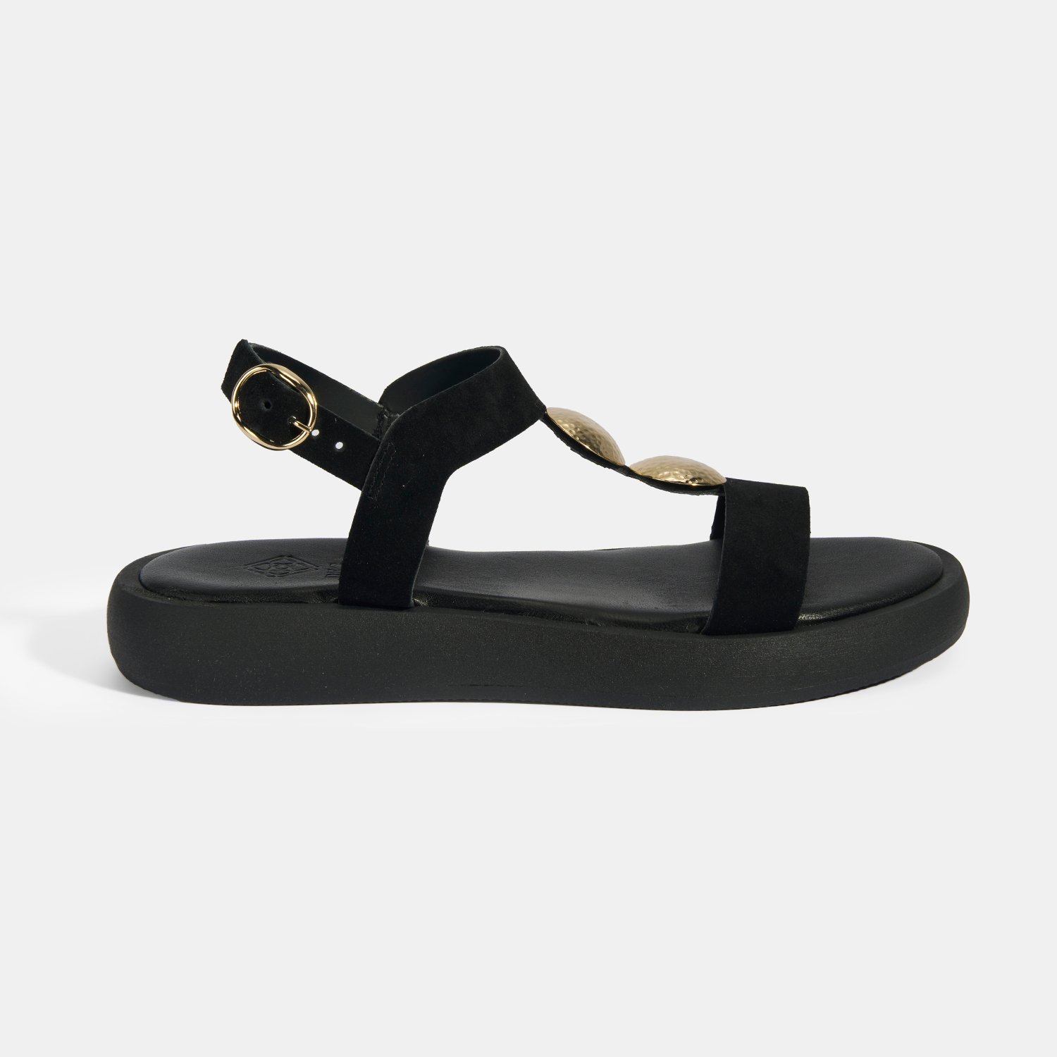 Kadın Siyah Süet Gold Aksesuarlı Sandalet