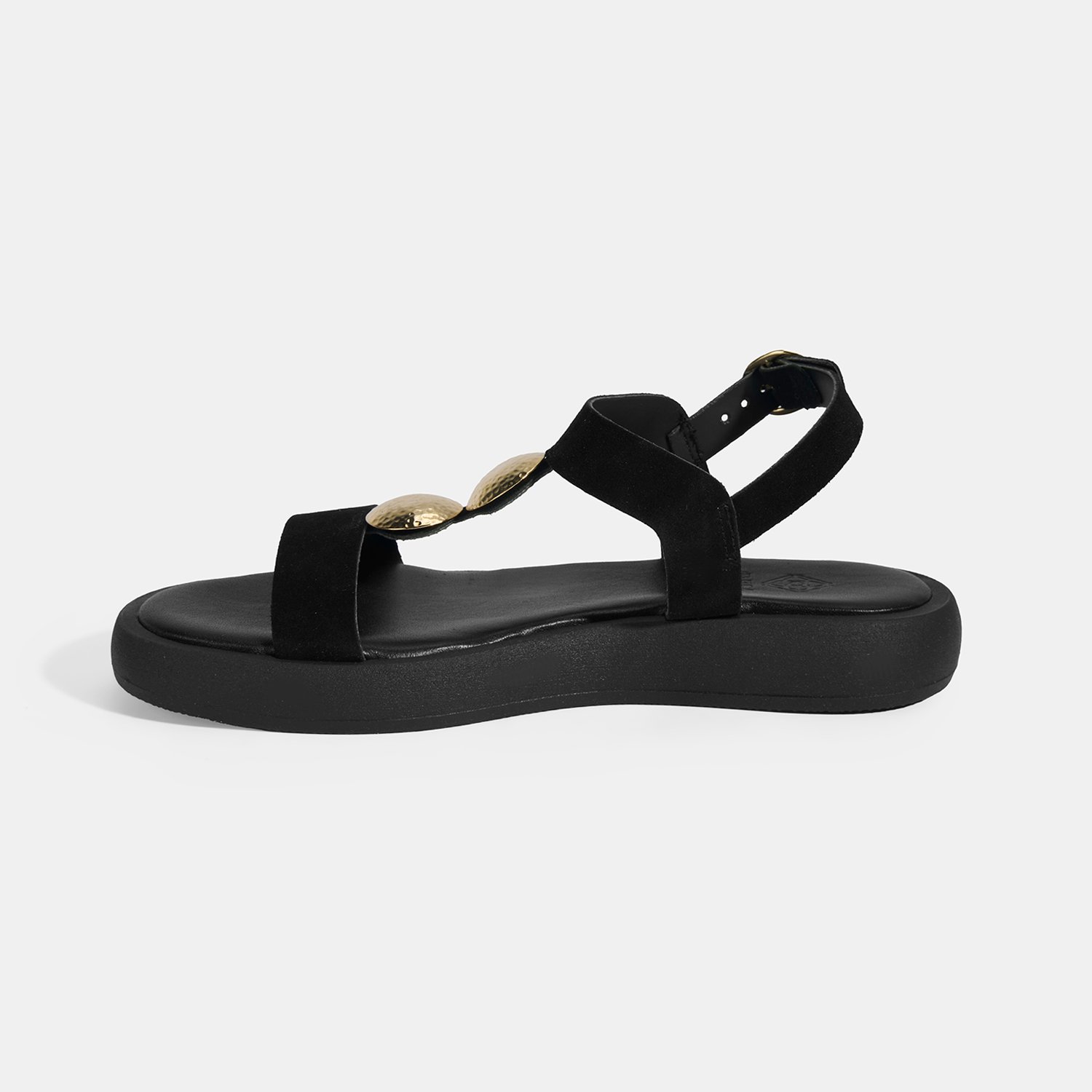 %100 süet deri, deri iç tabanlı, deri astarlı, metal aksesuar detaylı, termo tabanlı, ayarlanabilir metal tokalı, kadın sandalet.