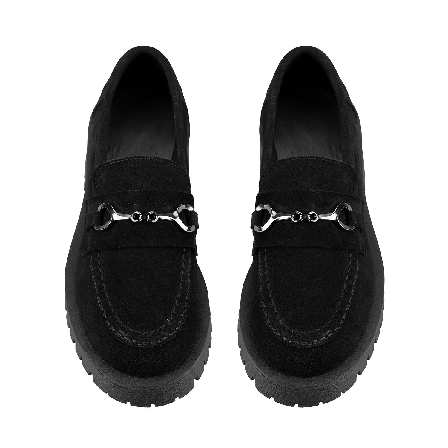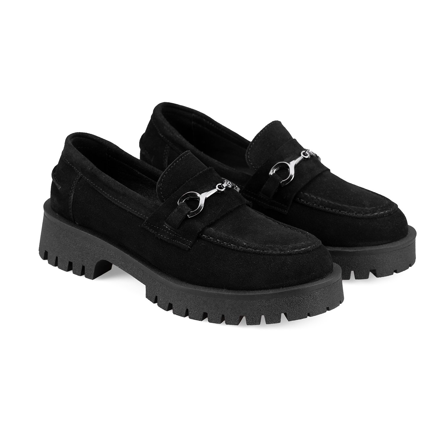 %100 süet deri, deri iç tabanlı, deri astarlı, termo tabanlı, metal aksesuar detaylı, kadın loafer.
