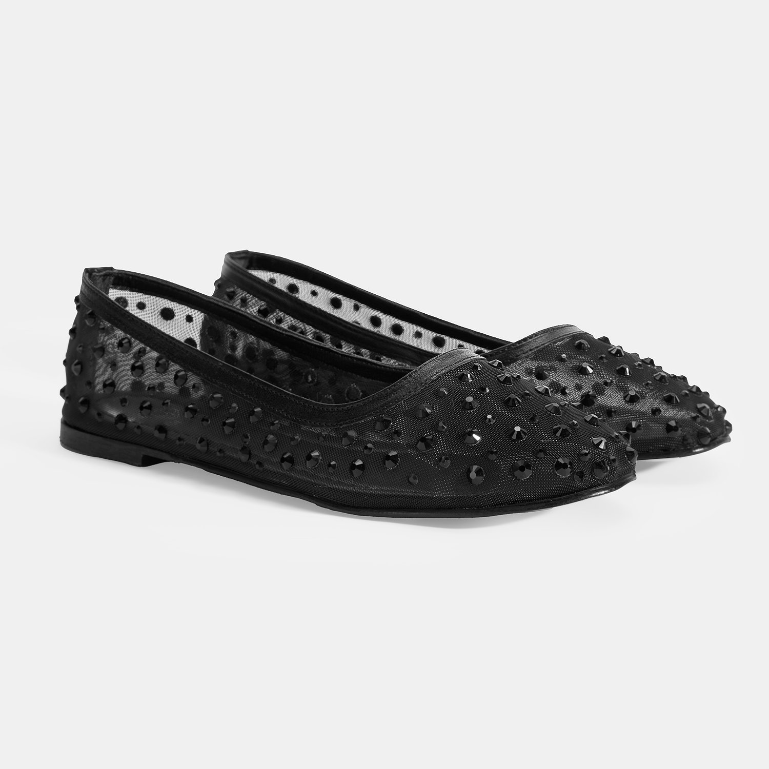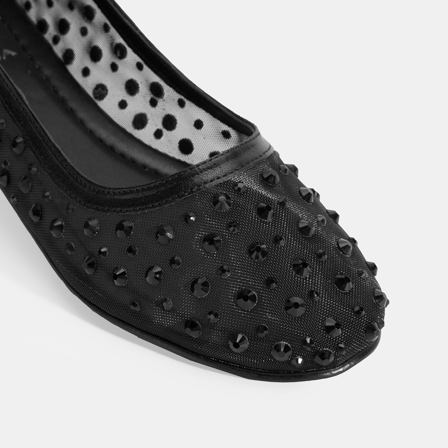 deri iç tabanlı, astarsız, parlak taş detaylı, tpu tabanlı, kadın babet.