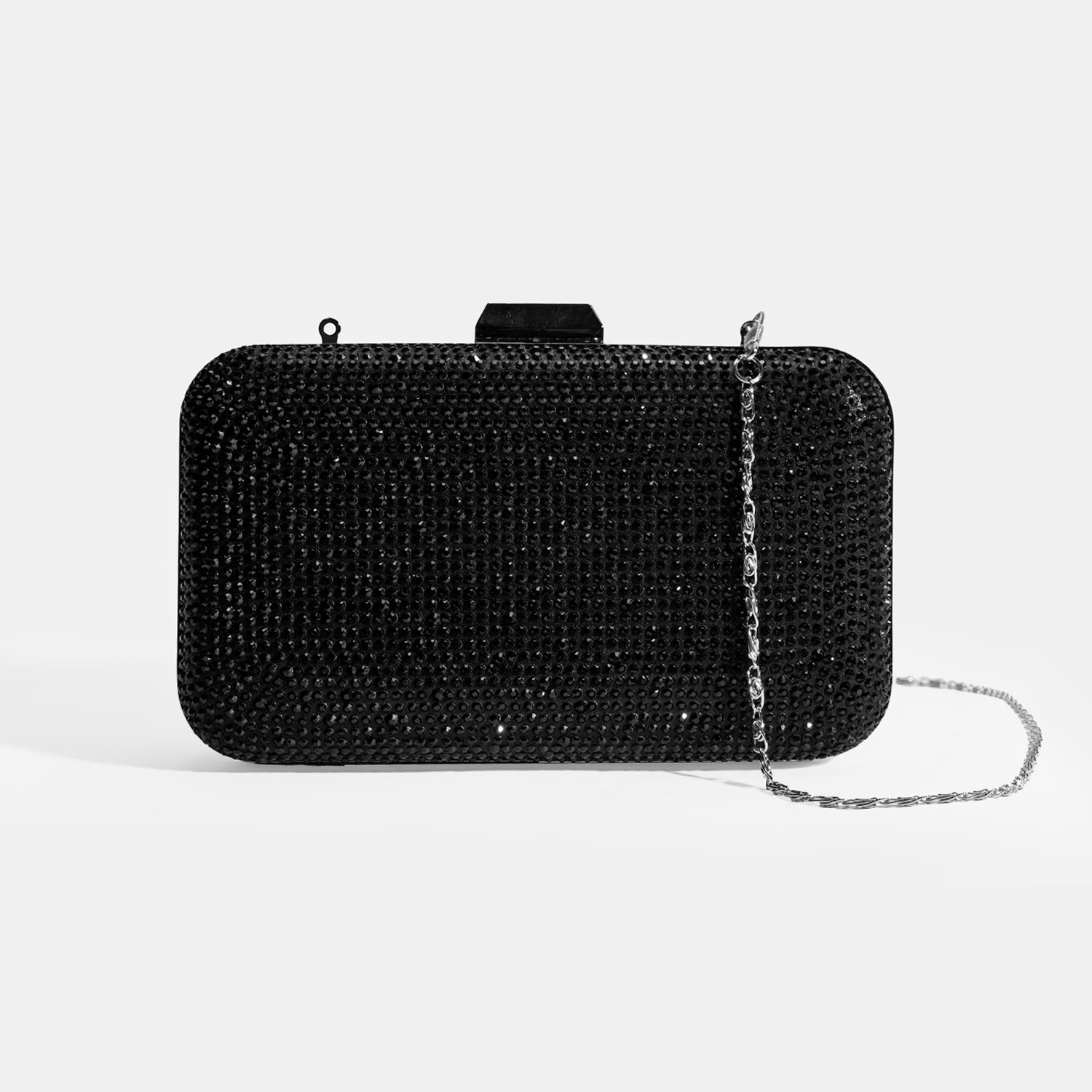 Kadın Siyah Taş Detaylı Portföy Gece Çantası
