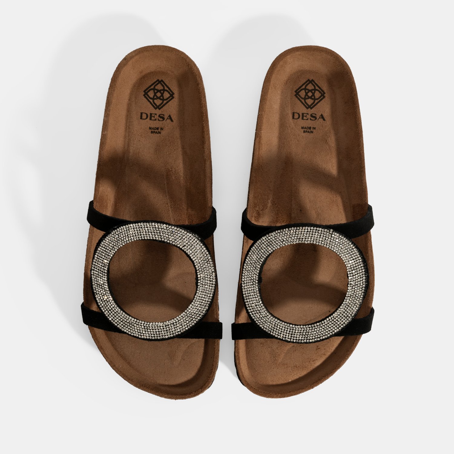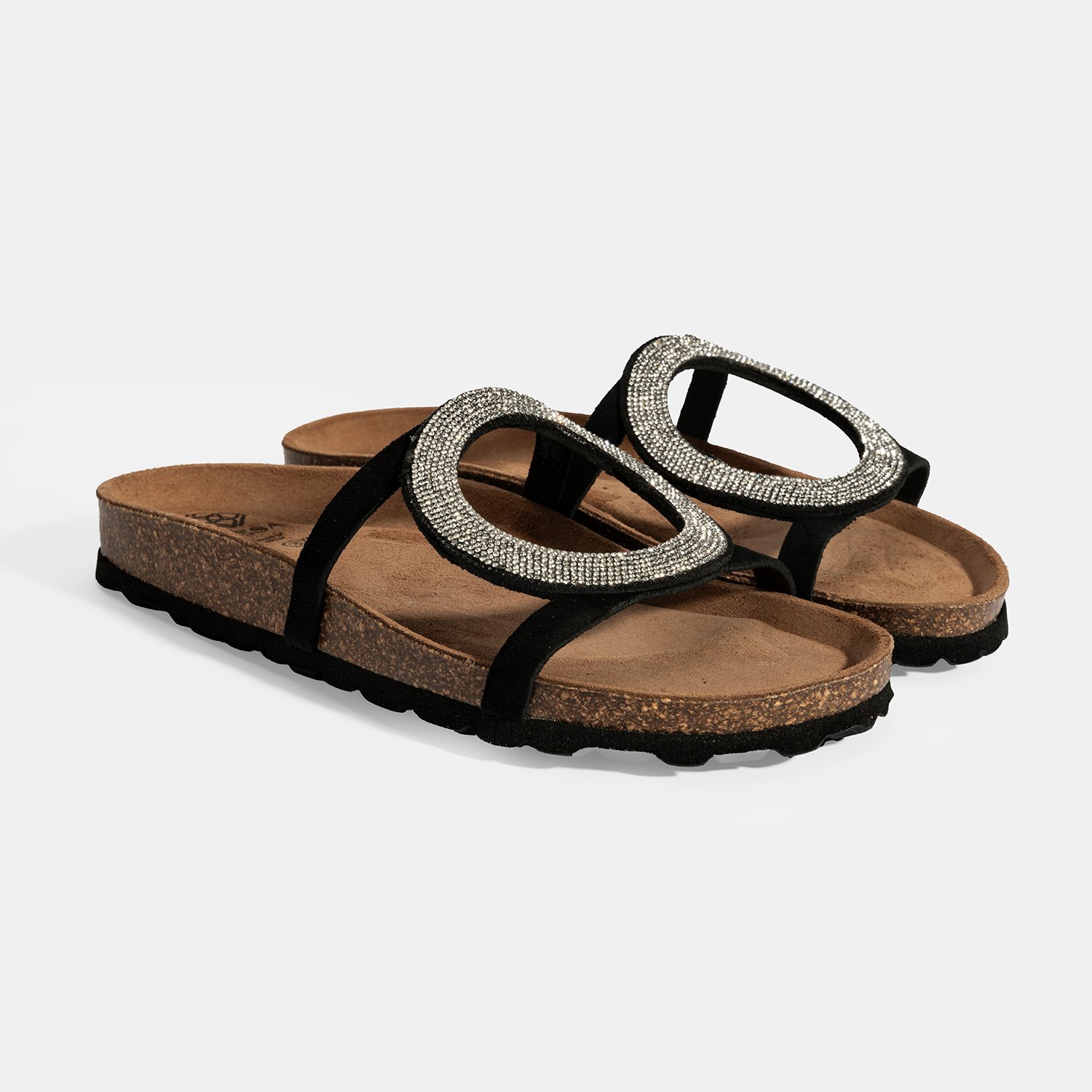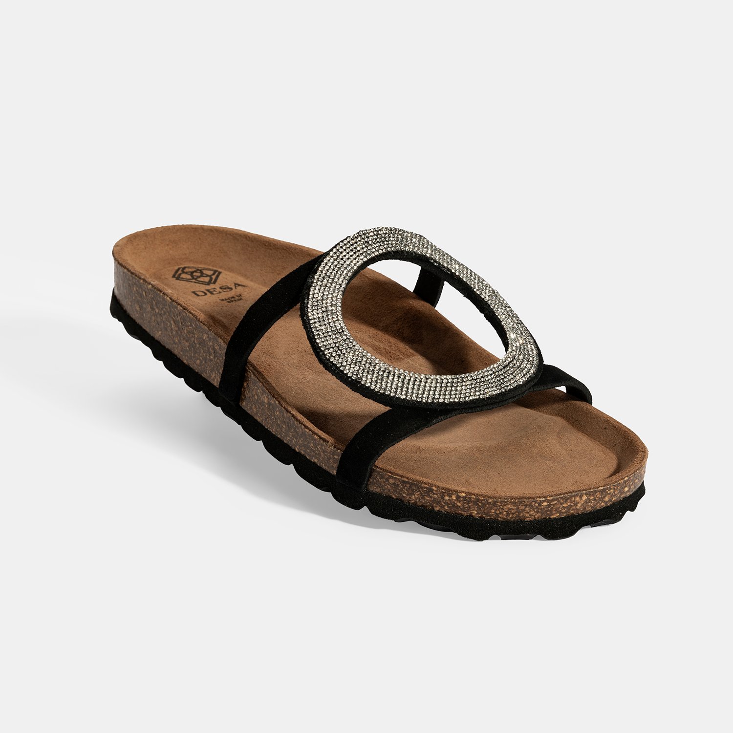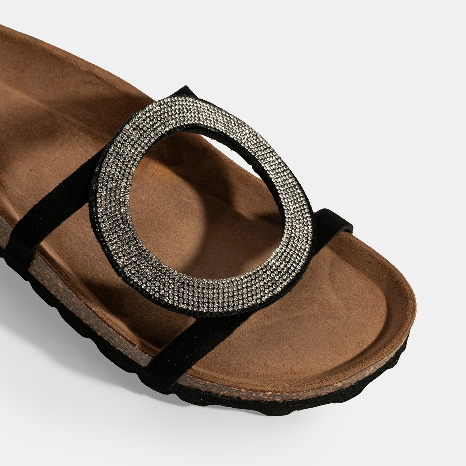 %100 süet deri, deri iç tabanlı, deri astarlı, pu tabanlı, taş detaylı kadın terlik.