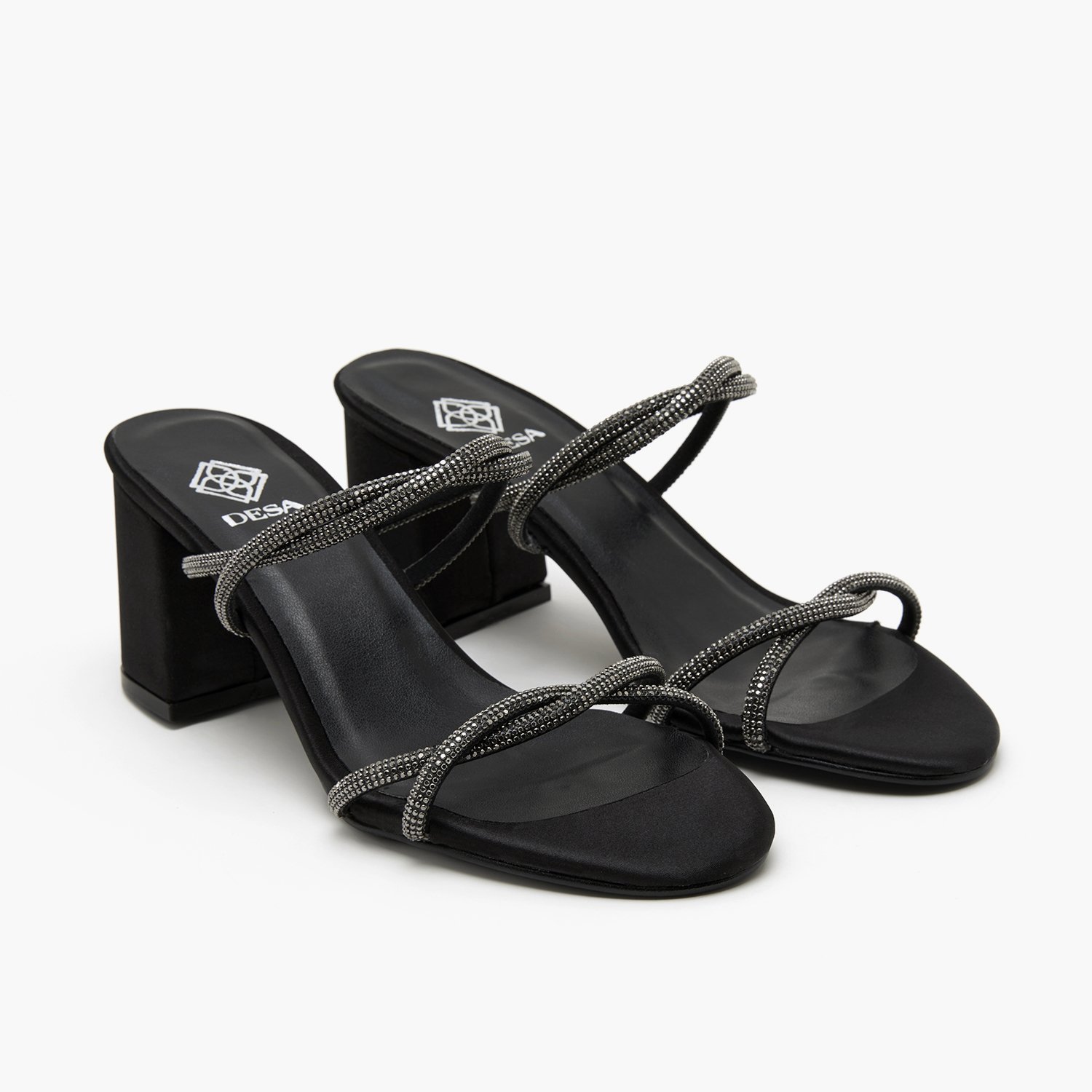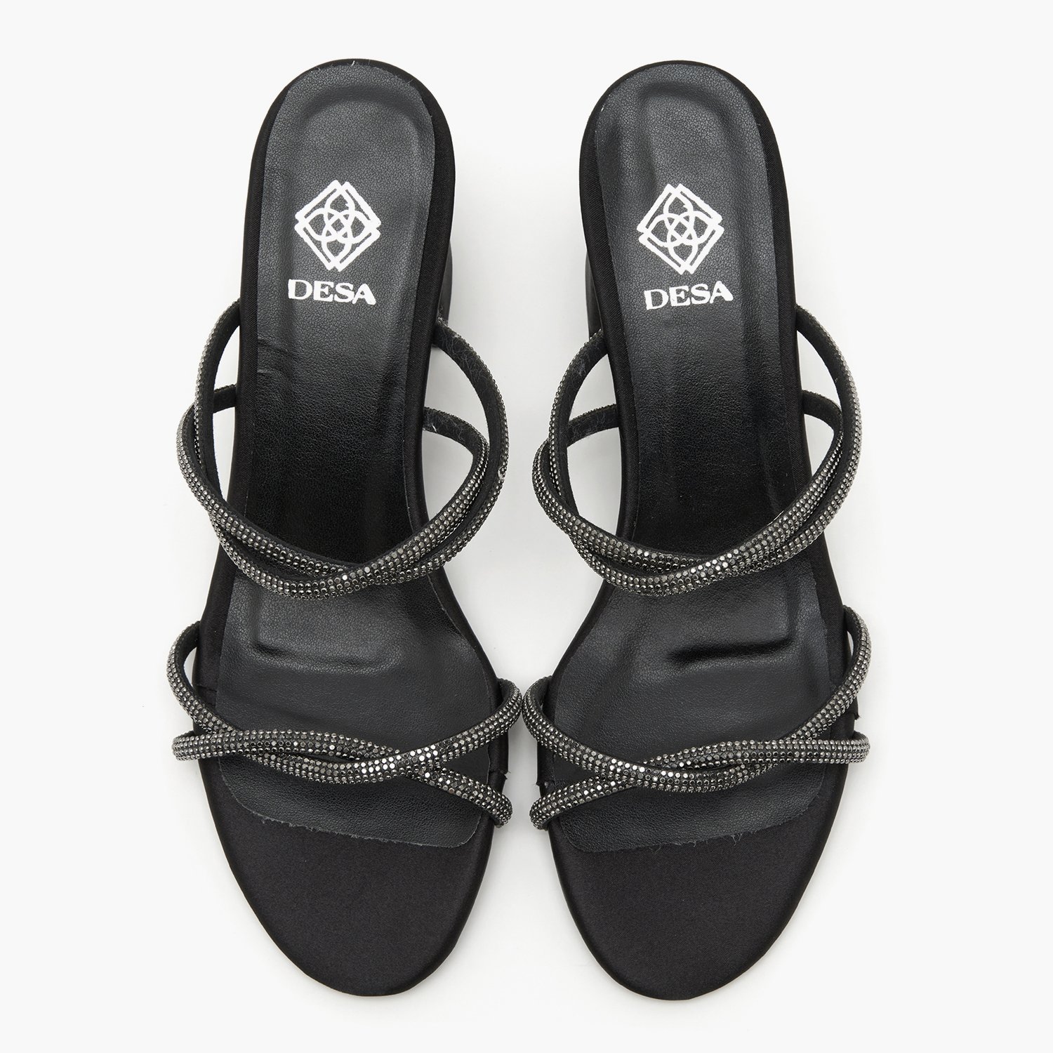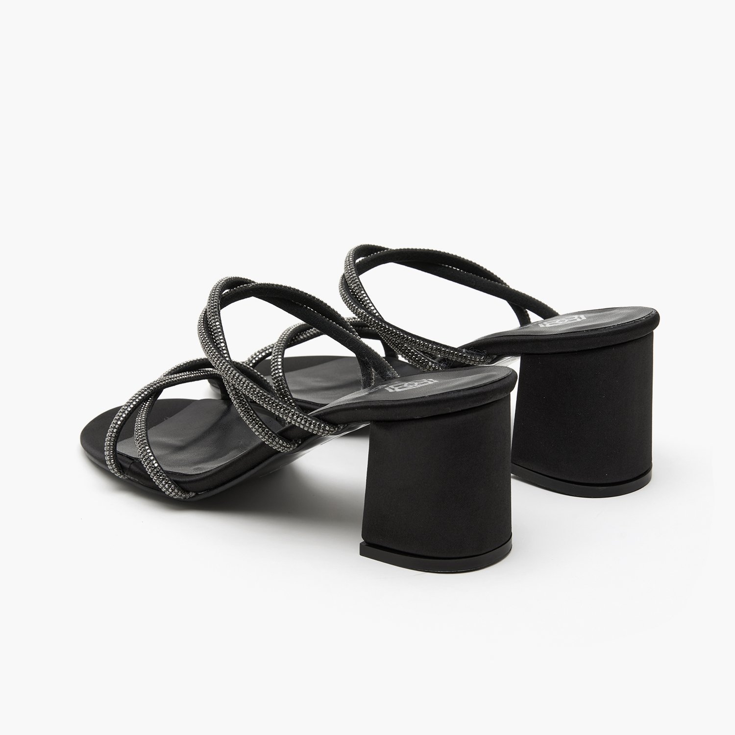 Saten, parlak taşlı biyelerden oluşan ,neolit tabanlı kadın topuklu abiye terlik.