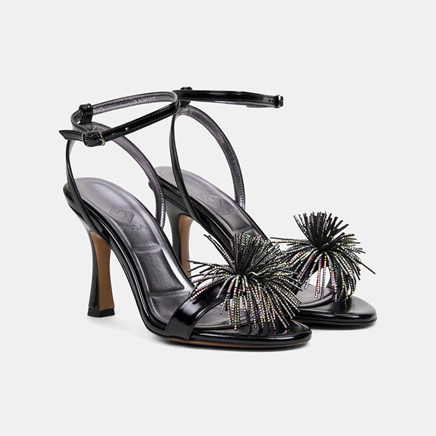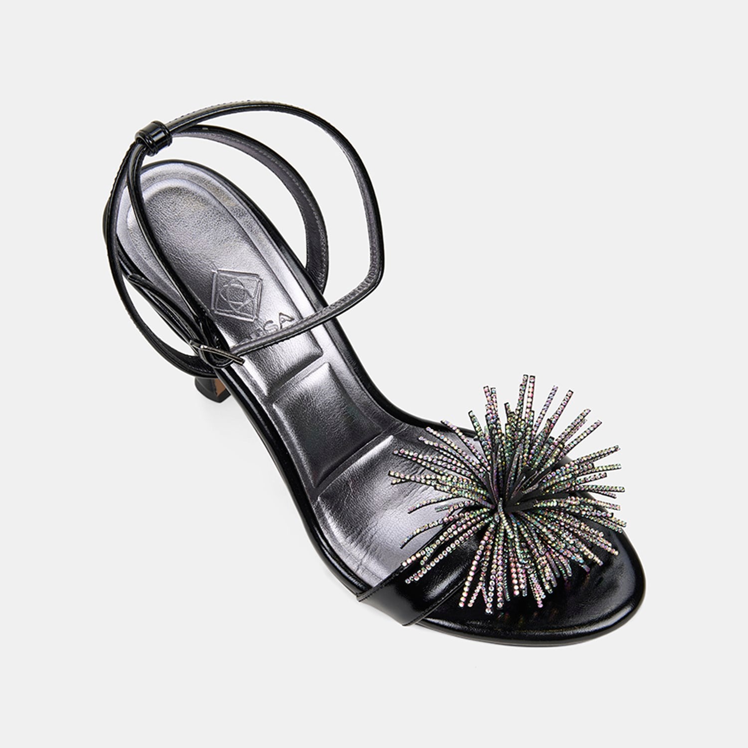 Kadın Siyah Taşlı Ayarlanabilir Tokalı İnce Topuklu Abiye Sandalet